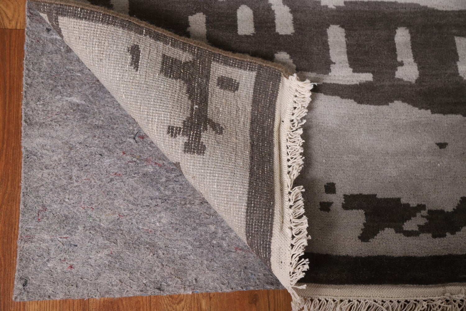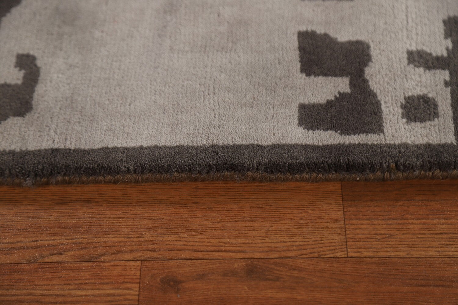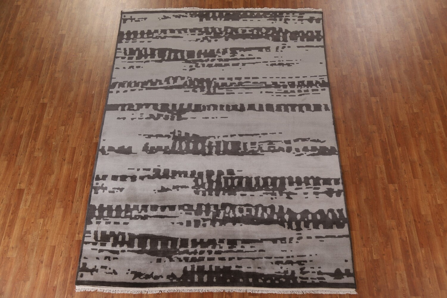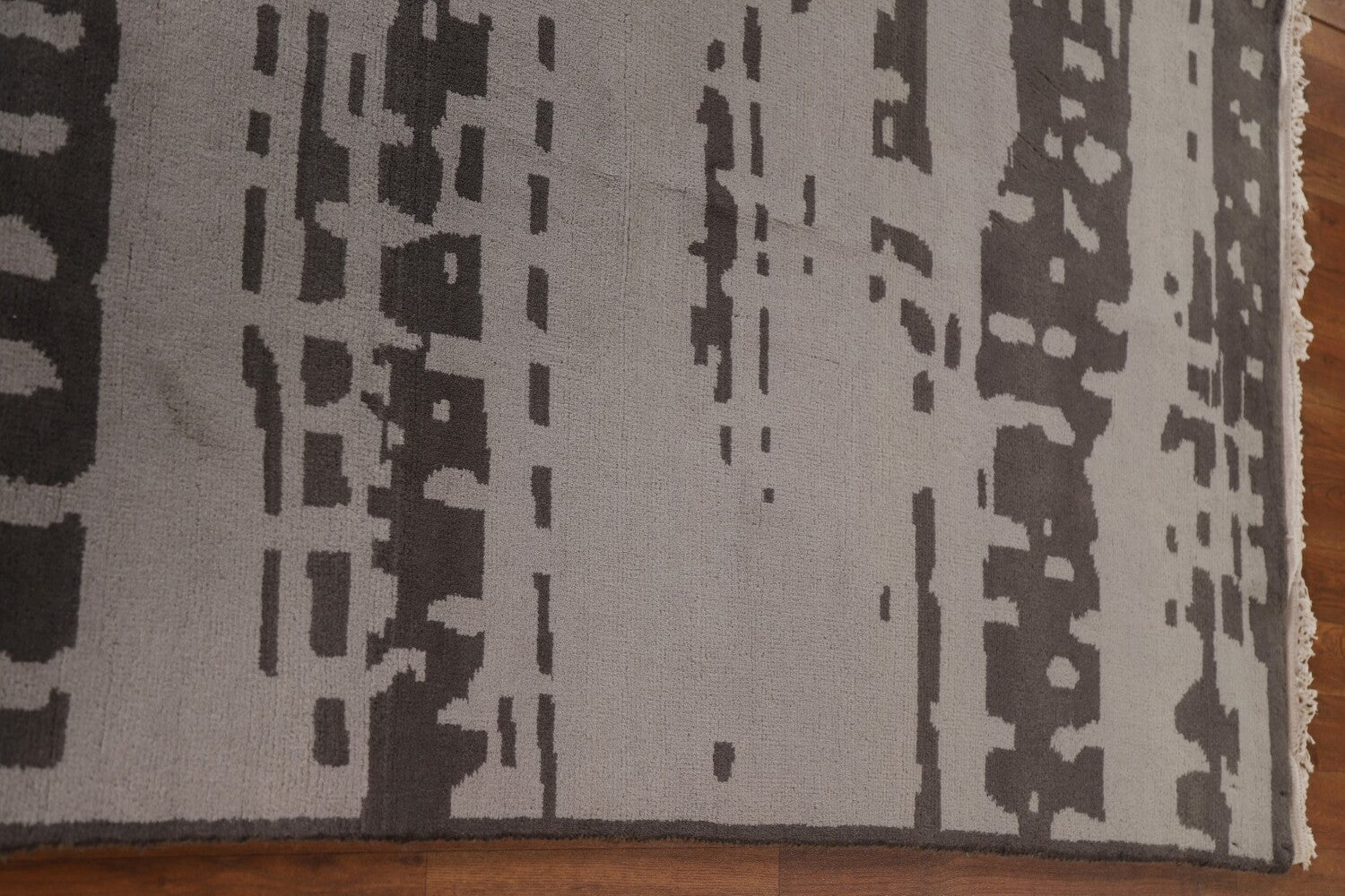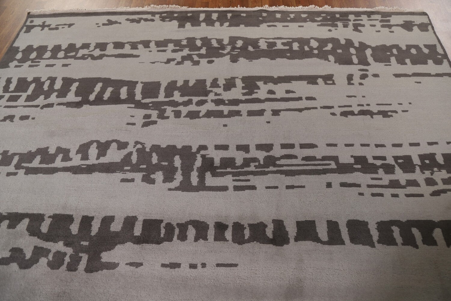A Beautiful Genuine India Abstract rug is Hand Knotted by skillful weavers in India with 100% Wool Material. This rug is in New, First Quality condition. dimensions are 10' 7'' X 7' 11'' in foot and 323 X 241 in centimeter. the primary color is Greys & Charcoal.