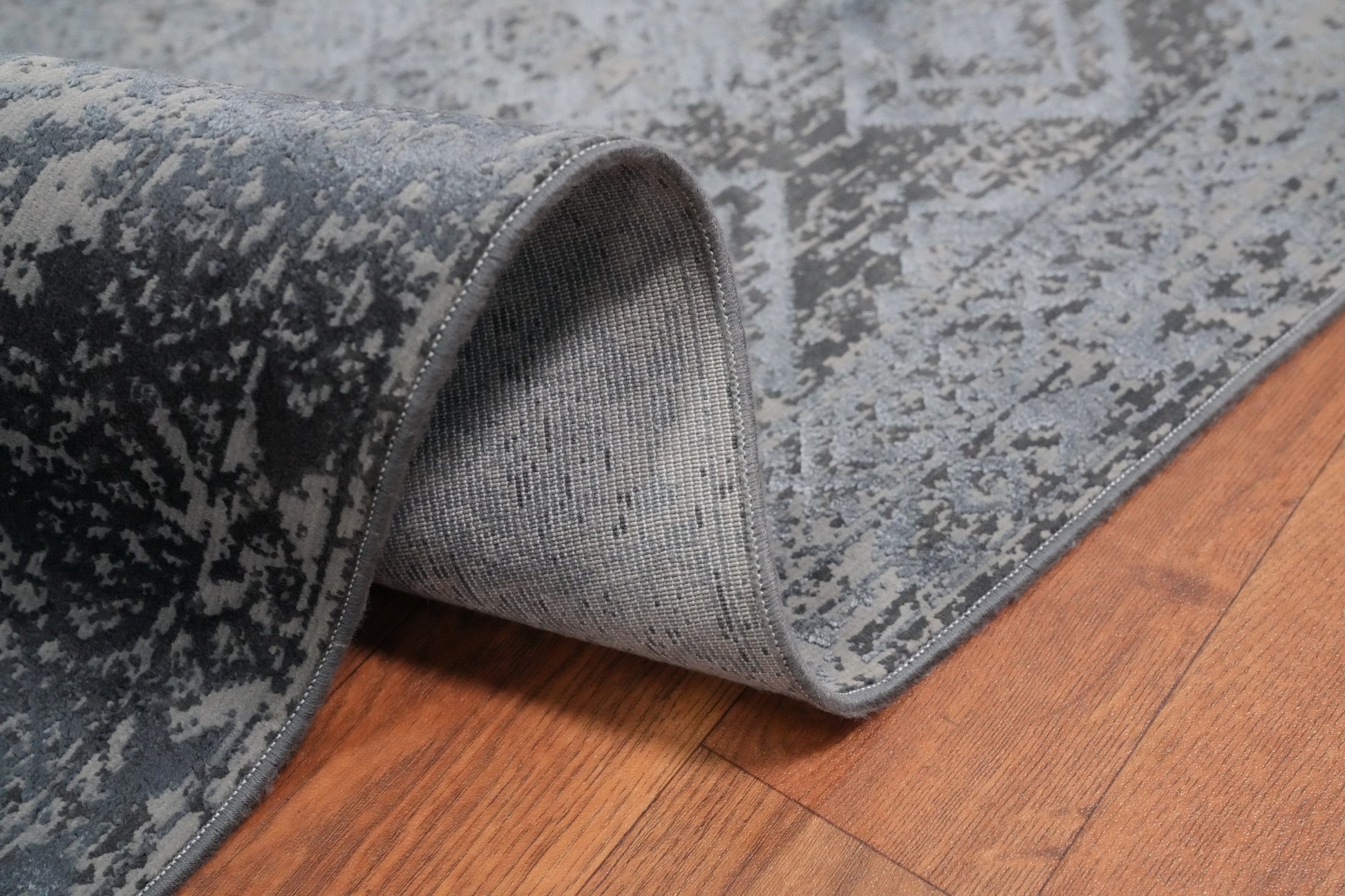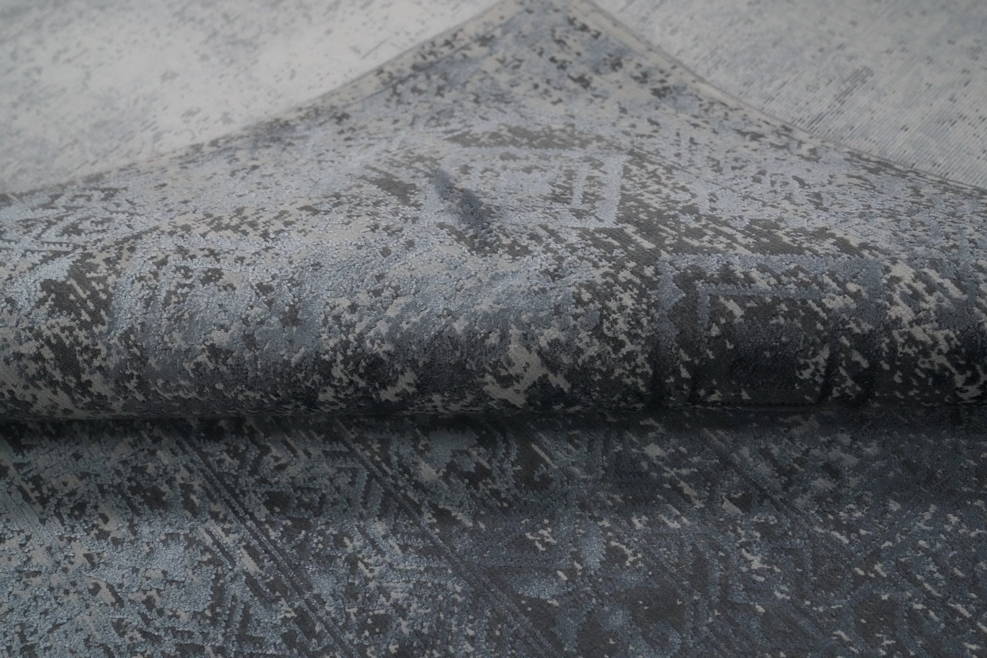 A Beautiful Genuine Turkey Abstract rug is Machine Made by skillful weavers in Turkey with Polyester Material. This rug is in New, First Quality condition. dimensions are 7' 5'' X 5' 2'' in foot and 226 X 157 in centimeter. the primary color is Greys & Charcoal.
