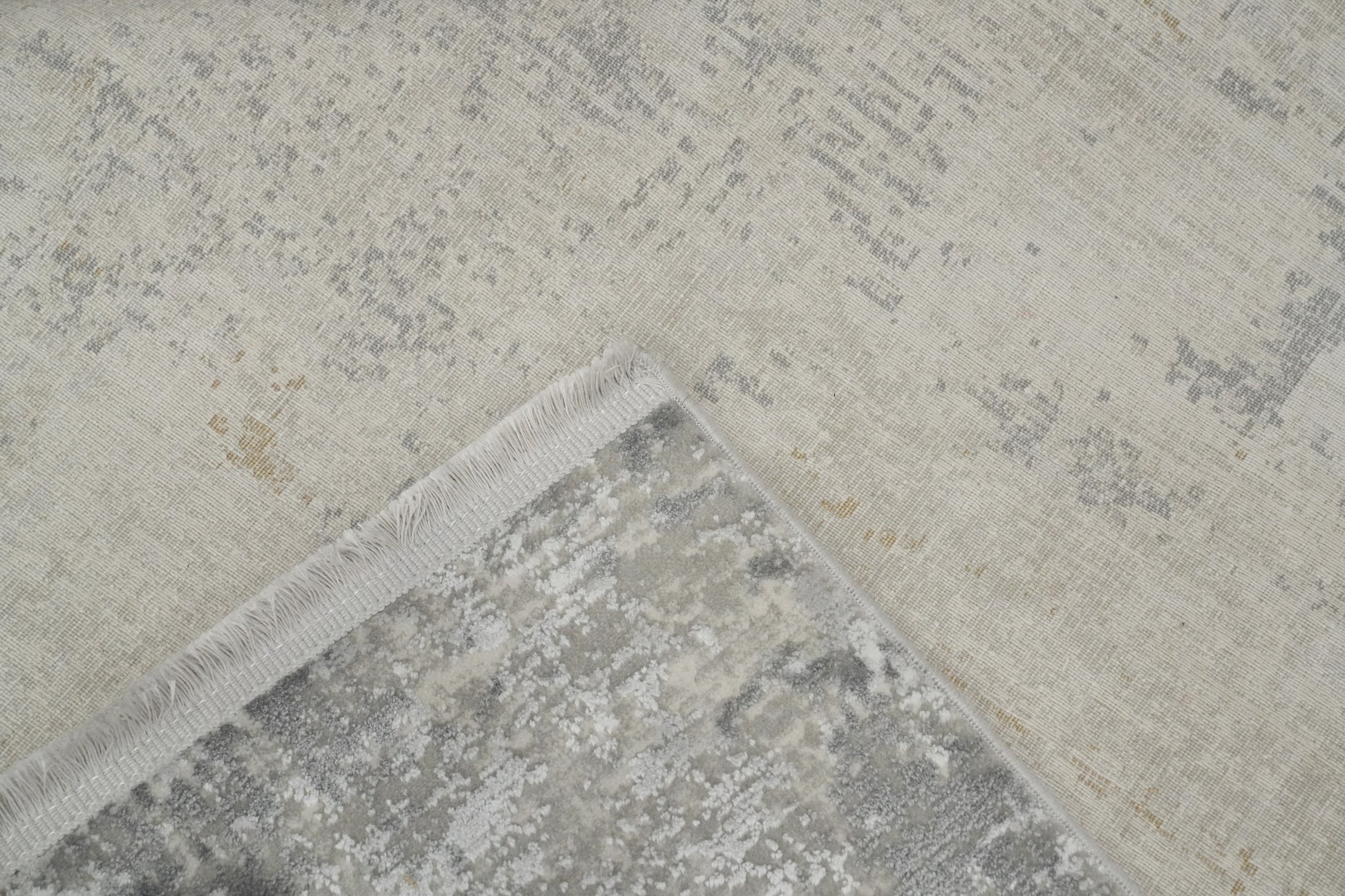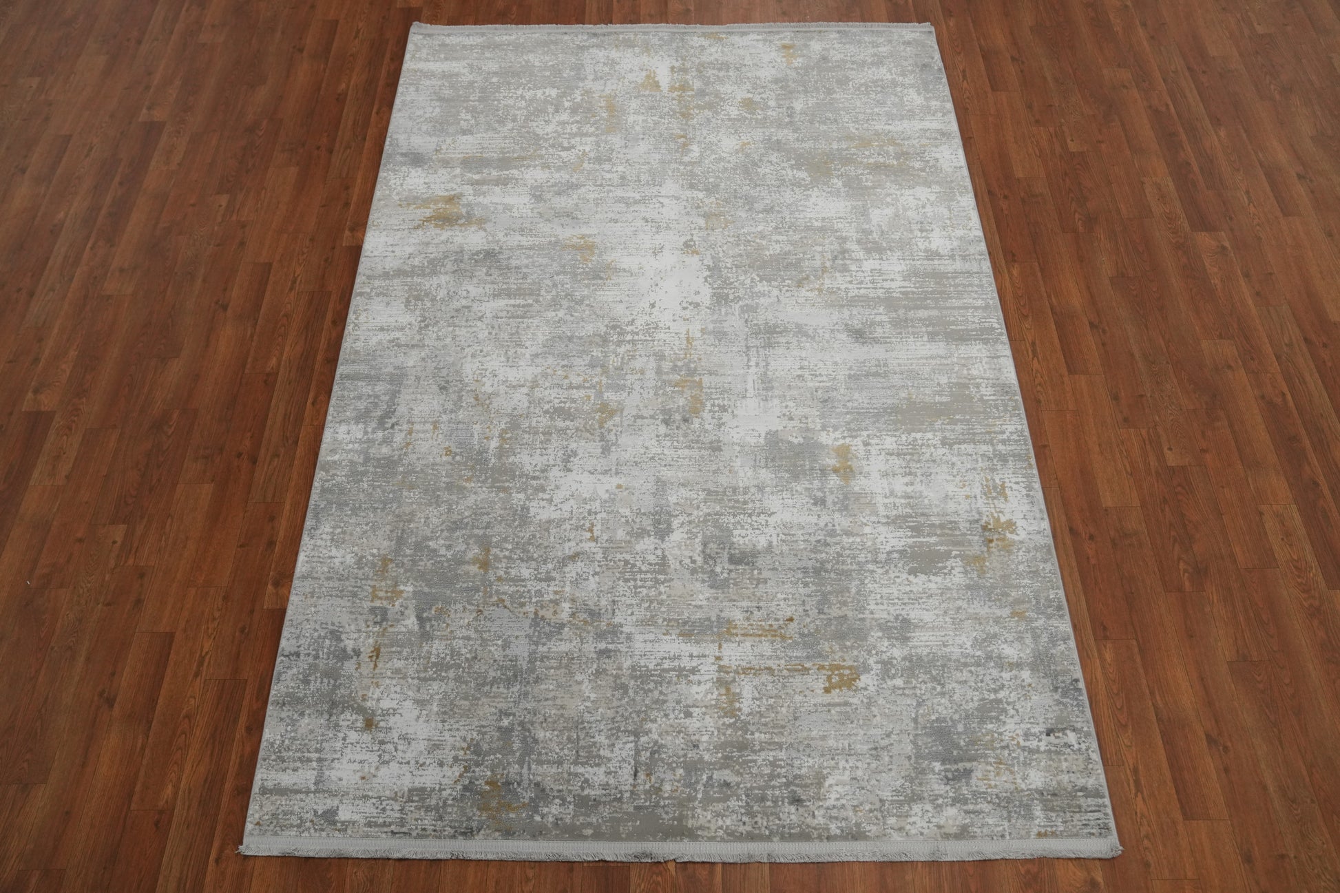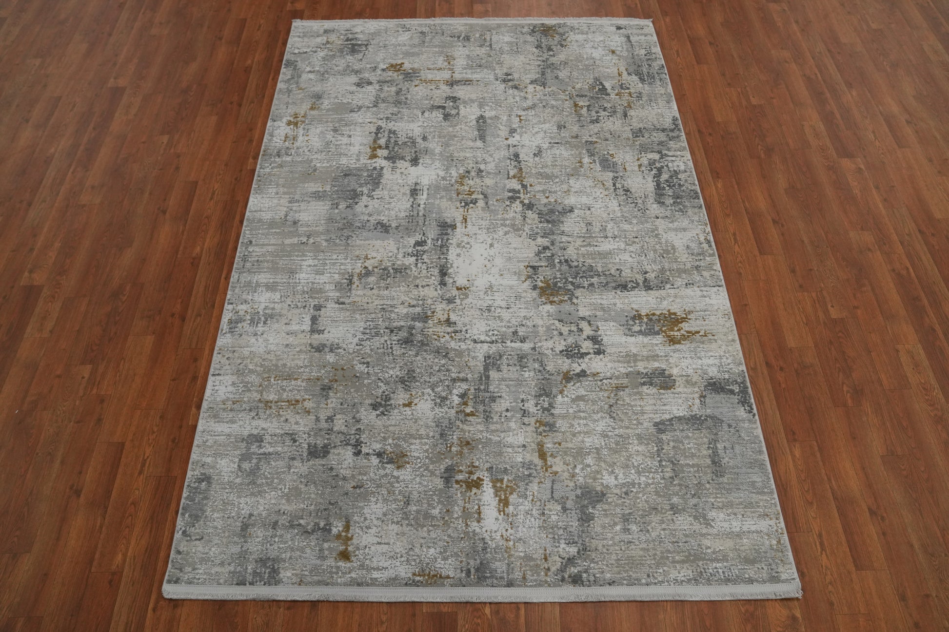 A Beautiful Genuine Turkey Distressed rug is Machine Made by skillful weavers in Turkey with Polyester Material. This rug is in New, First Quality condition. dimensions are 7' 5'' X 5' 2'' in foot and 226 X 157 in centimeter. the primary color is Greys & Charcoal.
