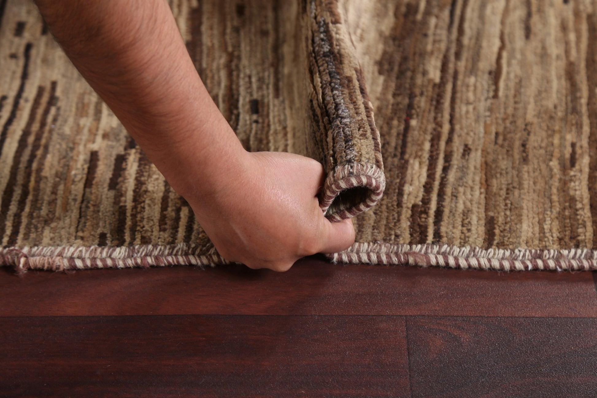 A Beautiful Genuine Pakistan Gabbeh (kashkoli) rug is Hand Knotted by skillful weavers in Pakistan with 100% Wool Material. This rug is in New, First Quality condition. dimensions are 9' 3'' X 6' 8'' in foot and 282 X 203 in centimeter. the primary color is Brown.