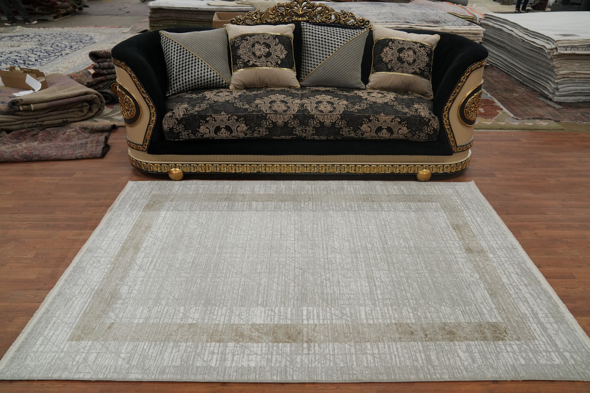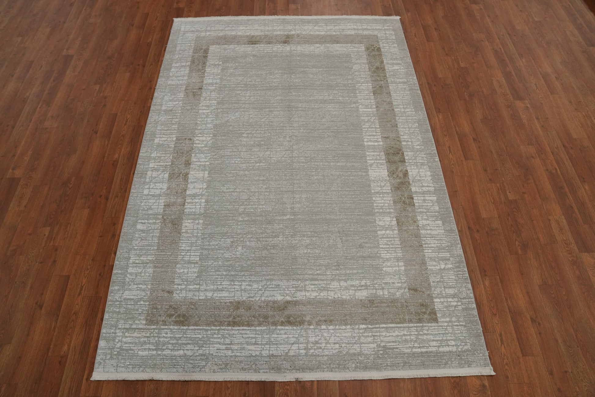 Contemporary Grey Rug Featuring Timeless Border Accent 5x7