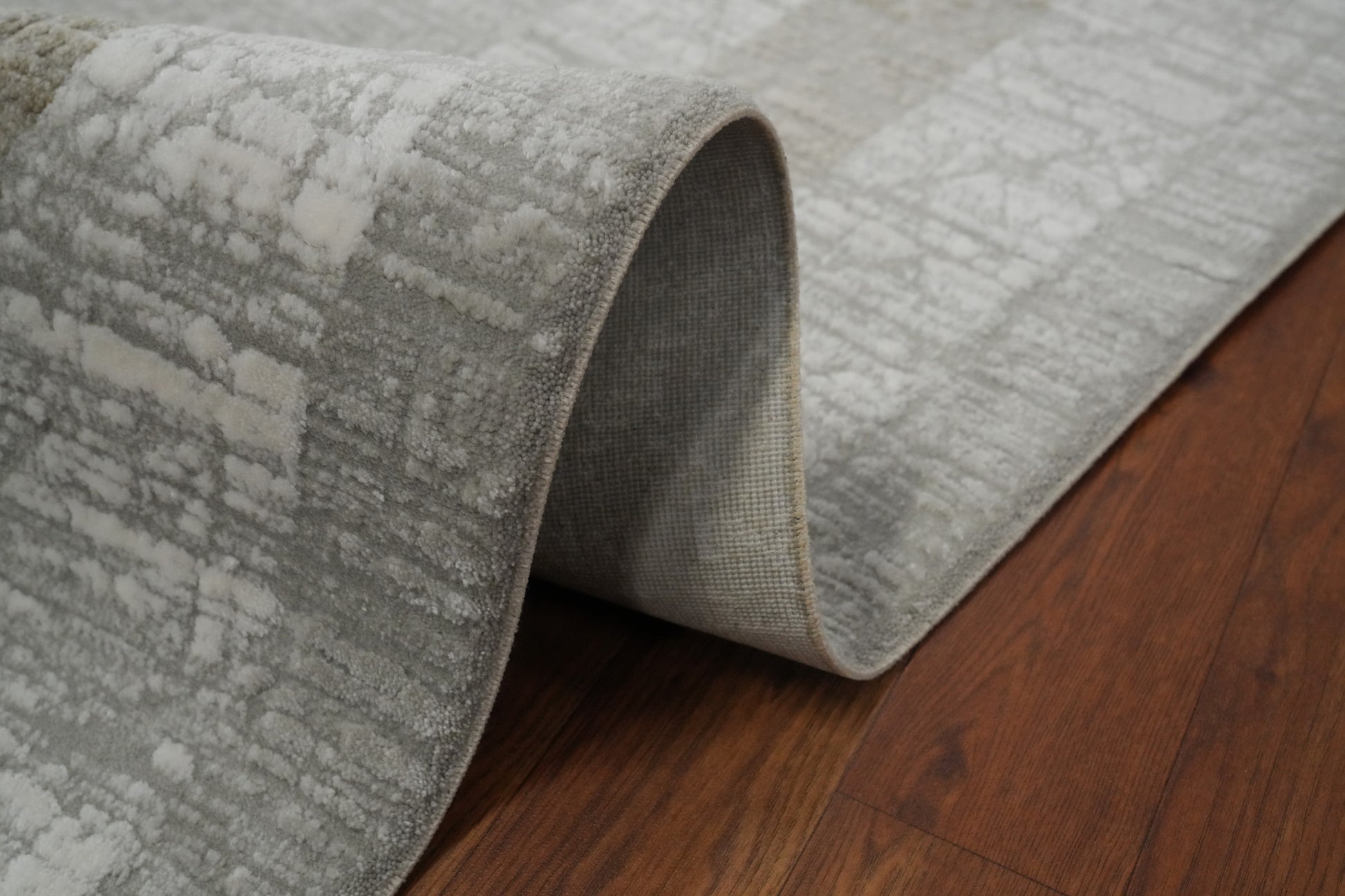 A Beautiful Genuine Turkey Modern rug is Machine Made by skillful weavers in Turkey with Polyester Material. This rug is in New, First Quality condition. dimensions are 7' 5'' X 5' 2'' in foot and 226 X 157 in centimeter. the primary color is Greys & Charcoal.