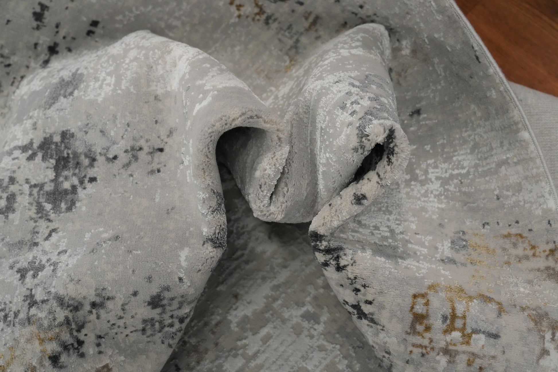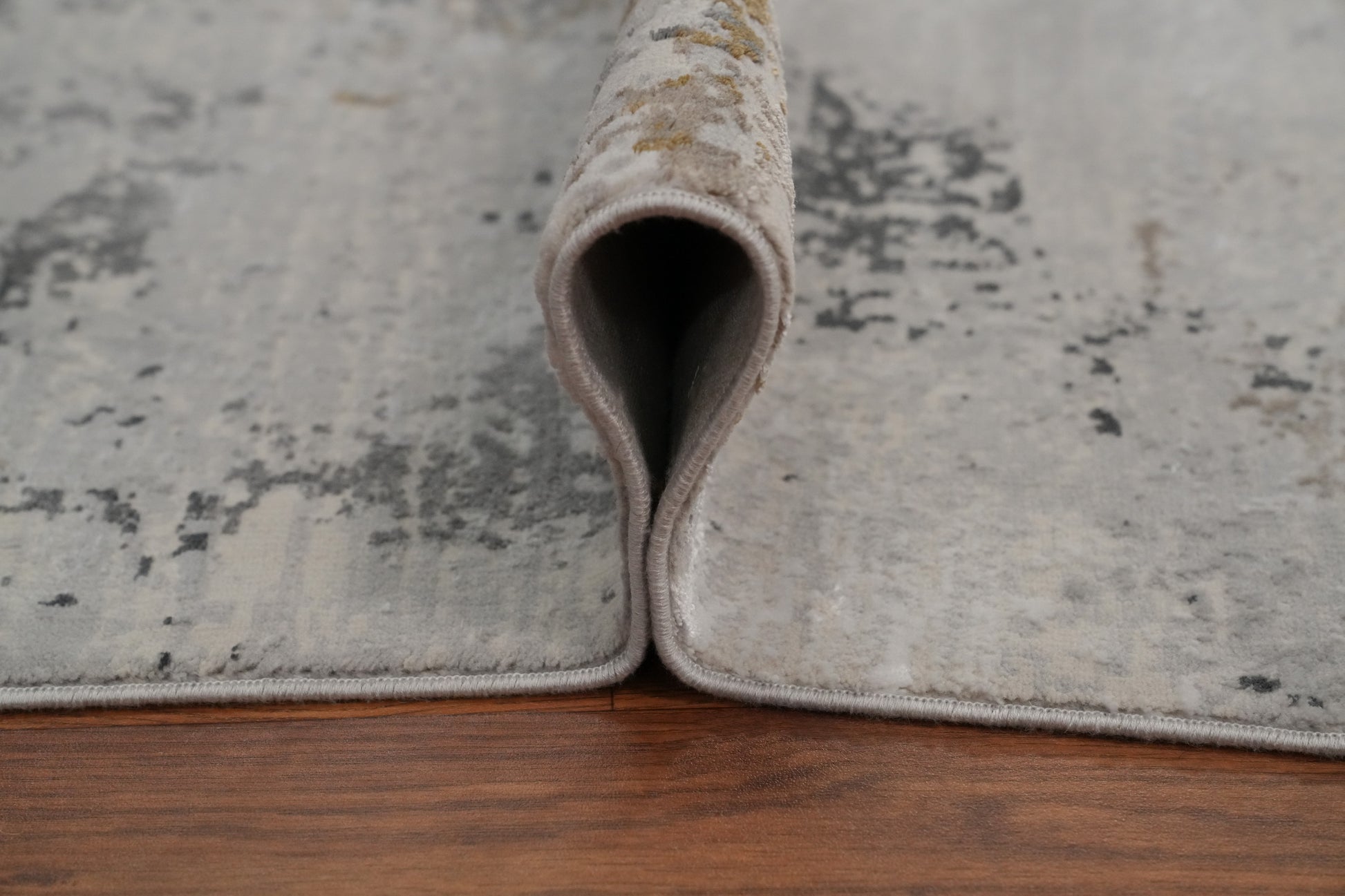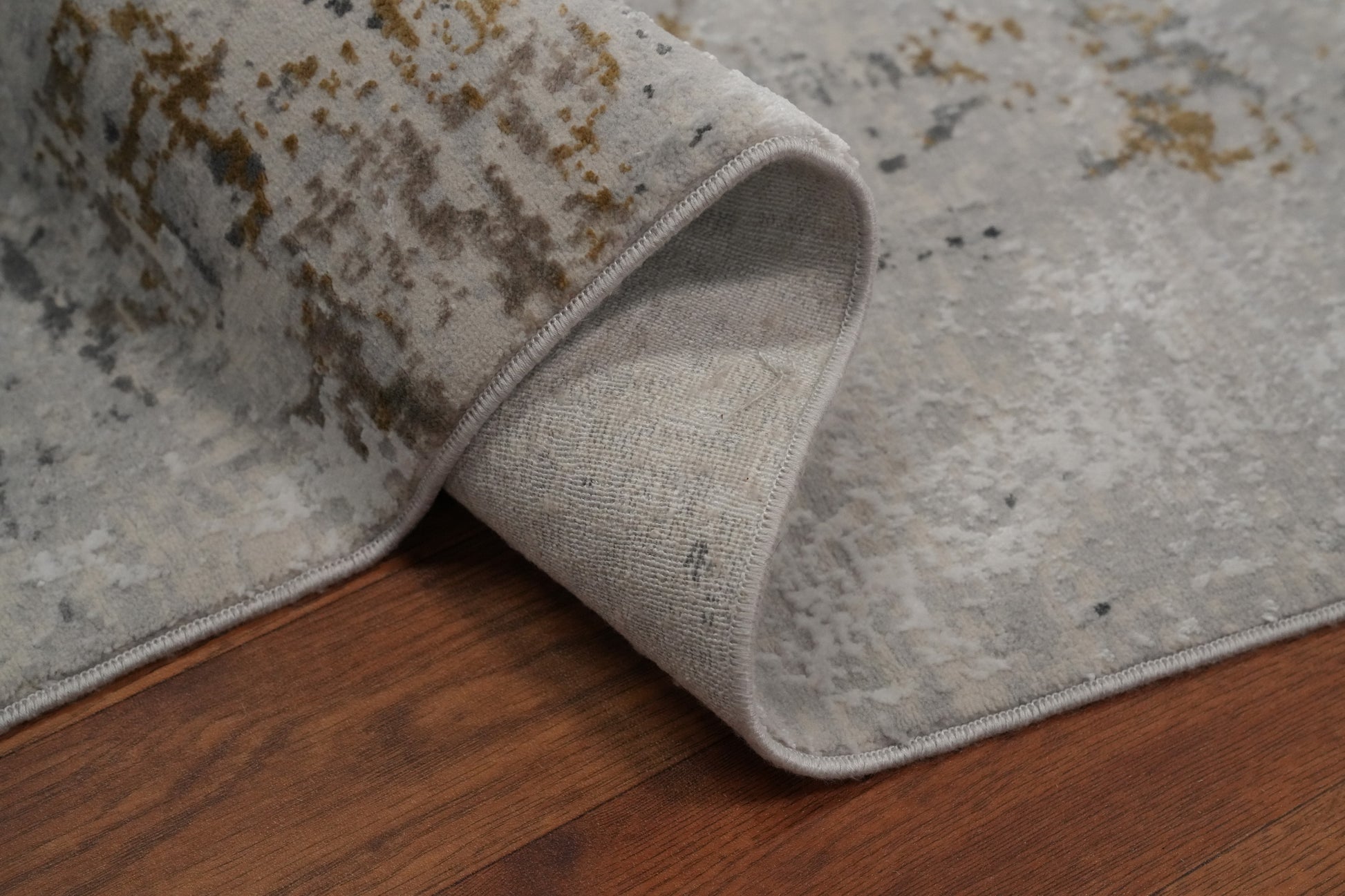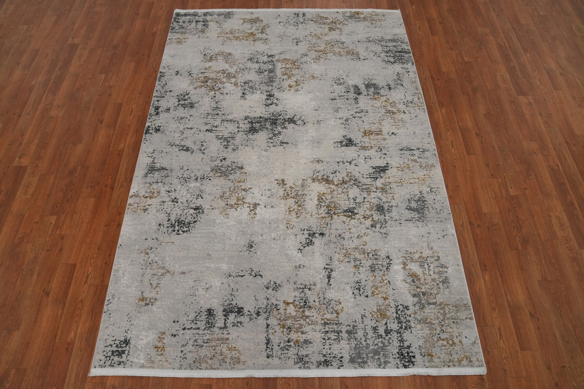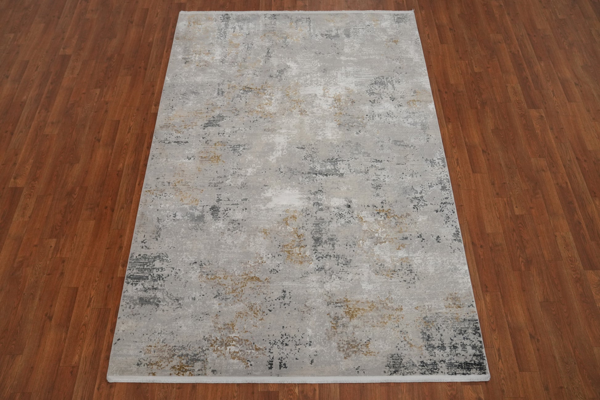 Contemporary Grey Rug with Subtle Gold Textured Design 5x7