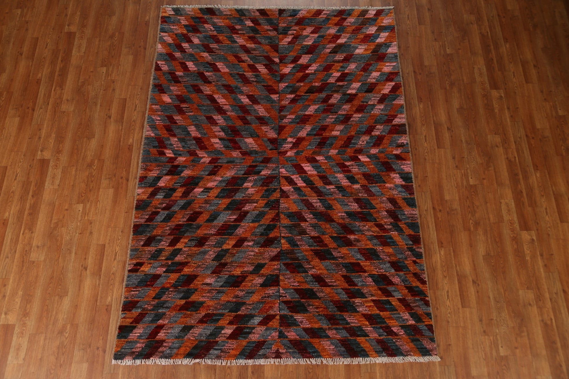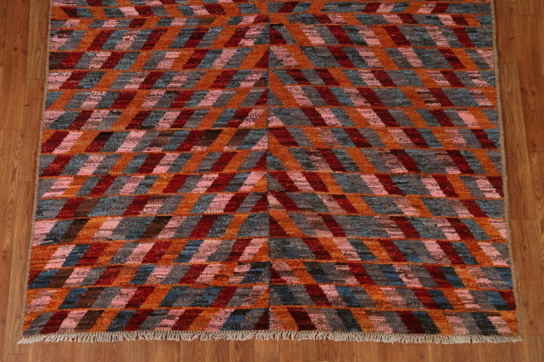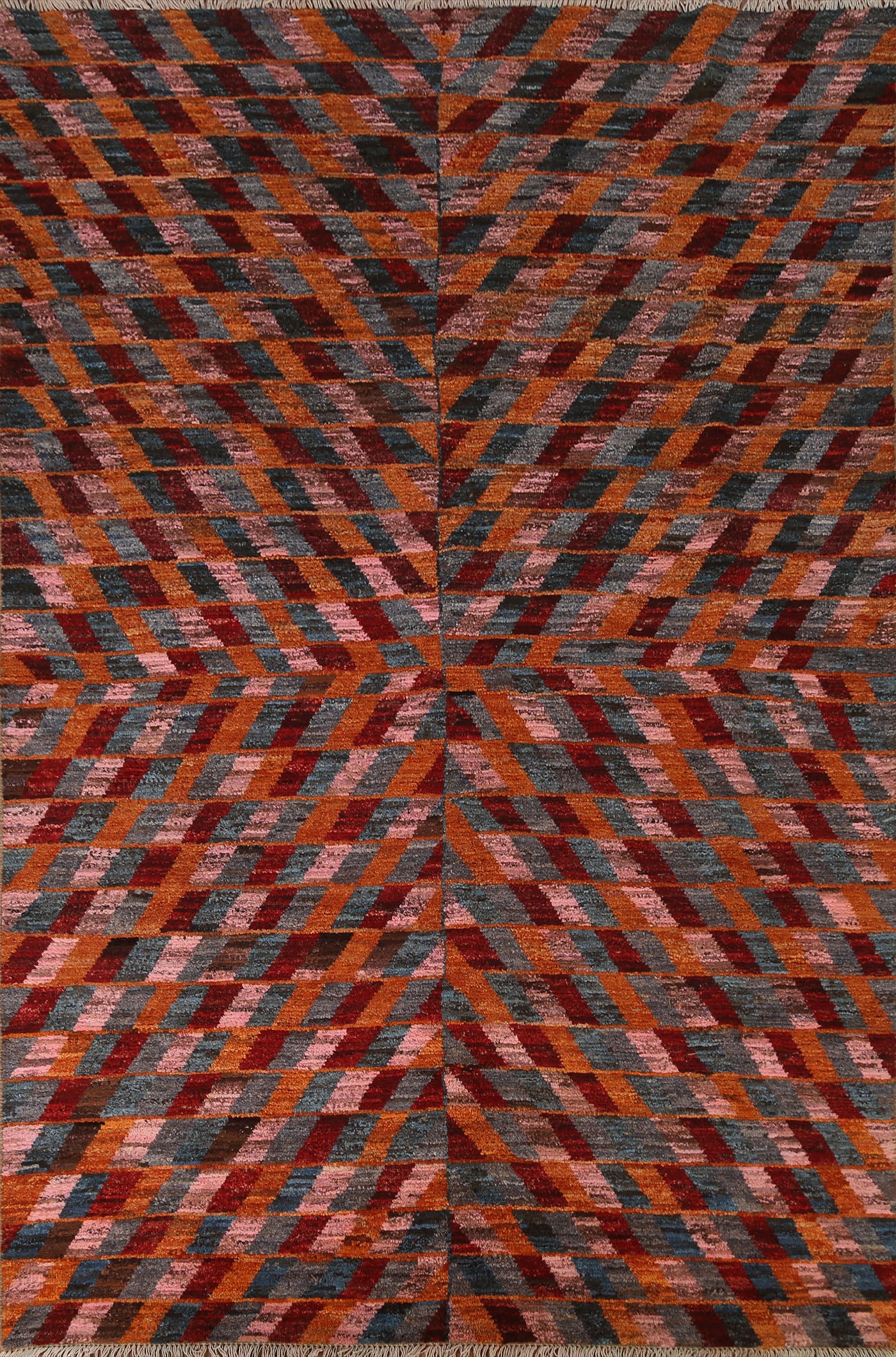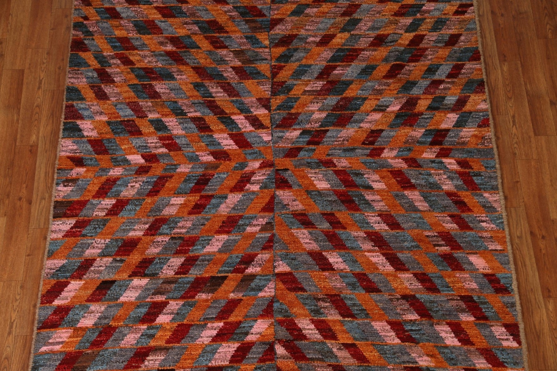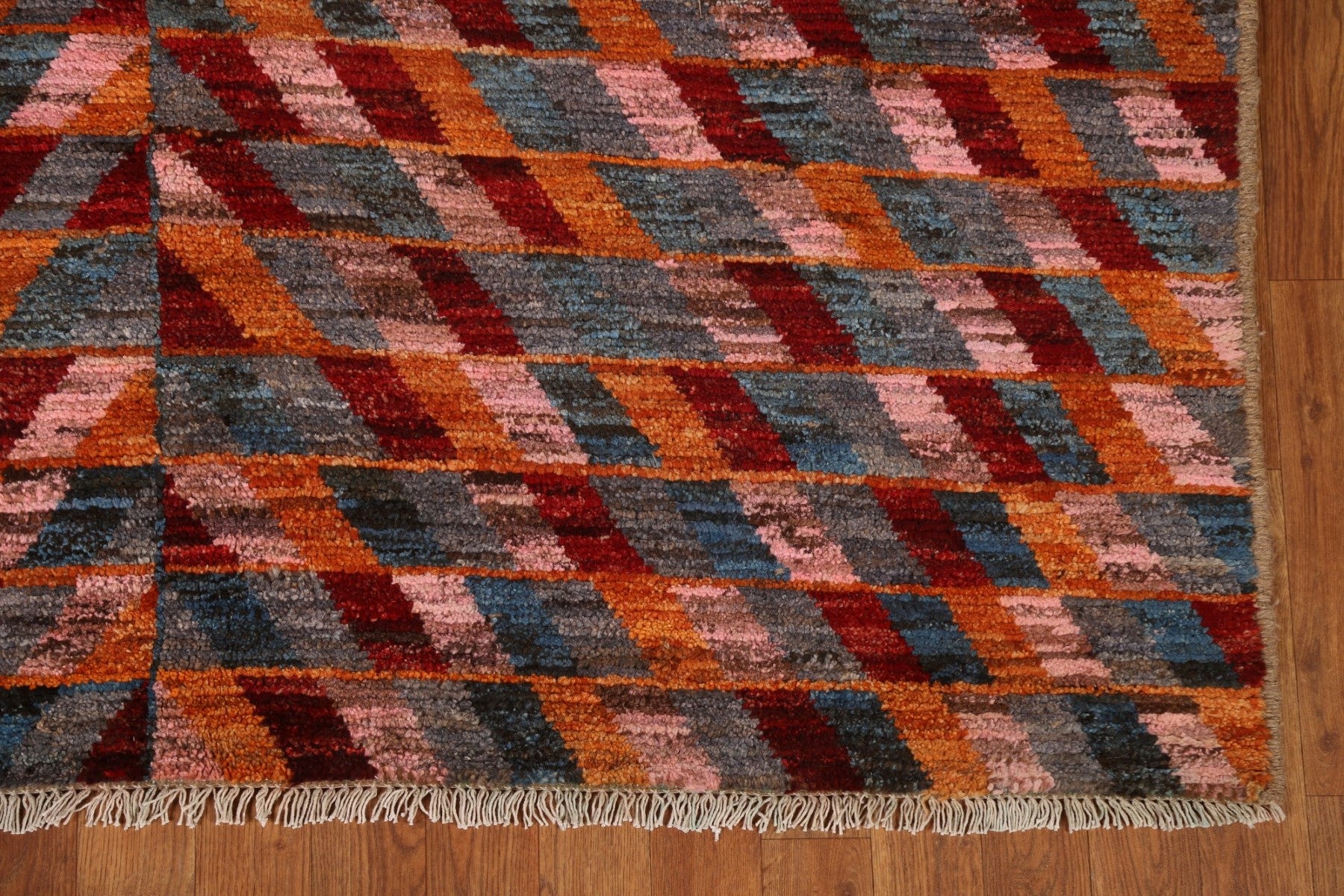 A Beautiful Genuine Pakistan Moroccan rug is Hand Knotted by skillful weavers in Pakistan with 100% Wool Material. This rug is in condition. dimensions are 7' 10'' X 5' 6'' in foot and 239 X 168 in centimeter. the primary color is Multi-Colored.