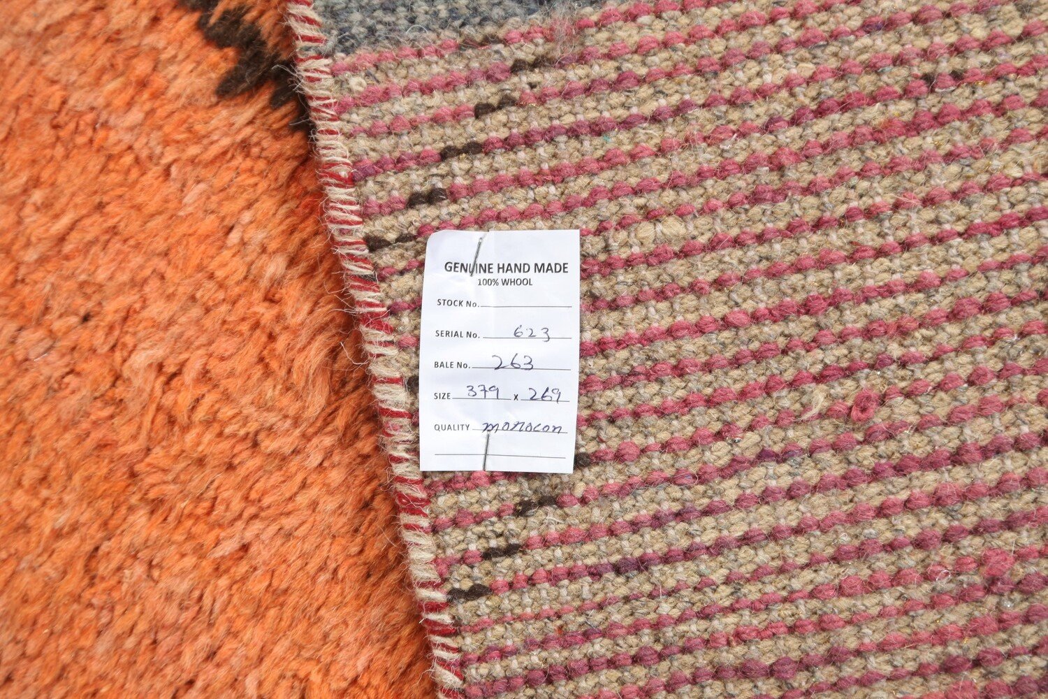 A Beautiful Genuine Morocco Moroccan rug is Hand Knotted by skillful weavers in Morocco with 100% Wool Material. This rug is in New, First Quality condition. dimensions are 12' 10'' X 8' 11'' in foot and 391 X 272 in centimeter. the primary color is Oranges & Rust.