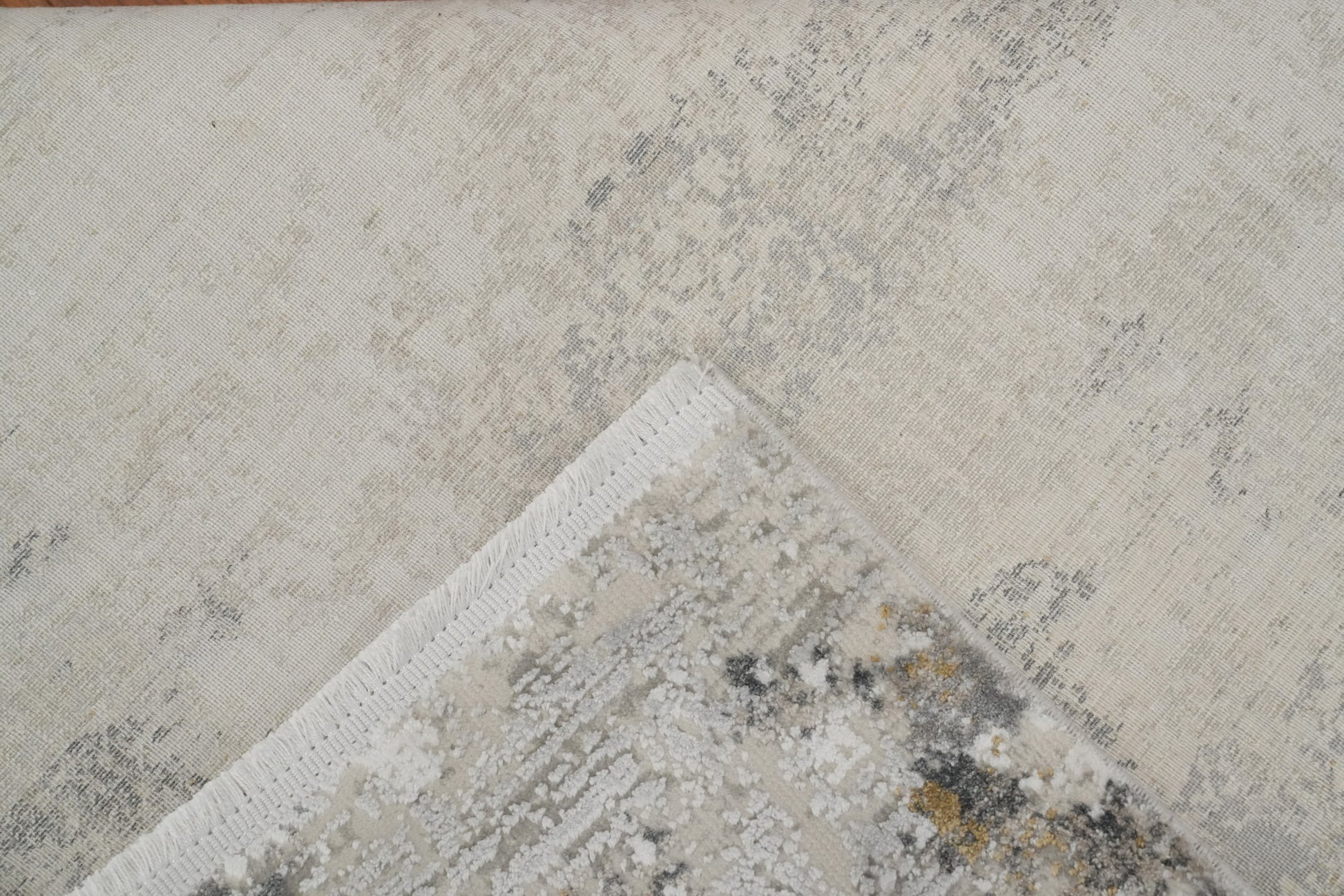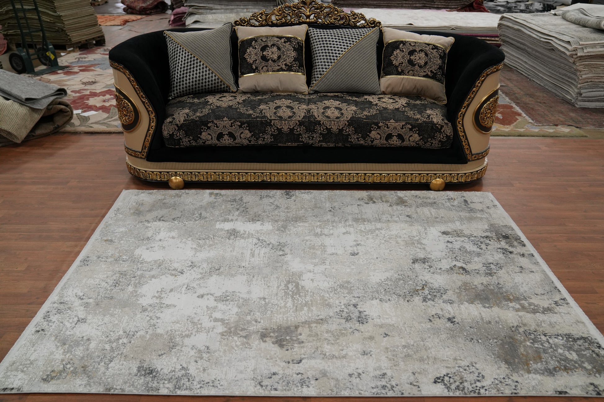 A Beautiful Genuine Turkey Distressed rug is Machine Made by skillful weavers in Turkey with Polyester Material. This rug is in New, First Quality condition. dimensions are 7' 5'' X 5' 2'' in foot and 226 X 157 in centimeter. the primary color is Greys & Charcoal.