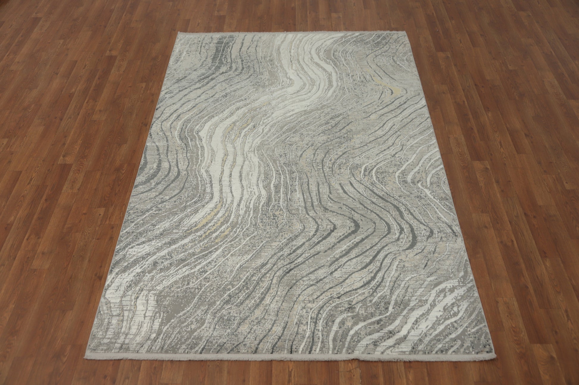 Contemporary Wave Pattern Rug in Gray Tones 5x7
