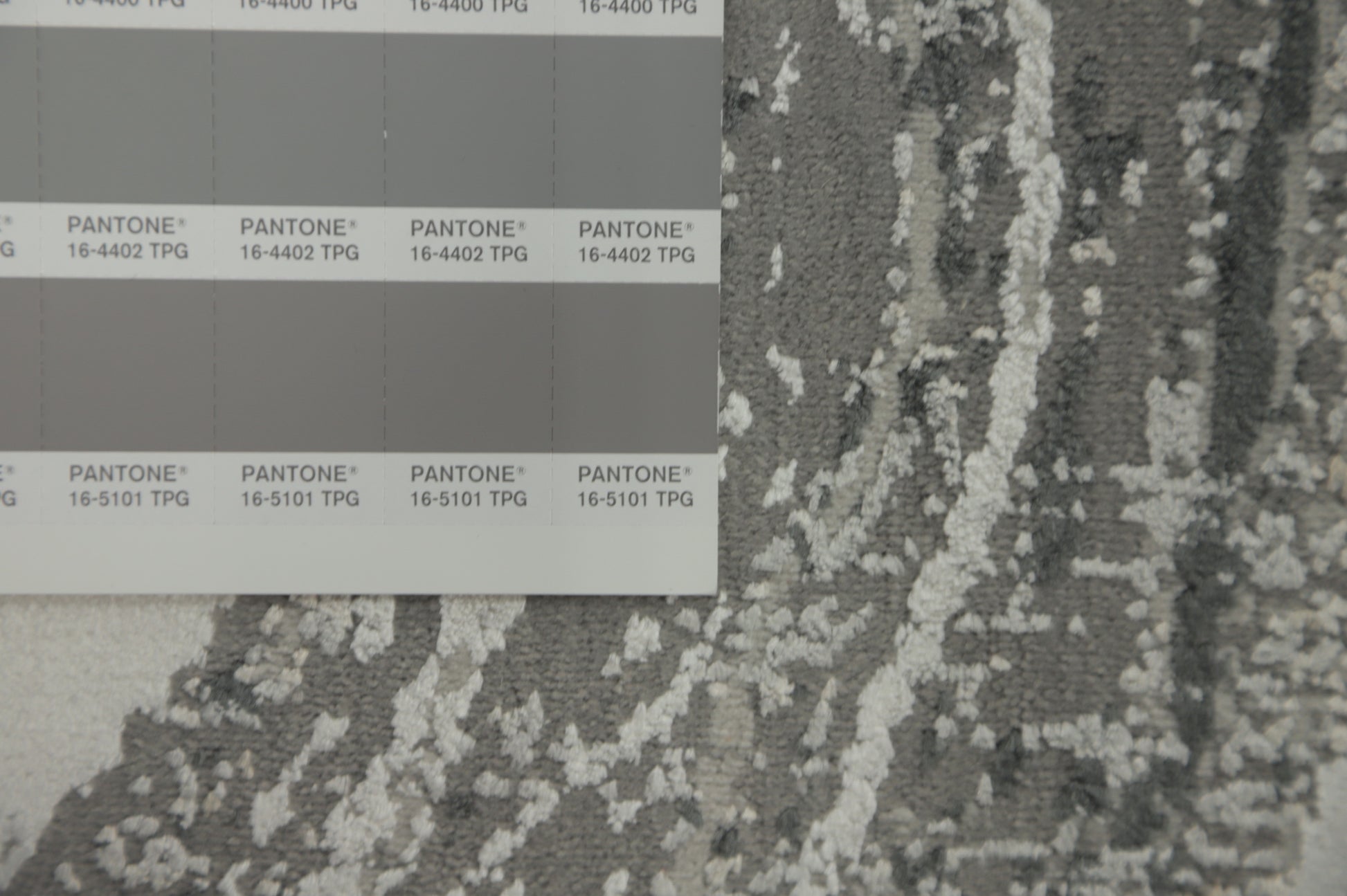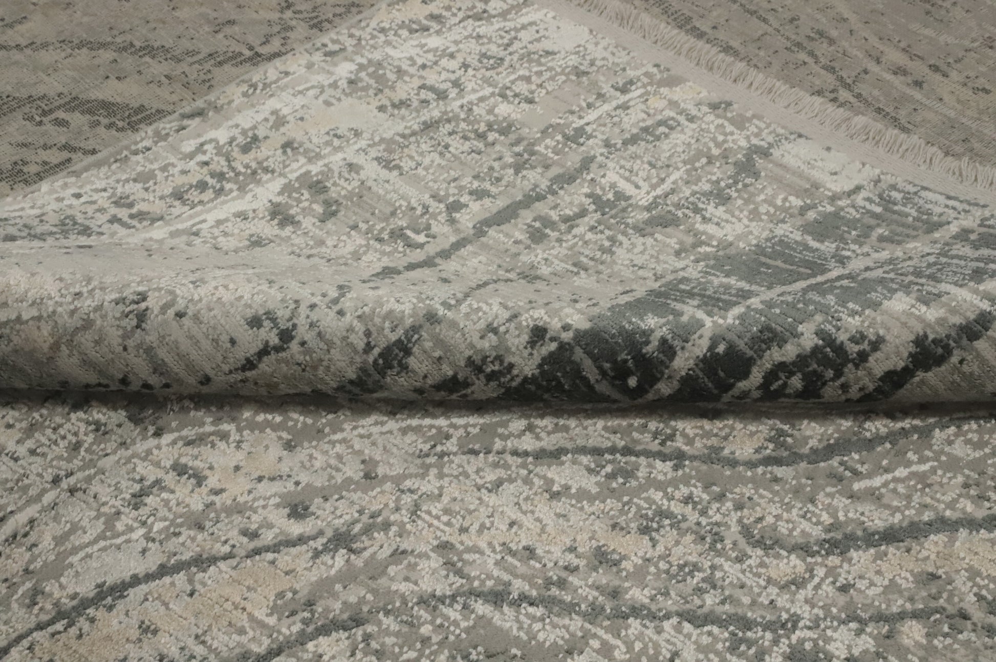 A Beautiful Genuine Turkey Modern rug is Machine Made by skillful weavers in Turkey with Polyester Material. This rug is in New, First Quality condition. dimensions are 7' 5'' X 5' 2'' in foot and 226 X 157 in centimeter. the primary color is Greys & Charcoal.