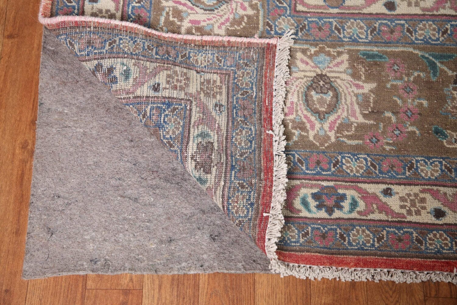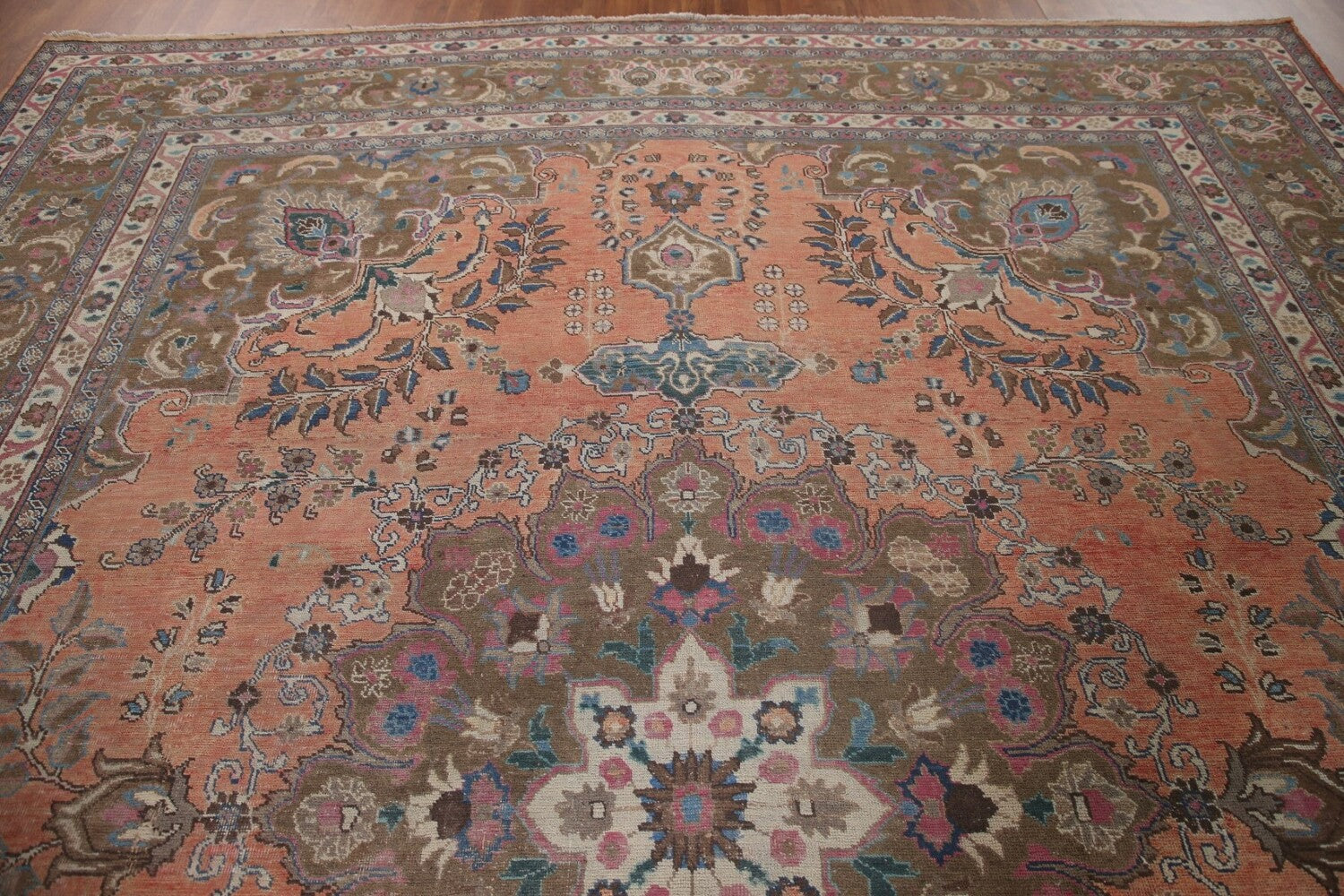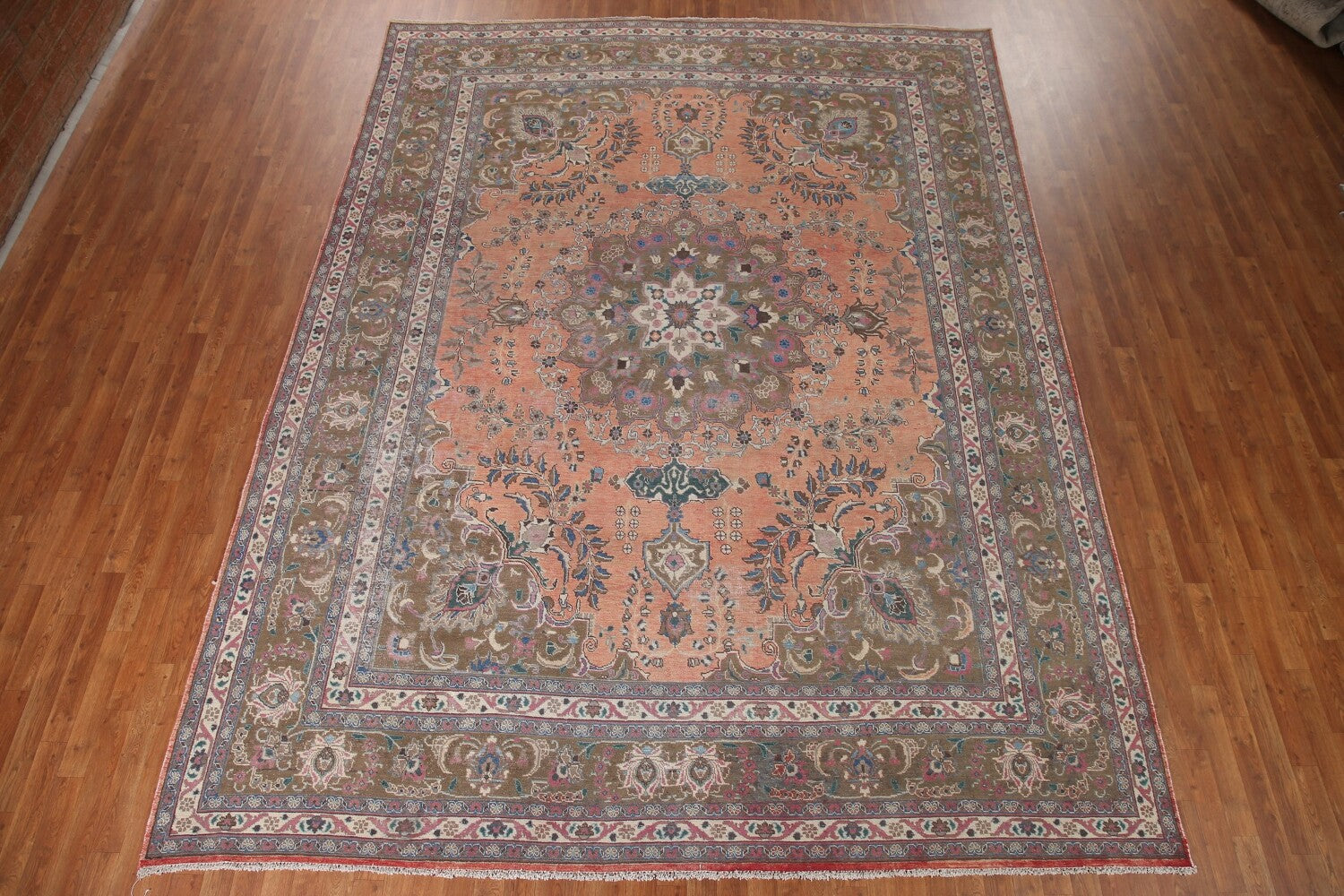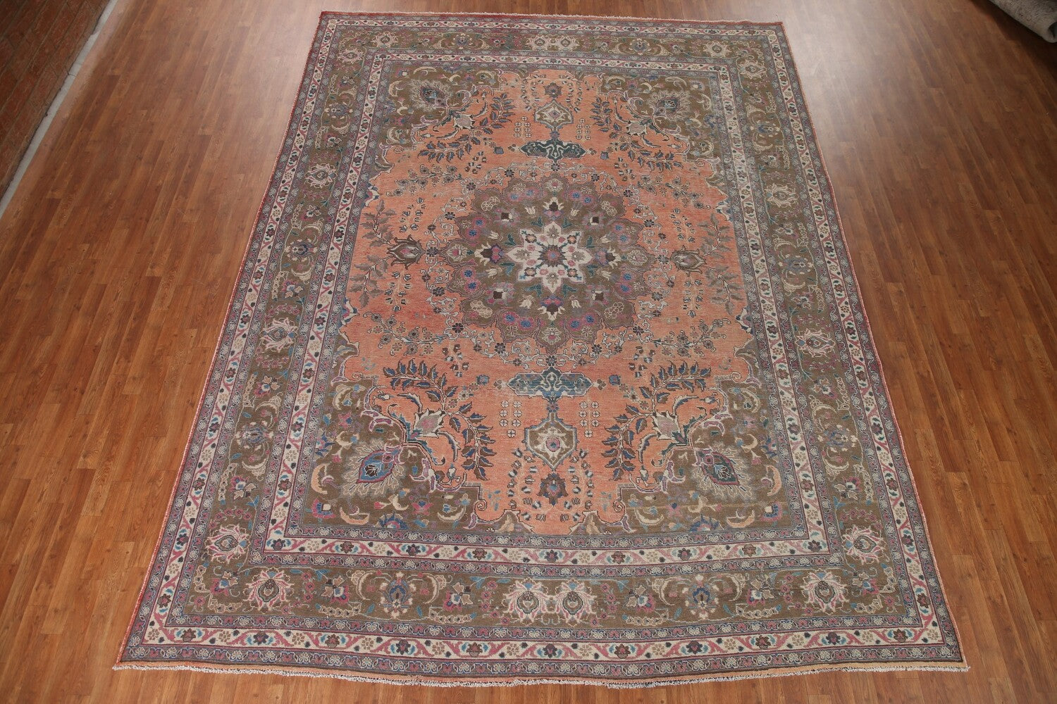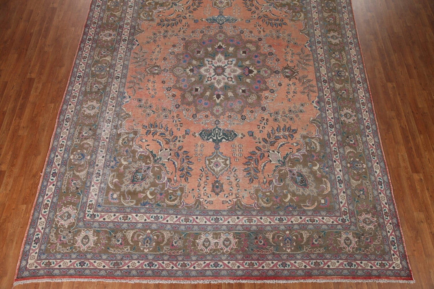 A Beautiful Genuine Persia ( Persia ) Mashad rug is Hand Knotted by skillful weavers in Persia ( Persia ) with 100% Wool Material. This rug is in Very Good (Evenly Low Pile) condition. dimensions are 12' 11'' X 9' 9'' in foot and 394 X 297 in centimeter. the primary color is Coral.