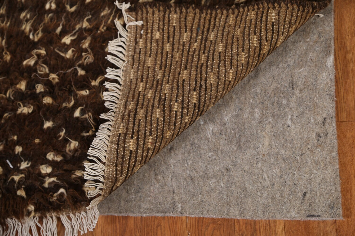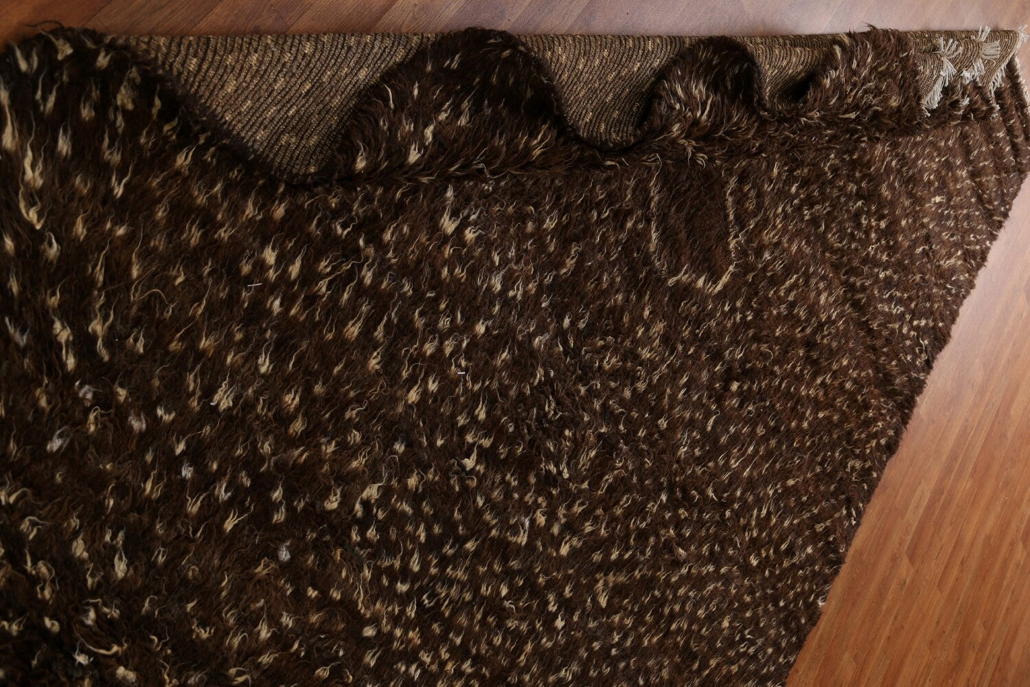 A Beautiful Genuine Pakistan Moroccan rug is Hand Knotted by skillful weavers in Pakistan with 100% Wool Material. This rug is in condition. dimensions are 9' 3'' X 6' 9'' in foot and 282 X 206 in centimeter. the primary color is Brown.