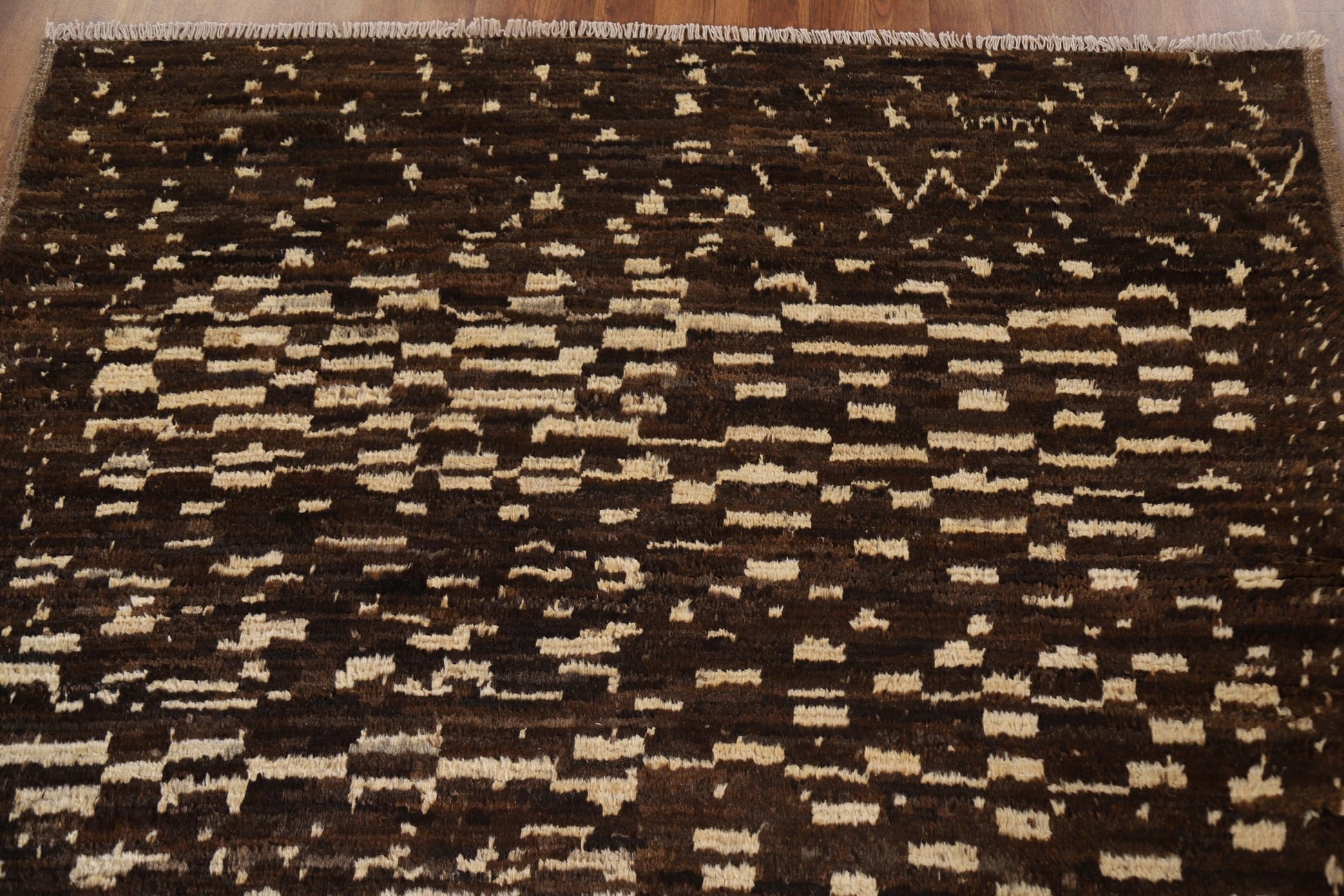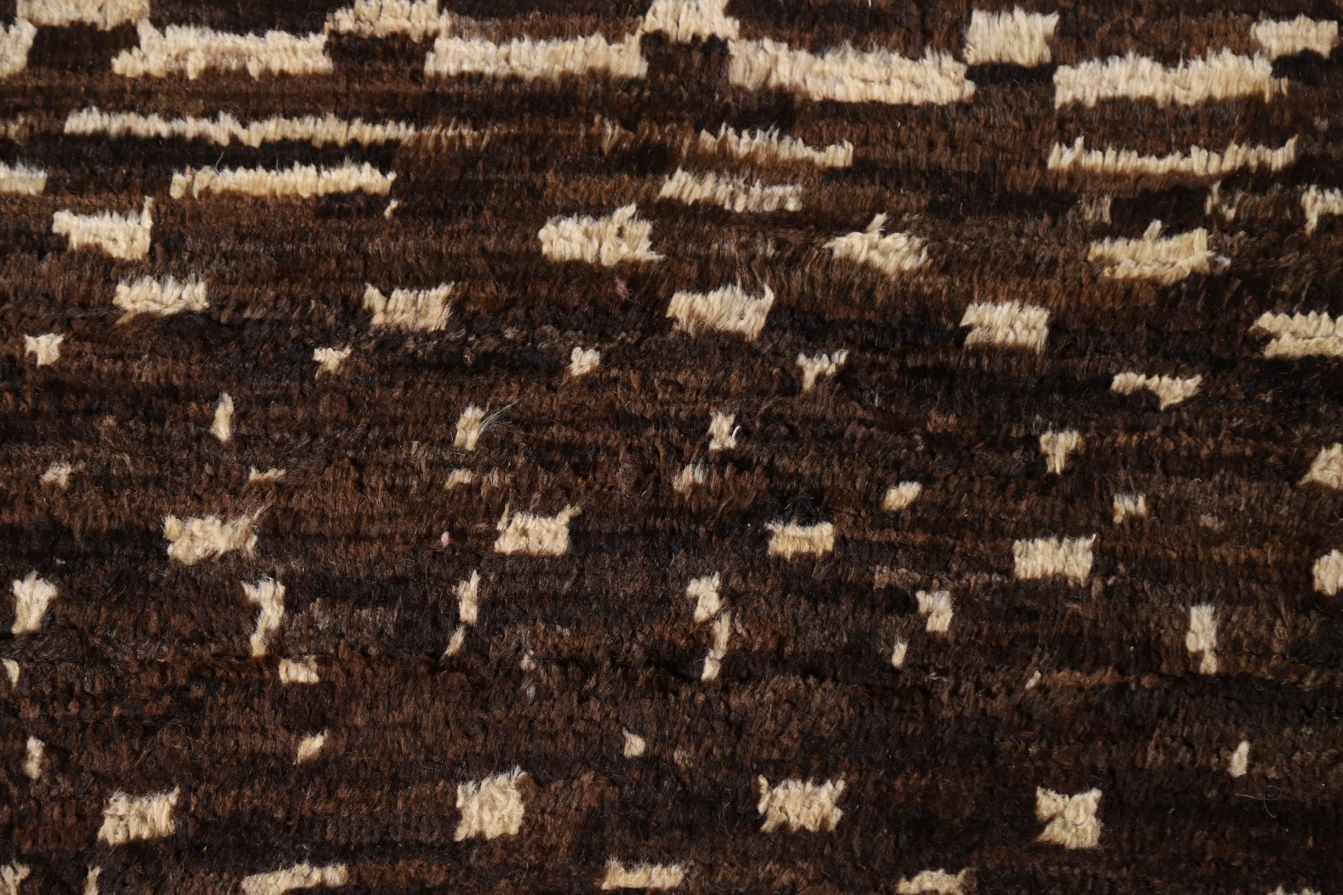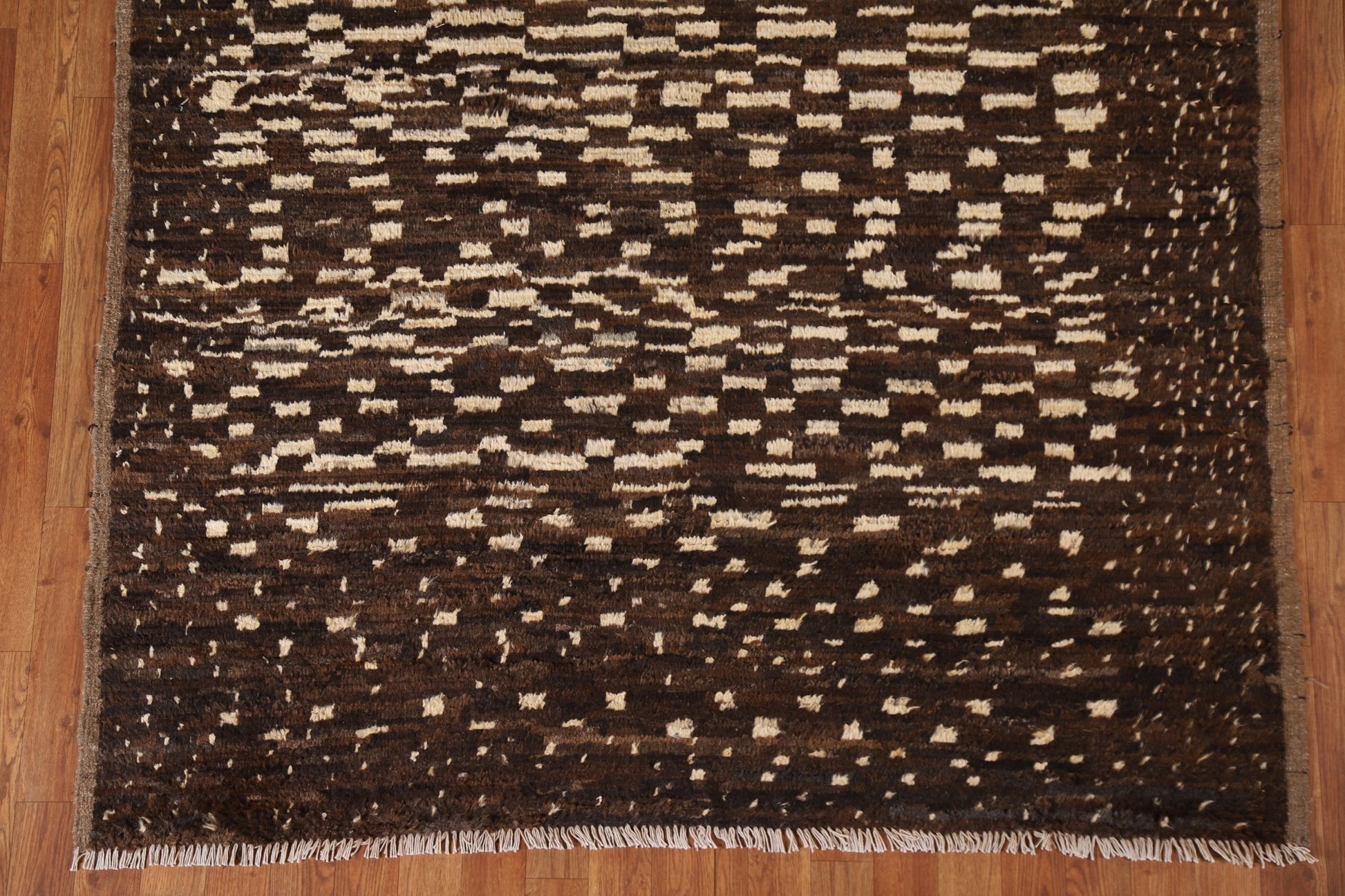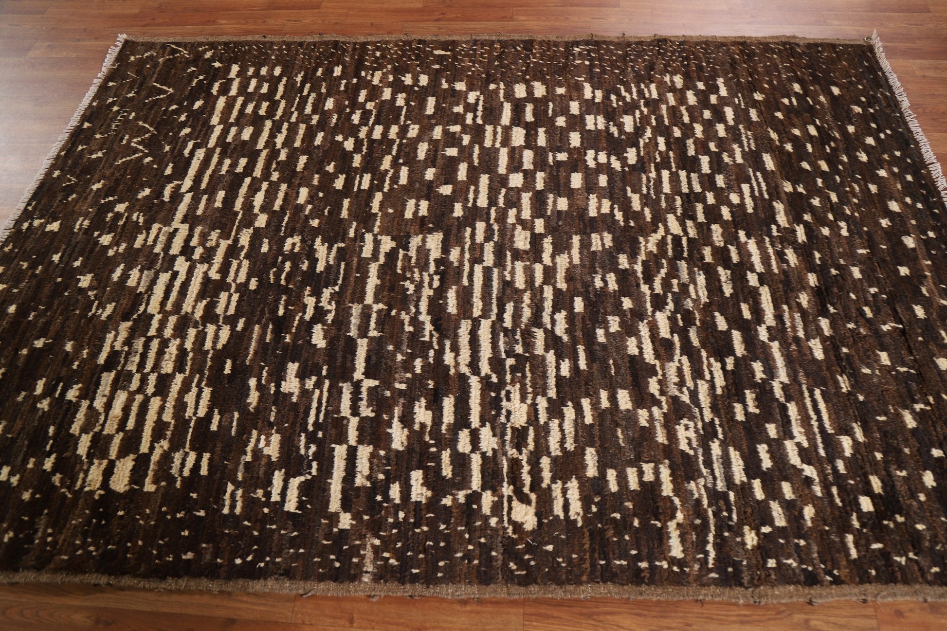 A Beautiful Genuine Pakistan Moroccan rug is Hand Knotted by skillful weavers in Pakistan with 100% Wool Material. This rug is in condition. dimensions are 7' 9'' X 5' 5'' in foot and 236 X 165 in centimeter. the primary color is Brown.