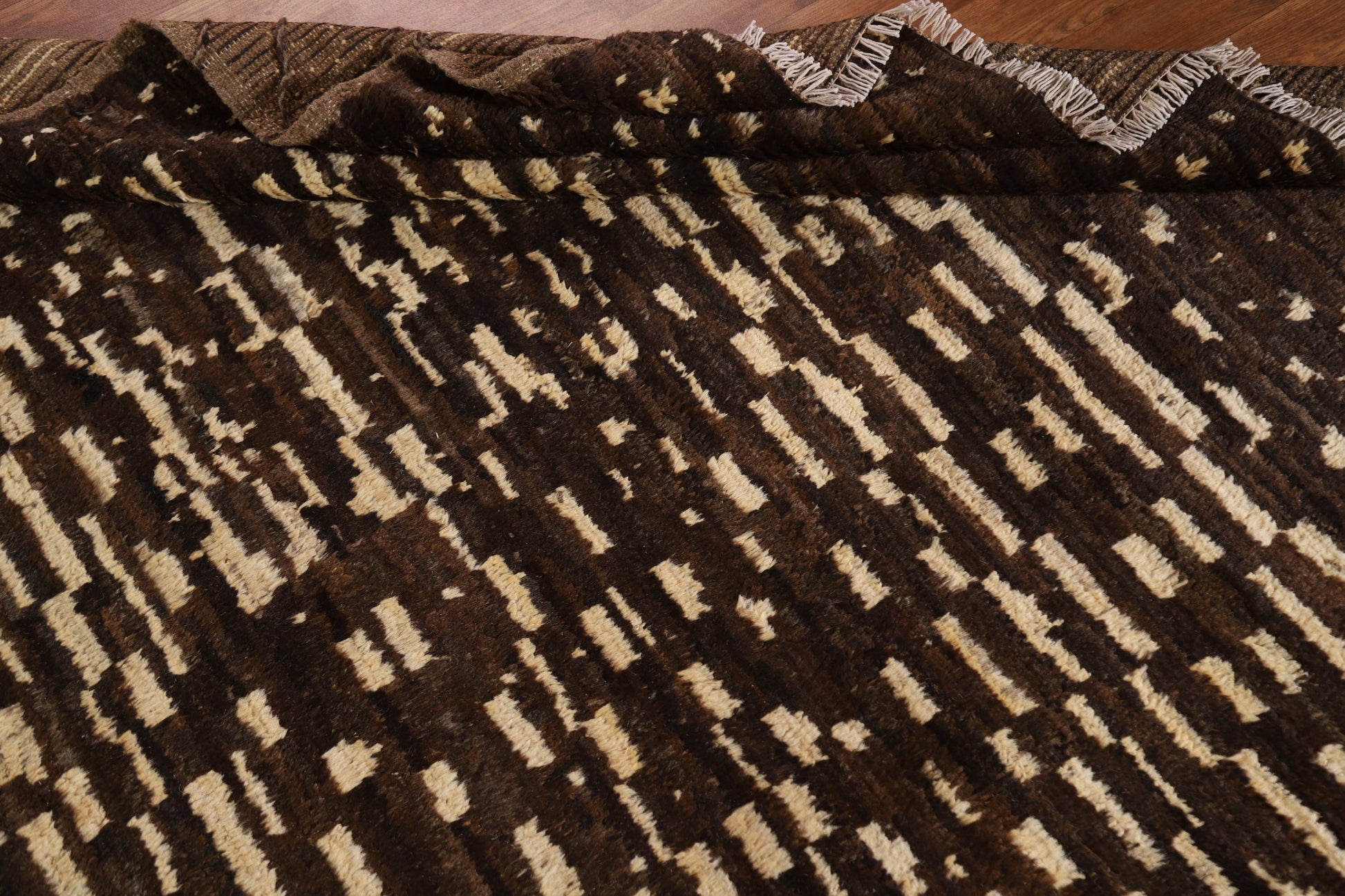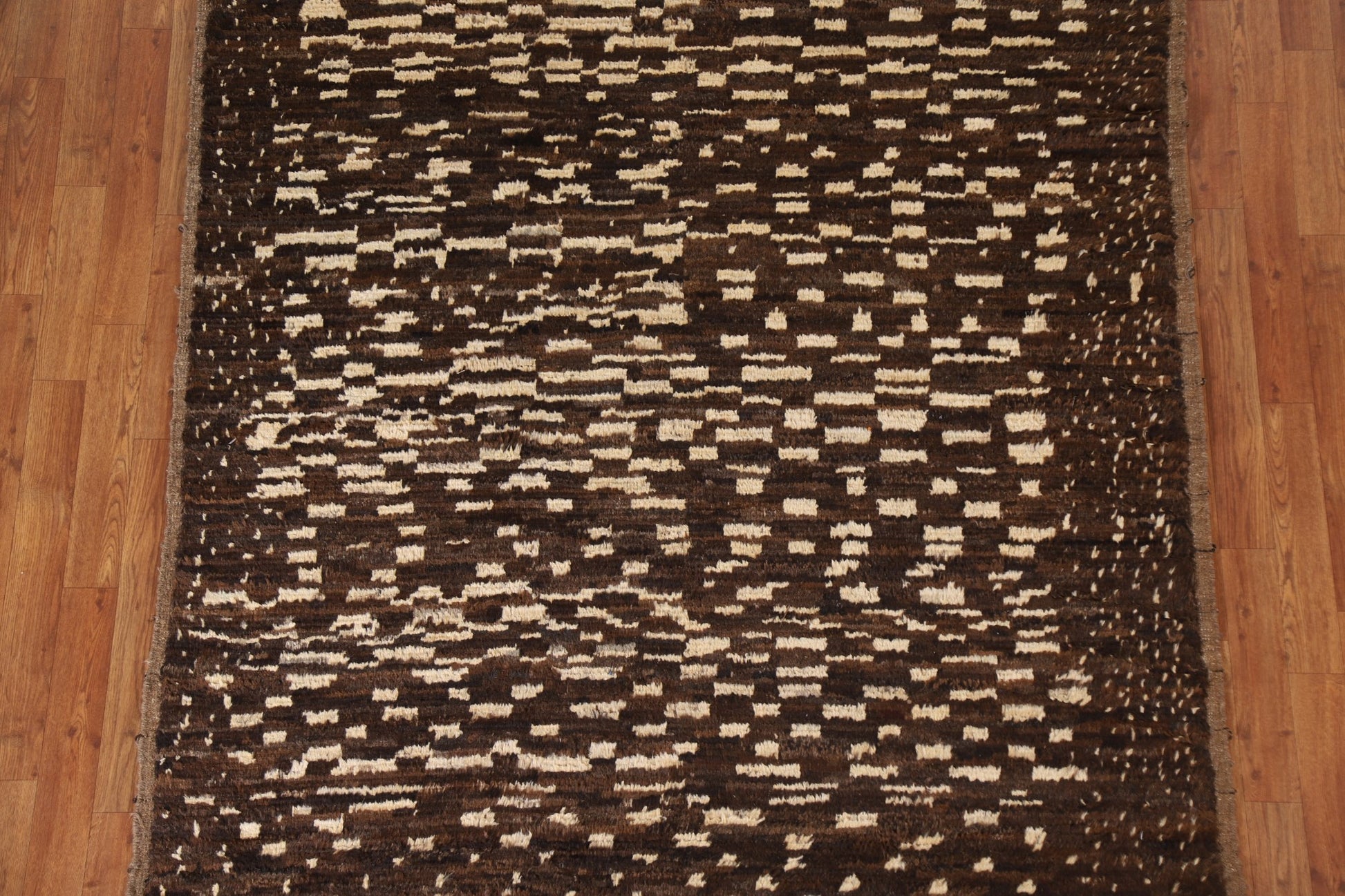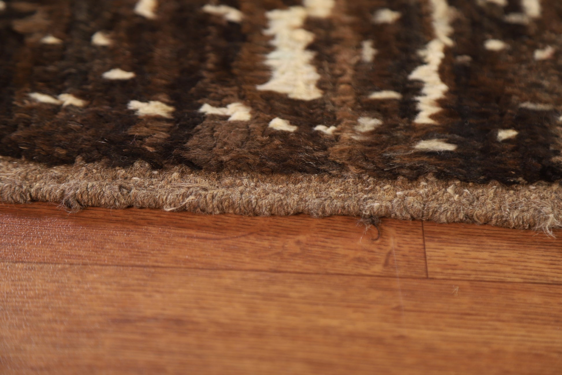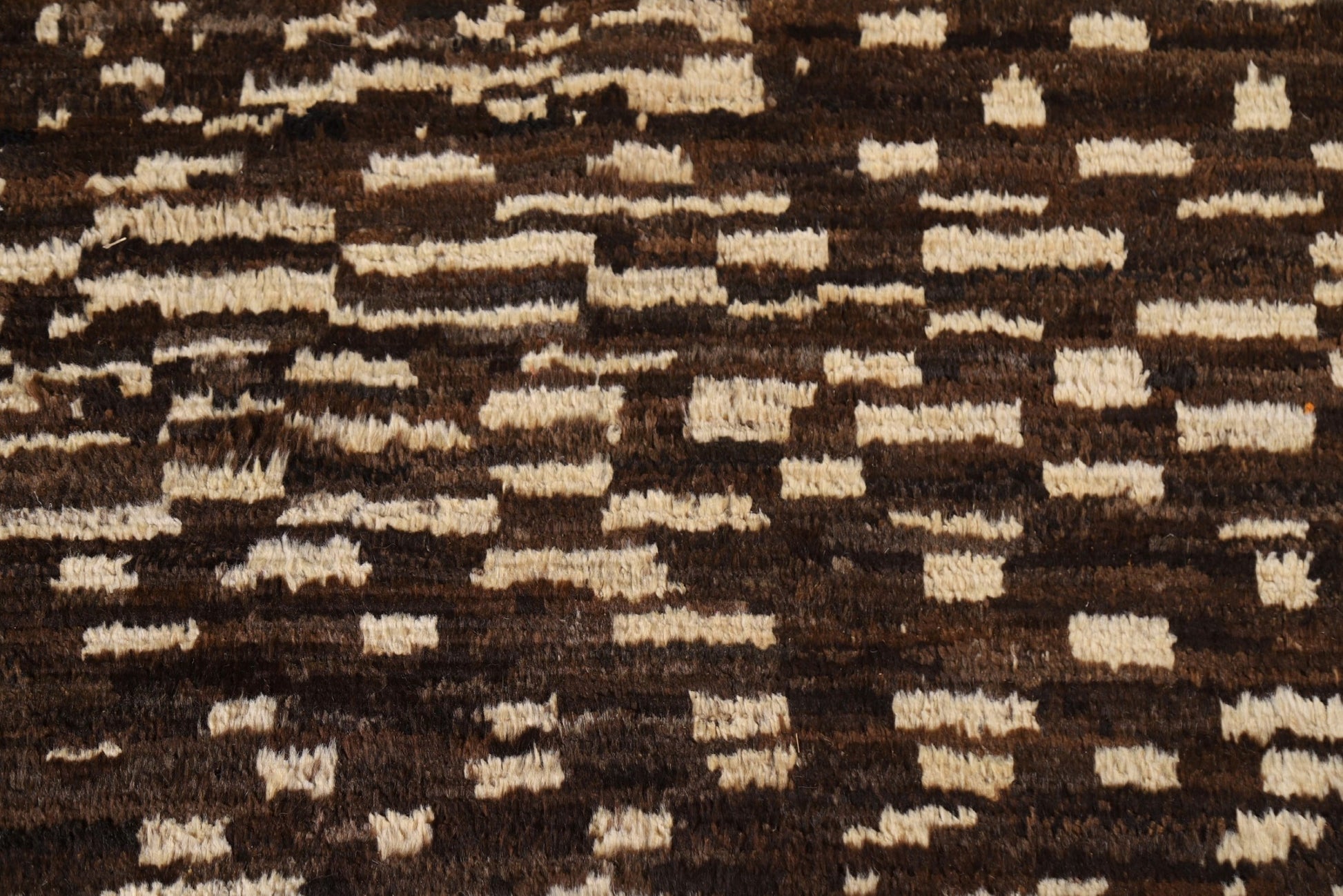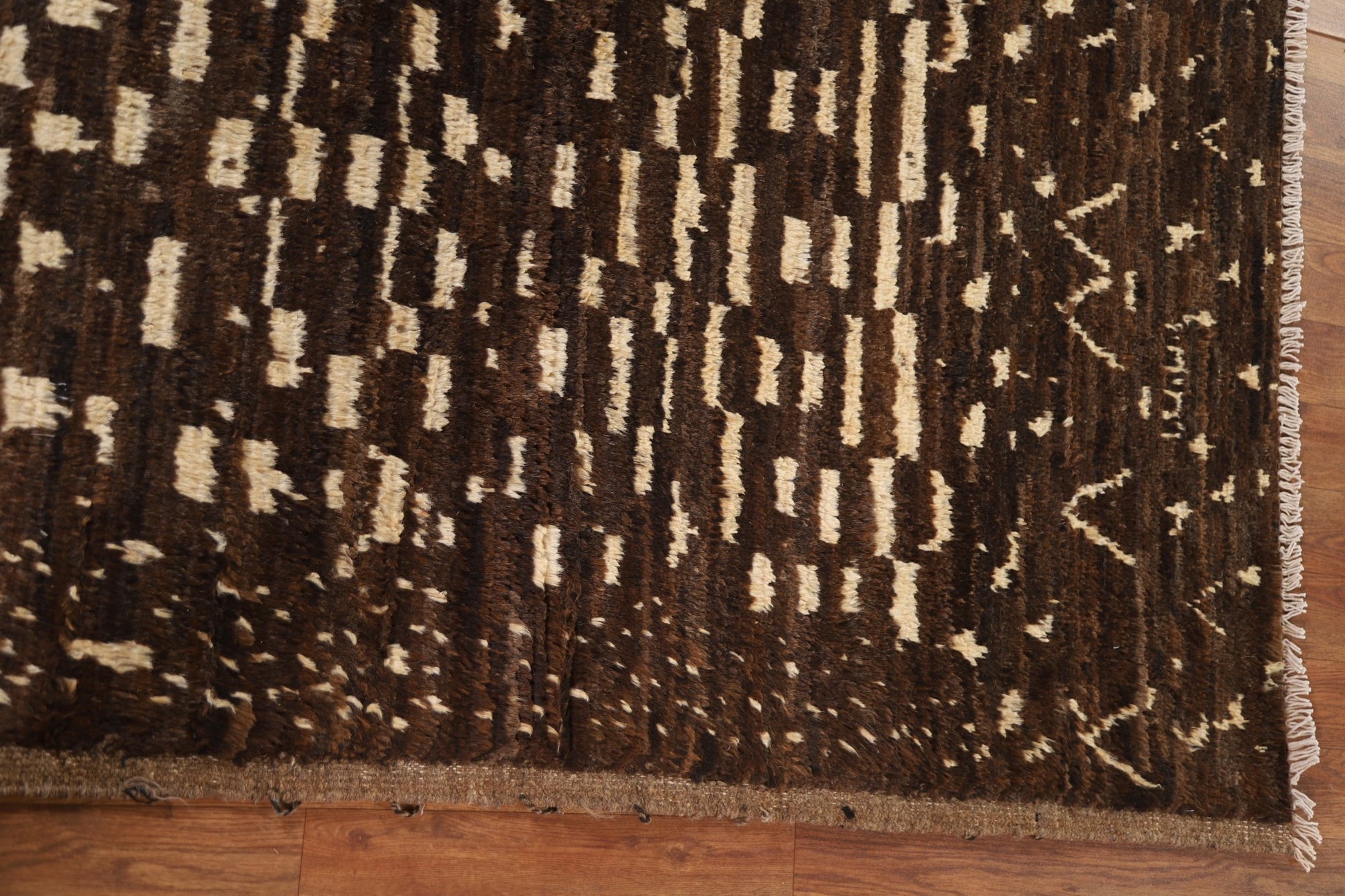 A Beautiful Genuine Pakistan Moroccan rug is Hand Knotted by skillful weavers in Pakistan with 100% Wool Material. This rug is in condition. dimensions are 7' 9'' X 5' 5'' in foot and 236 X 165 in centimeter. the primary color is Brown.