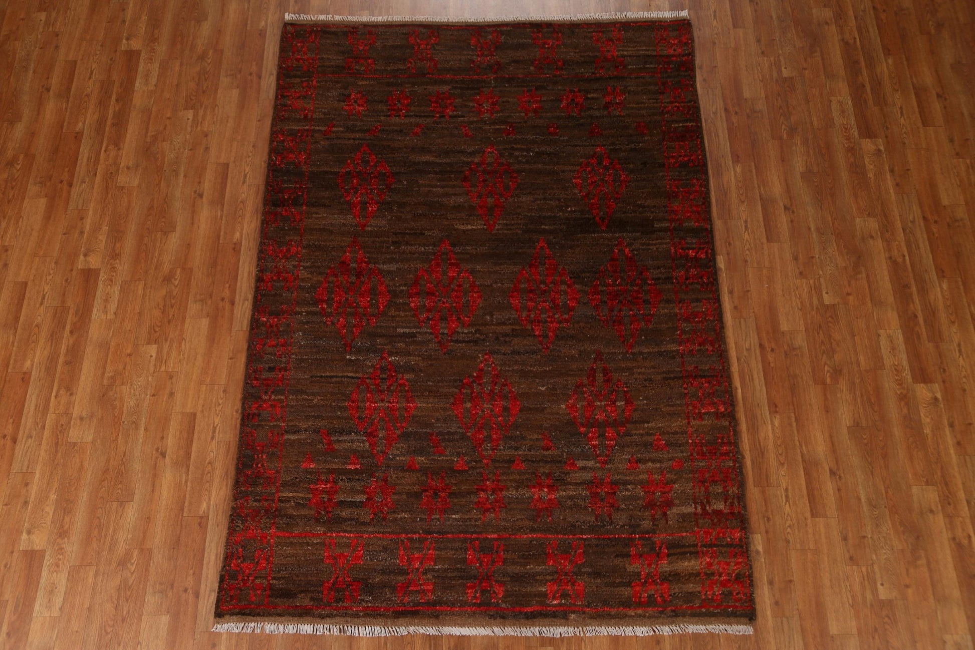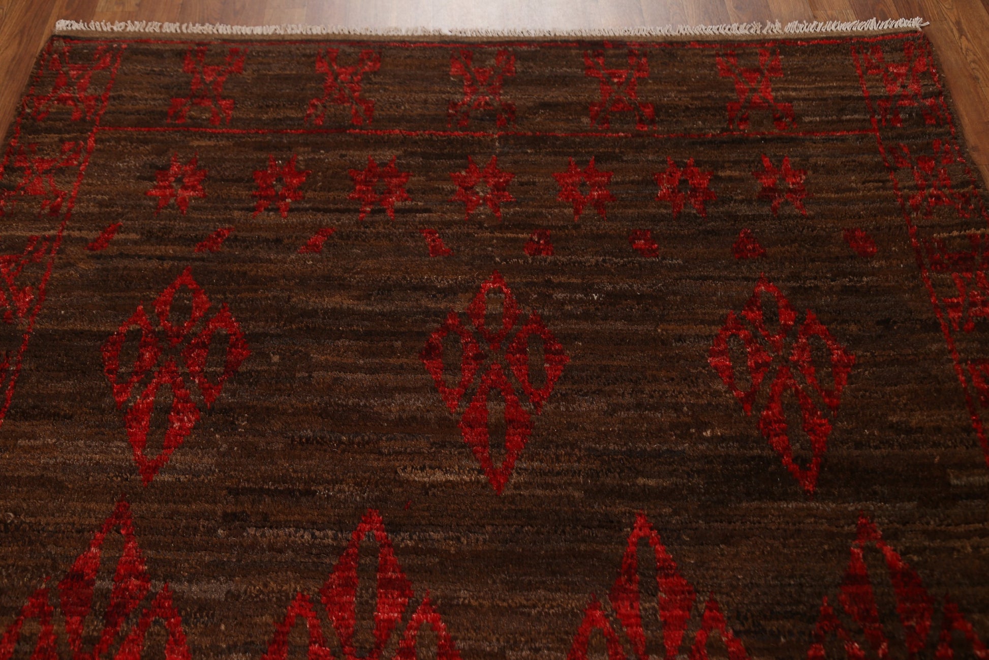A Beautiful Genuine Pakistan Moroccan rug is Hand Knotted by skillful weavers in Pakistan with 100% Wool Material. This rug is in condition. dimensions are 7' 9'' X 5' 5'' in foot and 236 X 165 in centimeter. the primary color is Brown.