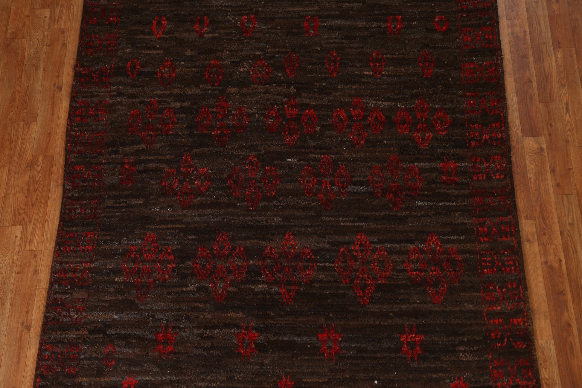 A Beautiful Genuine Pakistan Moroccan rug is Hand Knotted by skillful weavers in Pakistan with 100% Wool Material. This rug is in condition. dimensions are 8' 0'' X 5' 8'' in foot and 244 X 173 in centimeter. the primary color is Brown.