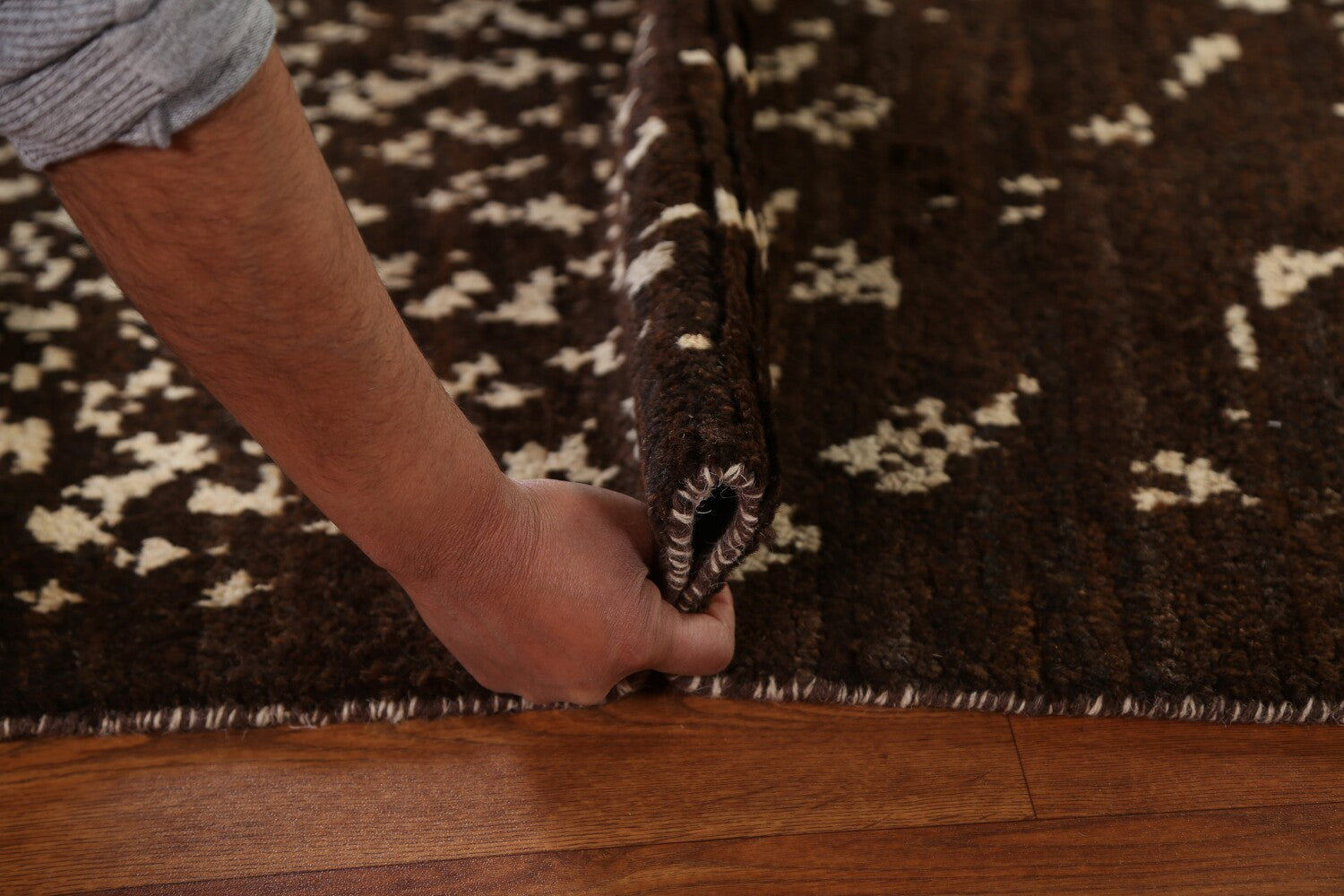 A Beautiful Genuine Pakistan Moroccan rug is Hand Knotted by skillful weavers in Pakistan with 100% Wool Material. This rug is in New, First Quality condition. dimensions are 7' 11'' X 5' 7'' in foot and 241 X 170 in centimeter. the primary color is Brown.