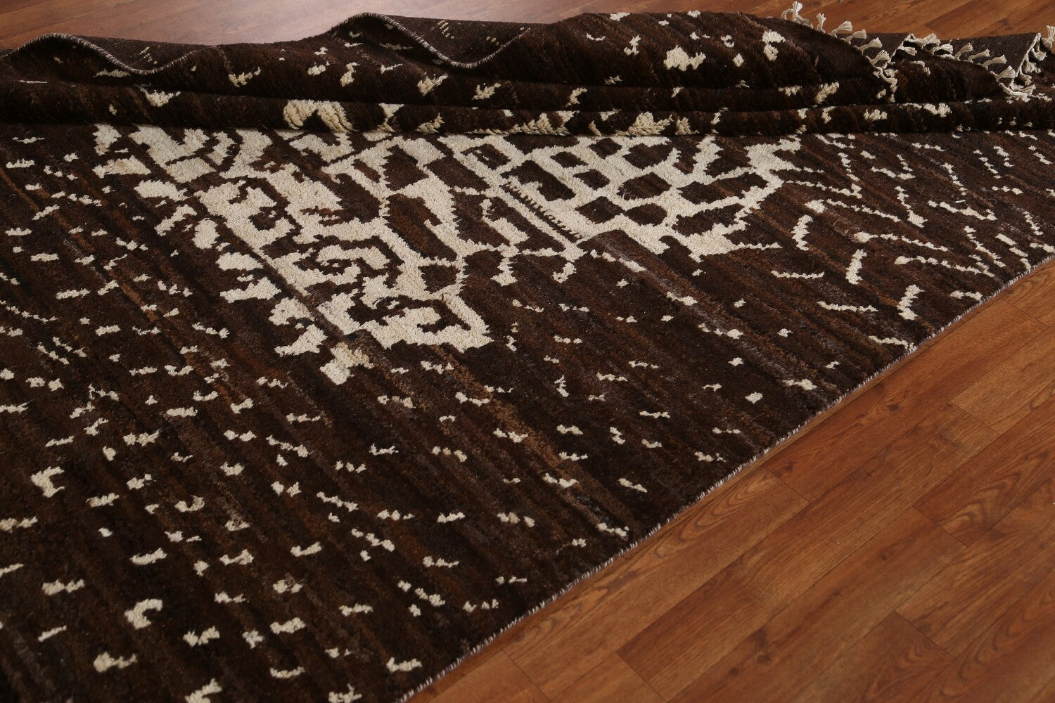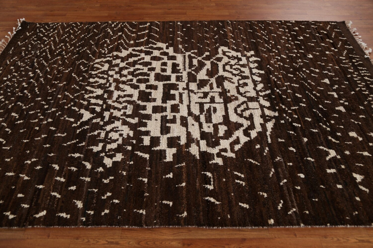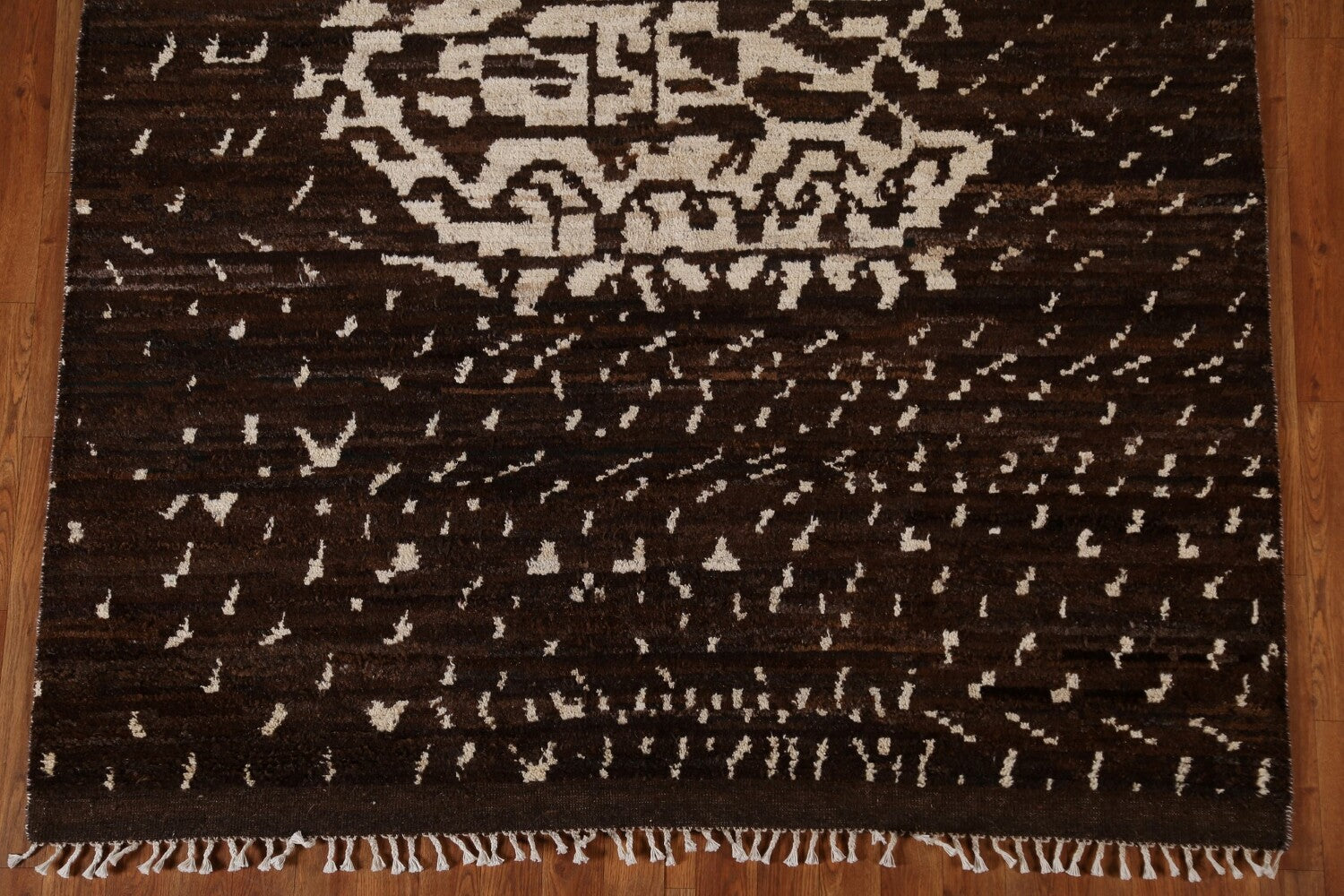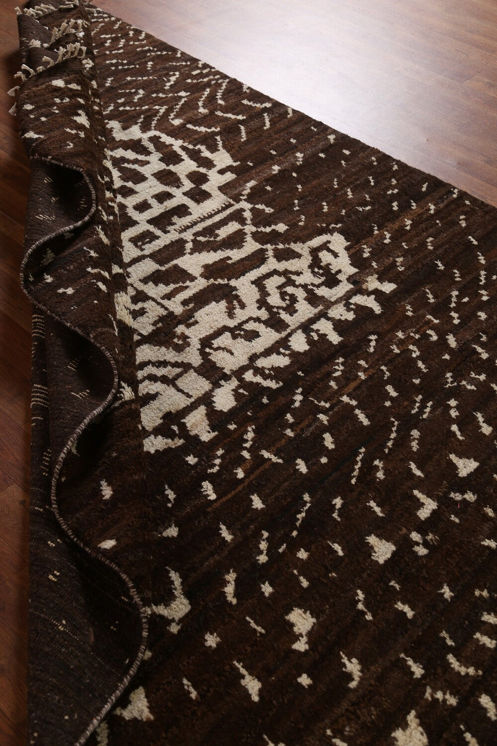 A Beautiful Genuine Pakistan Moroccan rug is Hand Knotted by skillful weavers in Pakistan with 100% Wool Material. This rug is in New, First Quality condition. dimensions are 8' 2'' X 5' 7'' in foot and 249 X 170 in centimeter. the primary color is Brown.