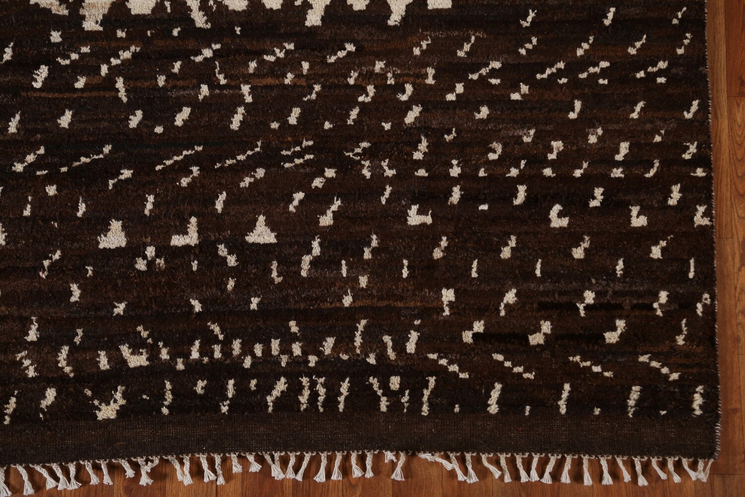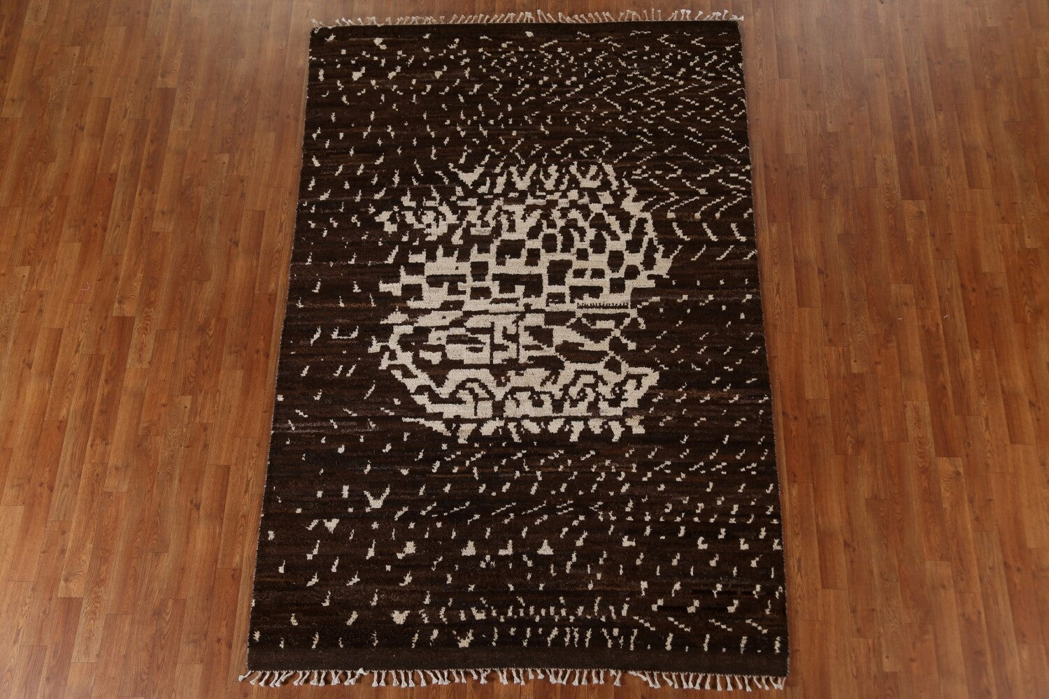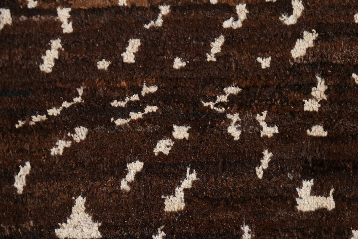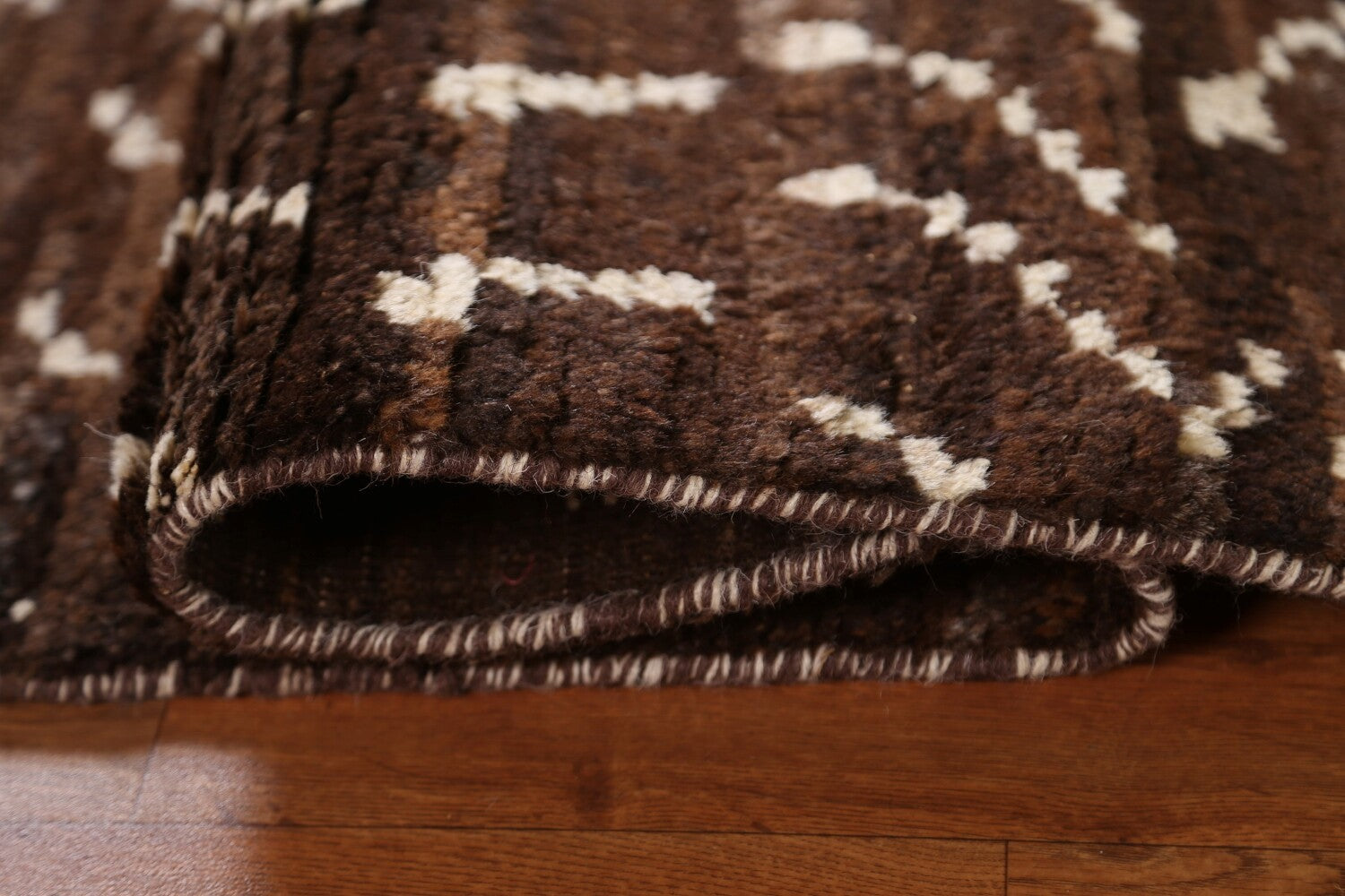 A Beautiful Genuine Pakistan Moroccan rug is Hand Knotted by skillful weavers in Pakistan with 100% Wool Material. This rug is in New, First Quality condition. dimensions are 8' 2'' X 5' 7'' in foot and 249 X 170 in centimeter. the primary color is Brown.