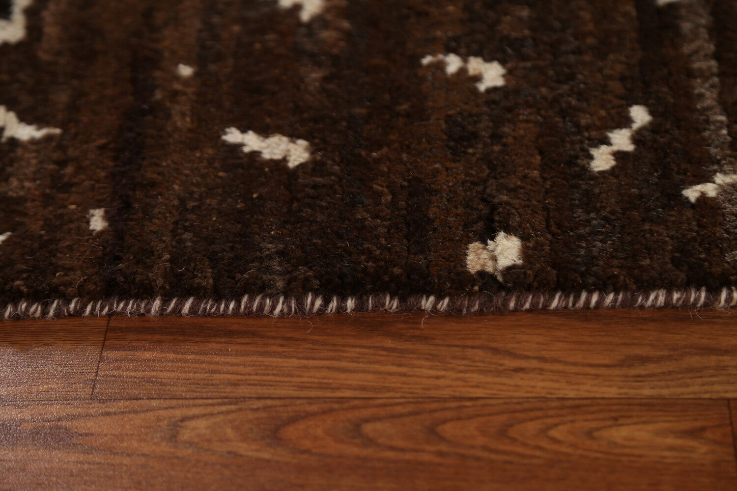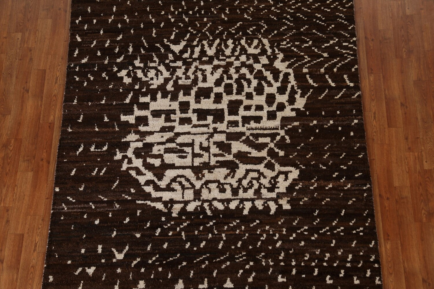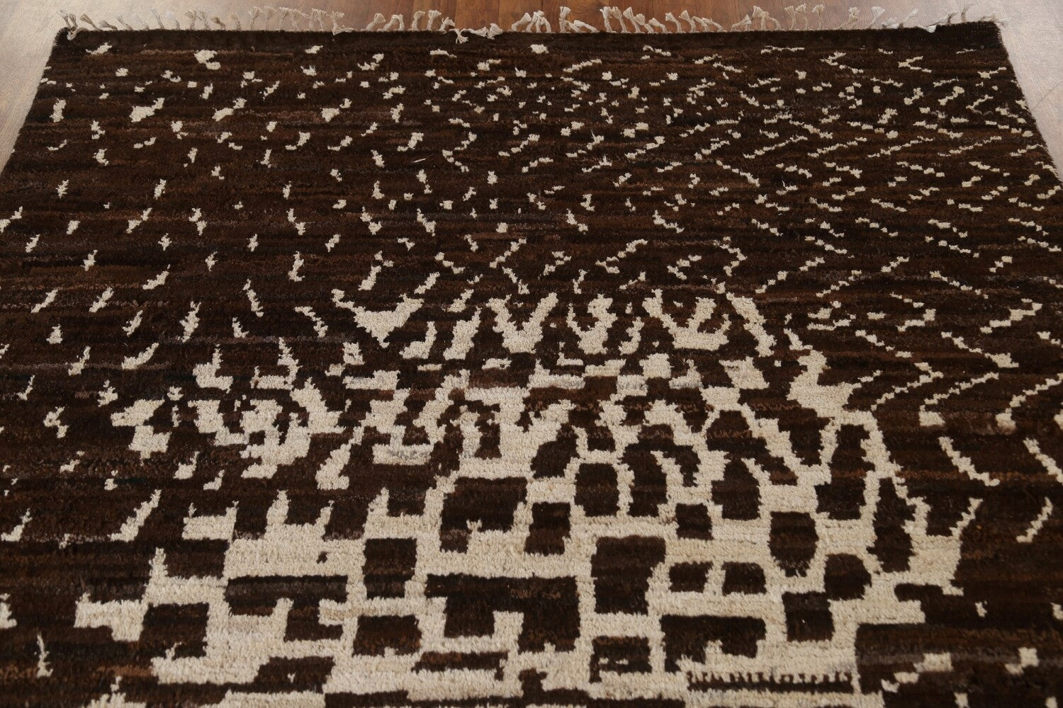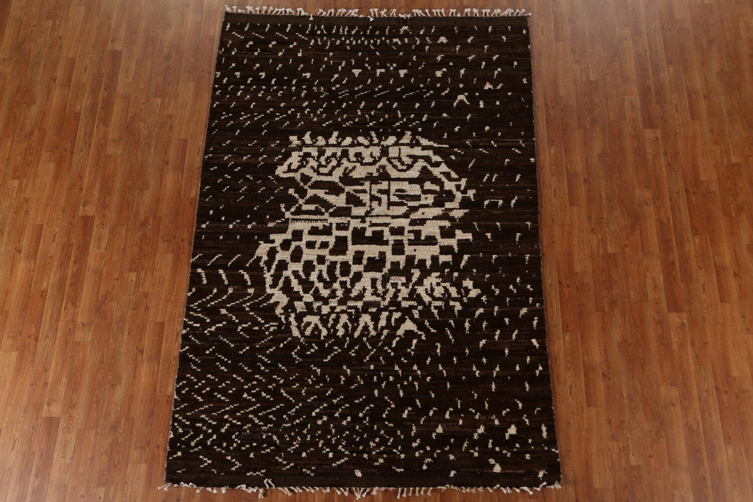 A Beautiful Genuine Pakistan Moroccan rug is Hand Knotted by skillful weavers in Pakistan with 100% Wool Material. This rug is in New, First Quality condition. dimensions are 8' 2'' X 5' 7'' in foot and 249 X 170 in centimeter. the primary color is Brown.