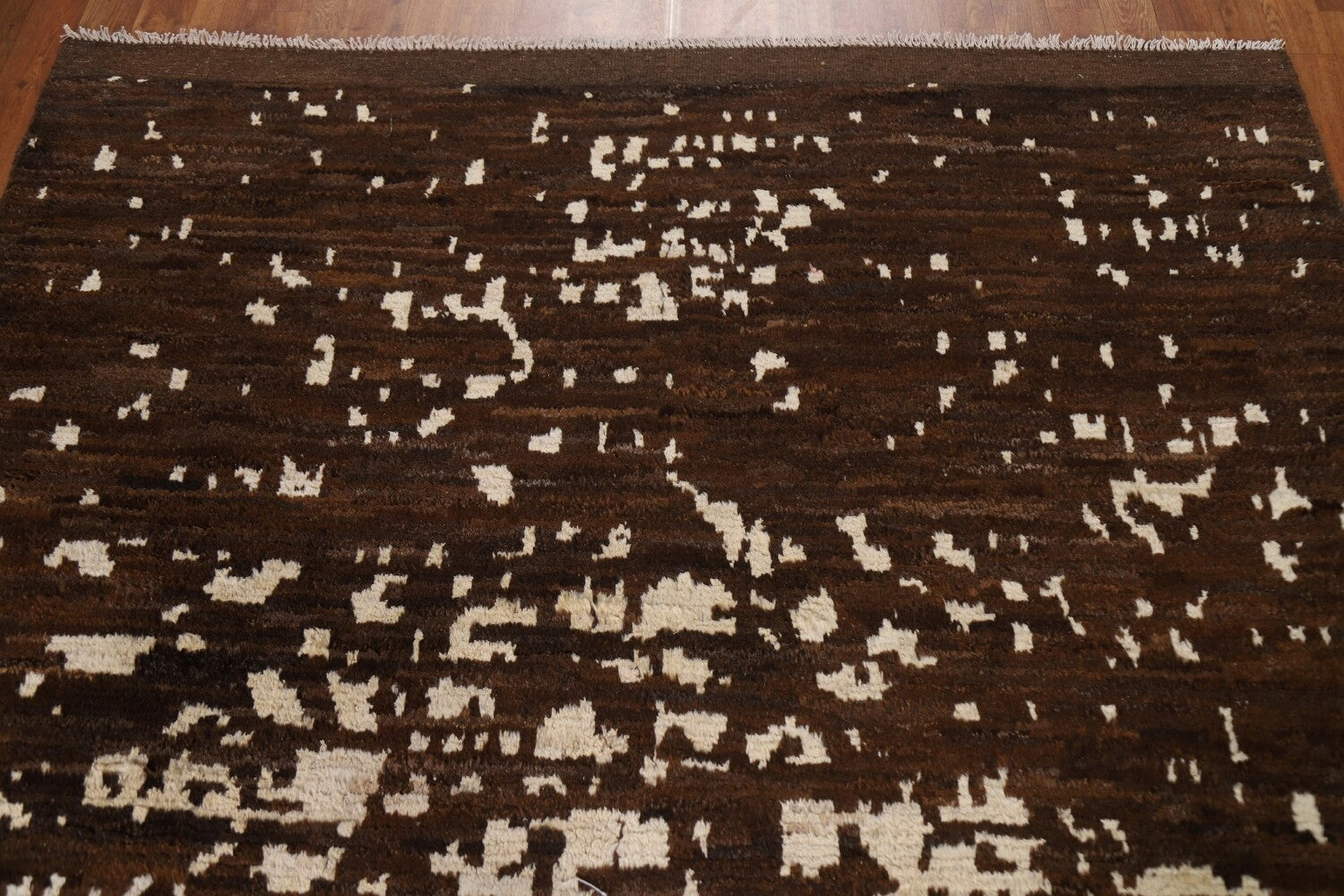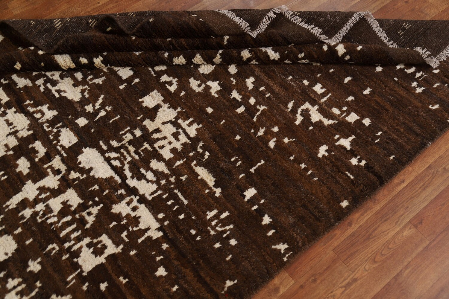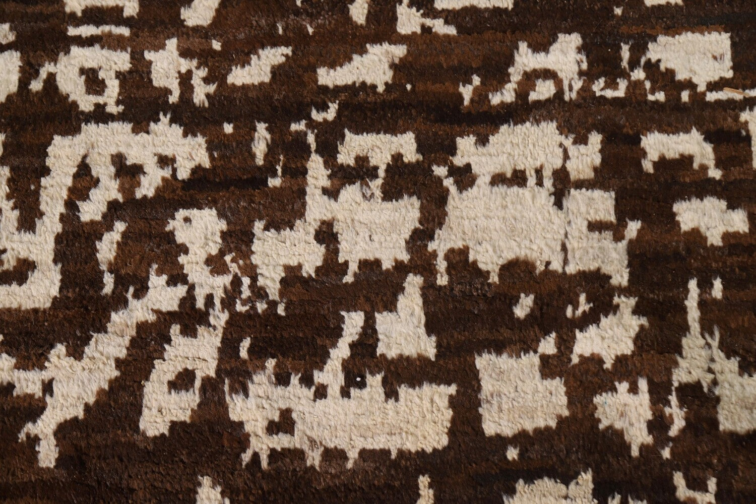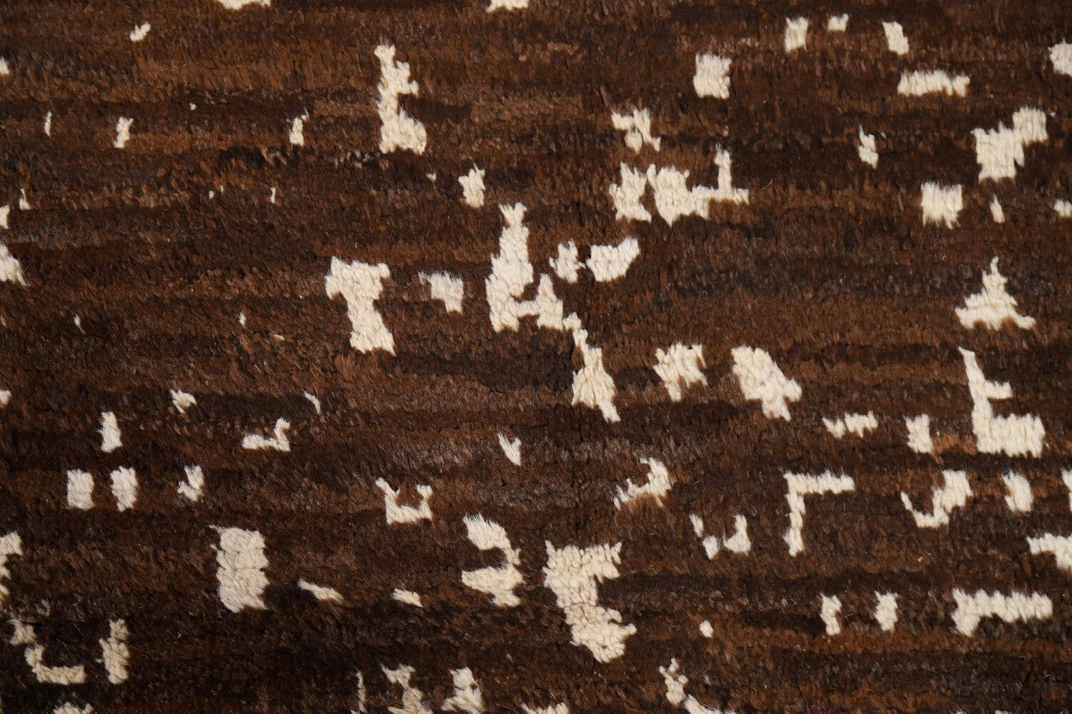 A Beautiful Genuine Pakistan Moroccan rug is Hand Knotted by skillful weavers in Pakistan with 100% Wool Material. This rug is in condition. dimensions are 8' 7'' X 6' 0'' in foot and 262 X 183 in centimeter. the primary color is Brown.