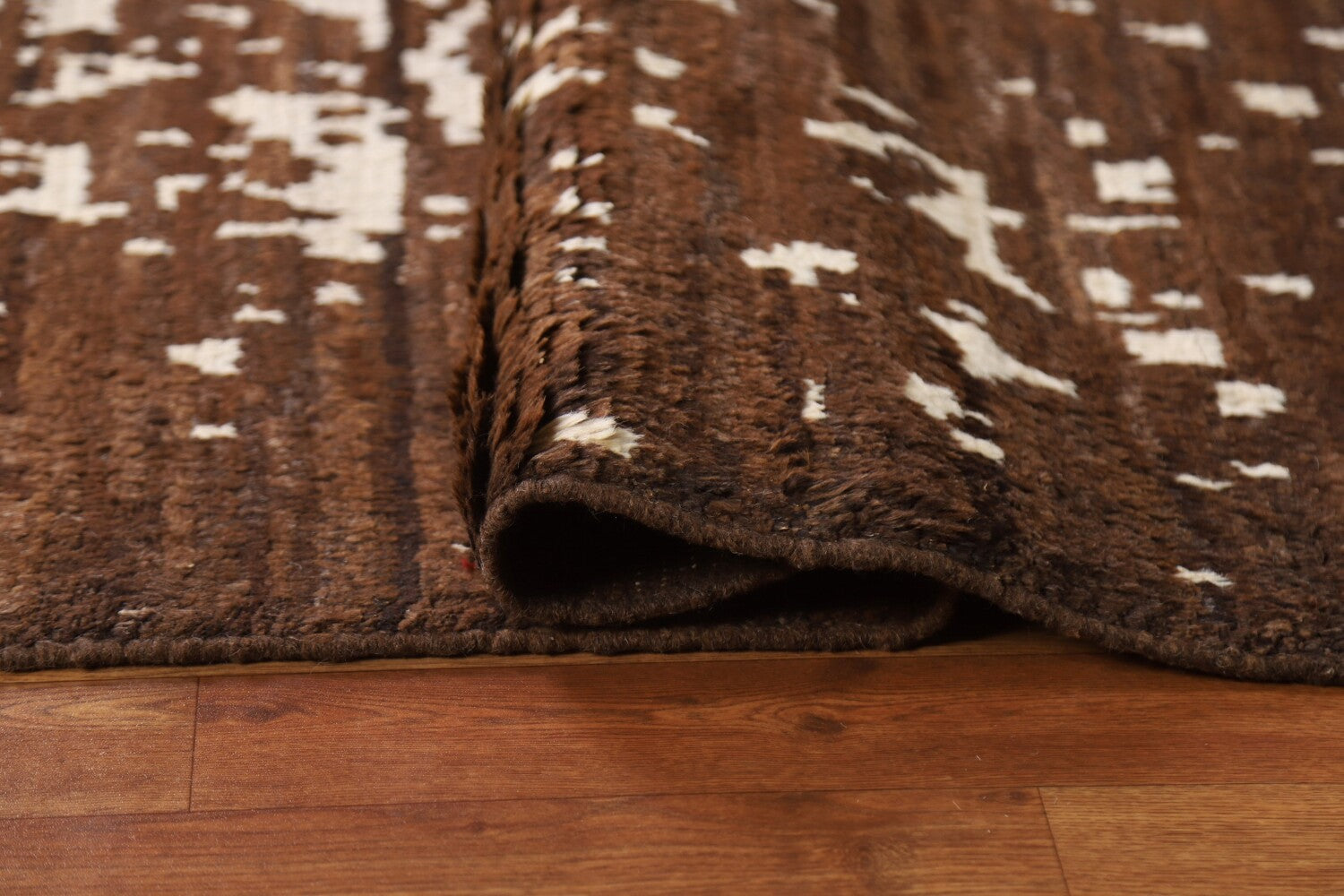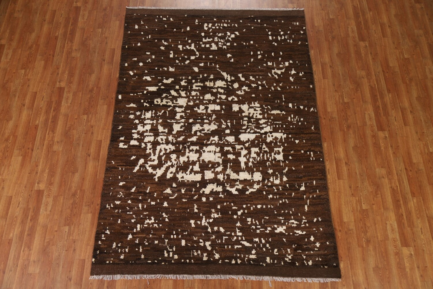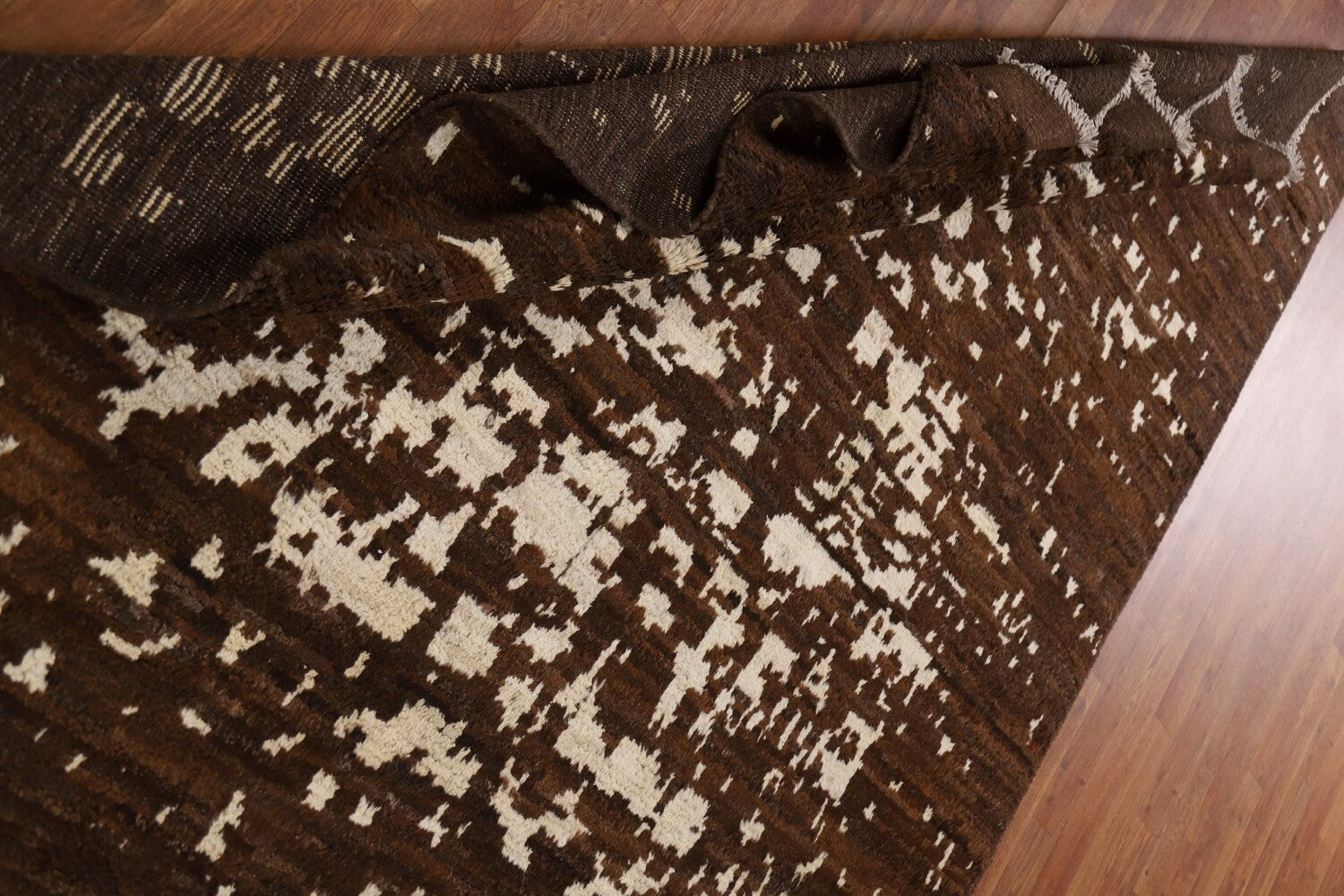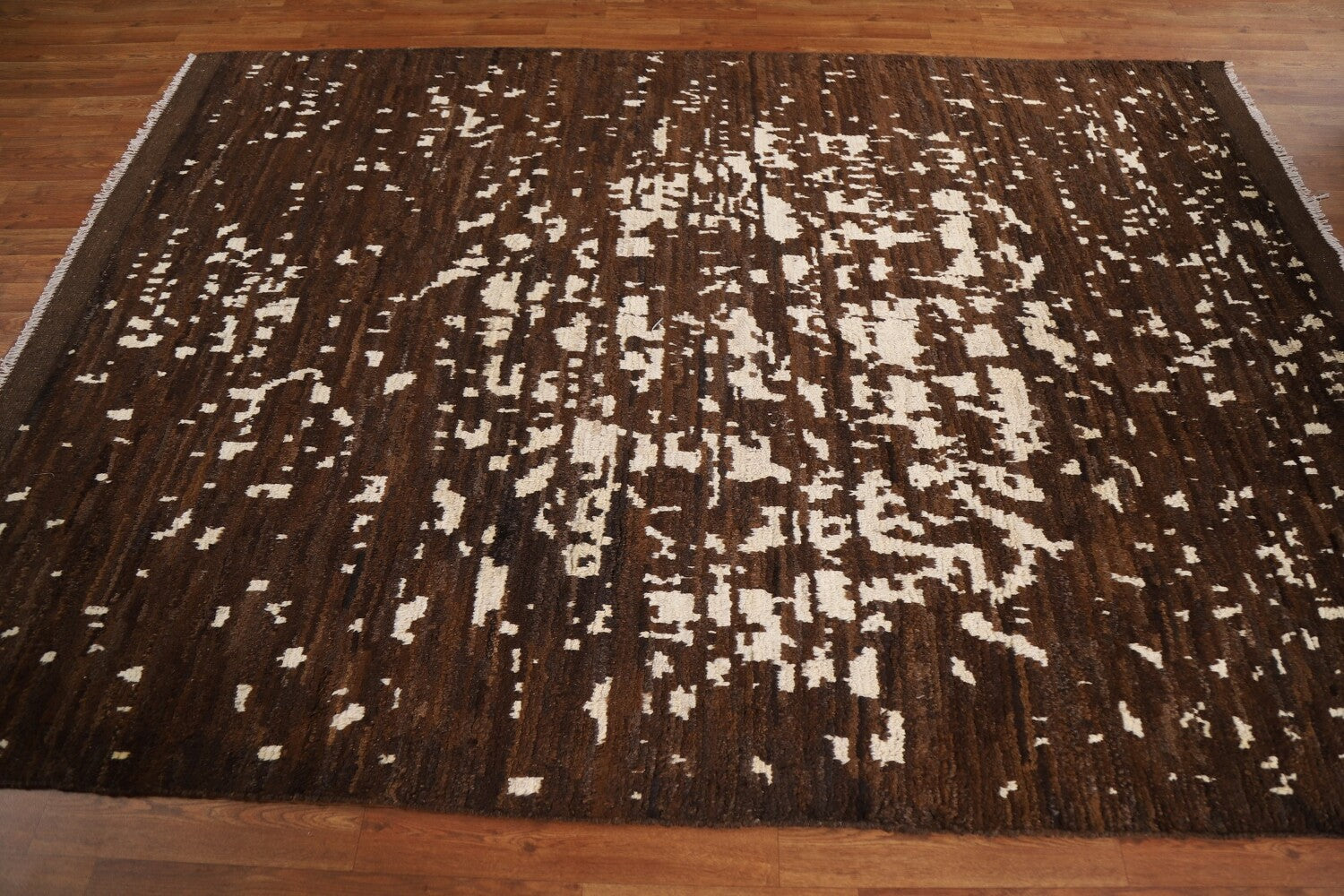 A Beautiful Genuine Pakistan Moroccan rug is Hand Knotted by skillful weavers in Pakistan with 100% Wool Material. This rug is in condition. dimensions are 8' 7'' X 6' 0'' in foot and 262 X 183 in centimeter. the primary color is Brown.