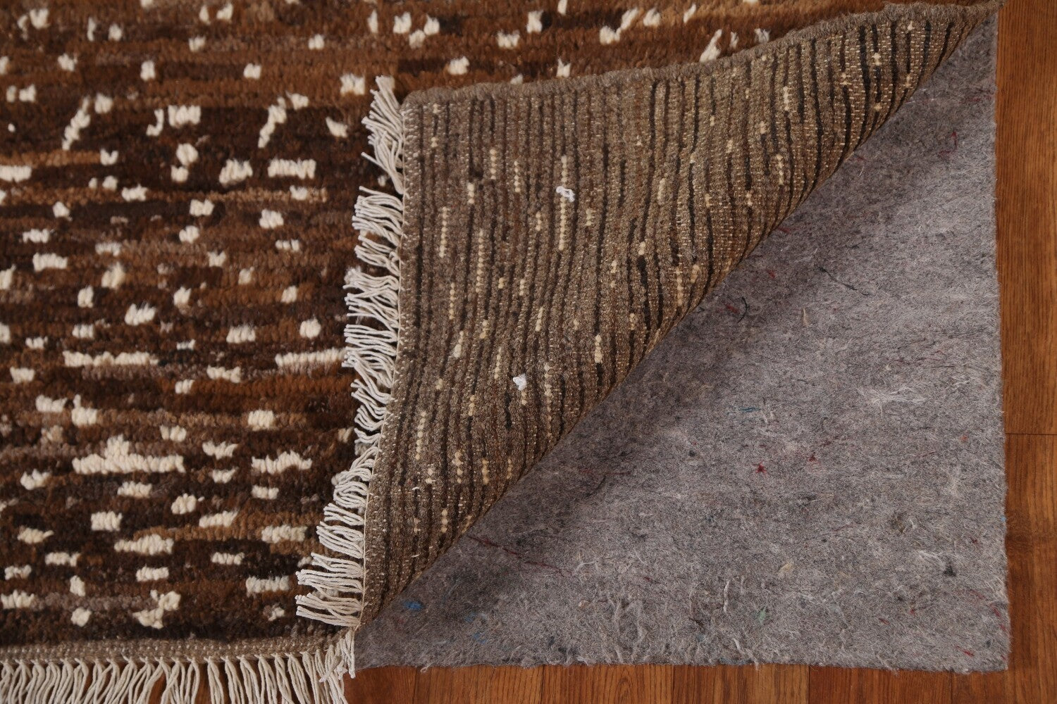 A Beautiful Genuine Pakistan Moroccan rug is Hand Knotted by skillful weavers in Pakistan with 100% Wool Material. This rug is in condition. dimensions are 8' 7'' X 6' 1'' in foot and 262 X 185 in centimeter. the primary color is Brown.