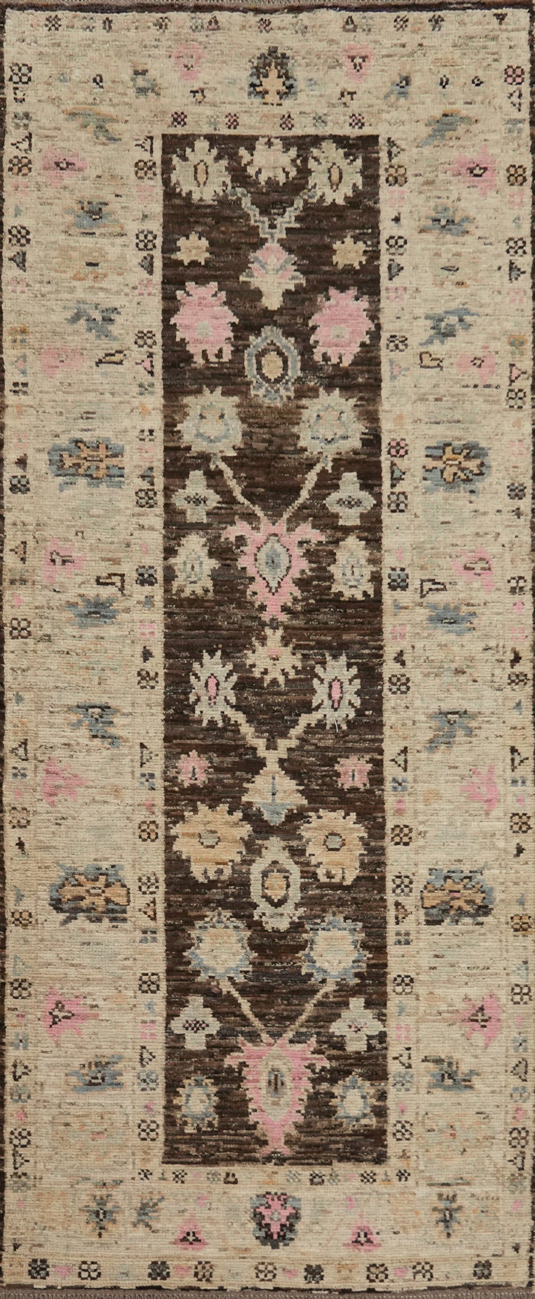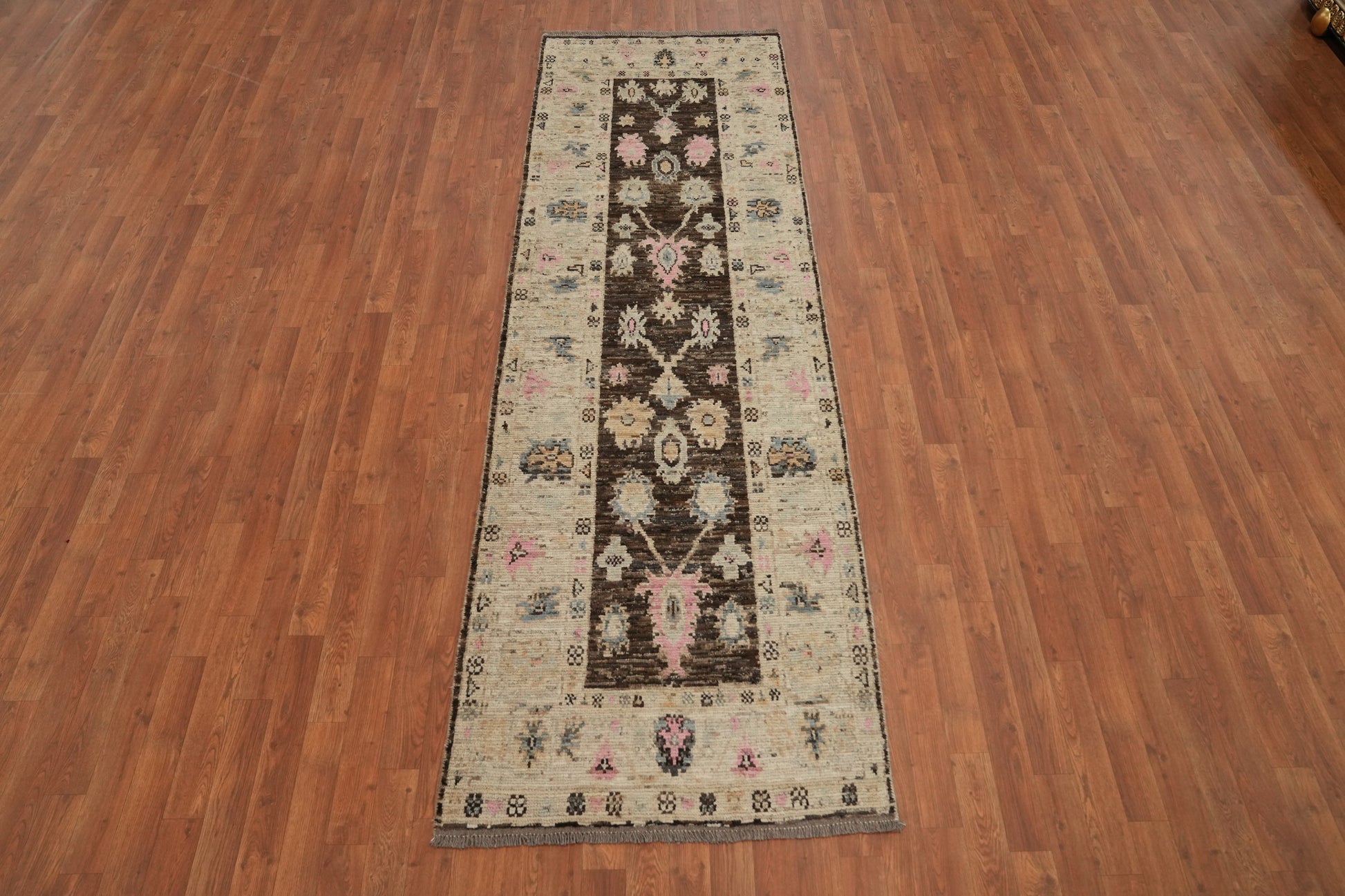 Dark Brown Oushak Vegetable Dye Runner Rug 3x9