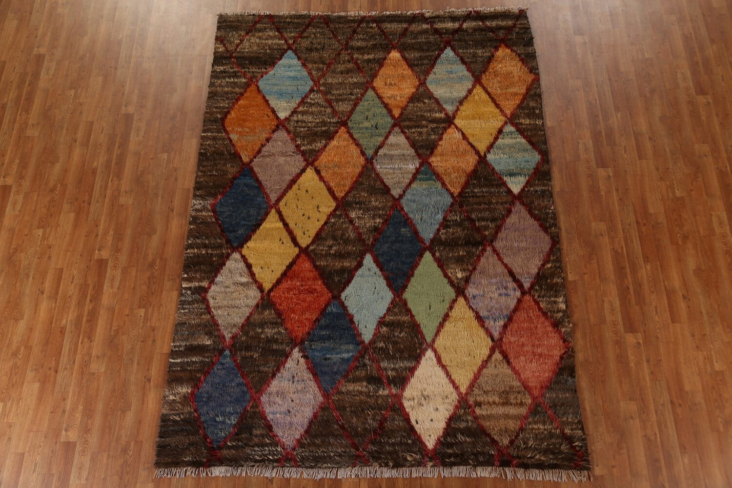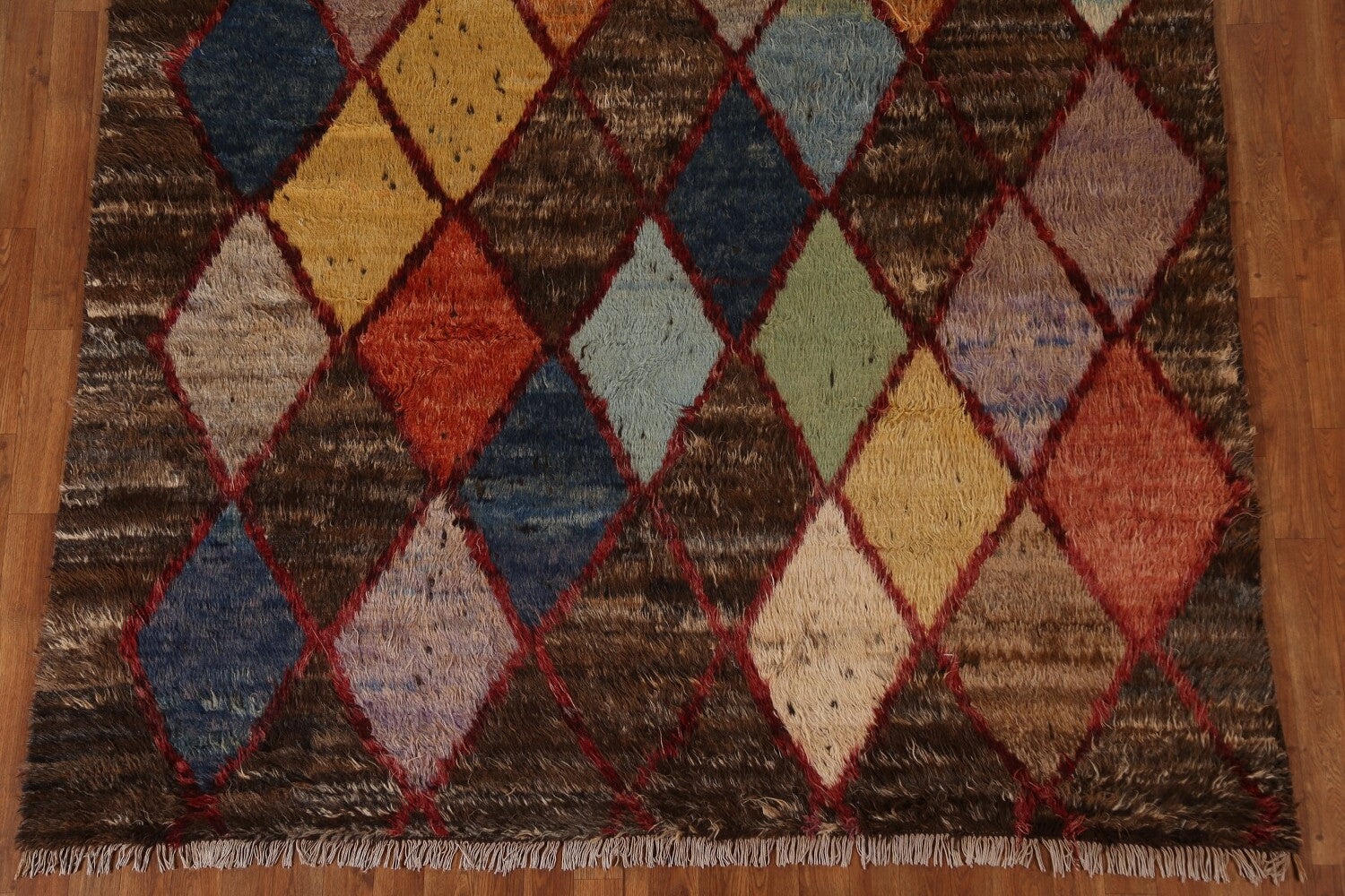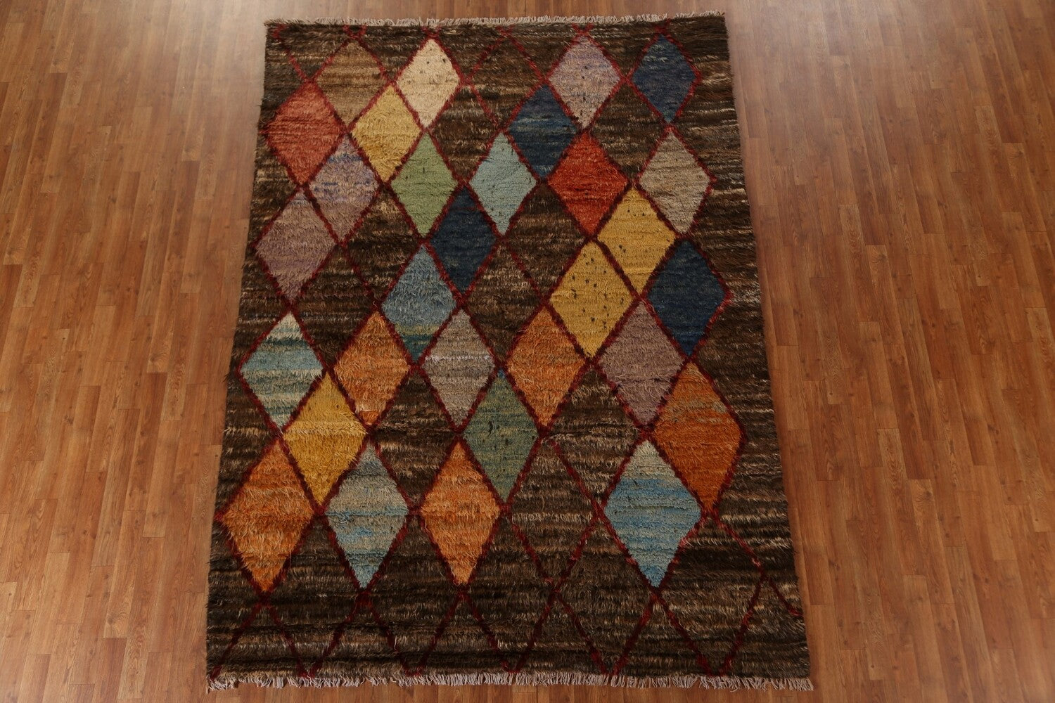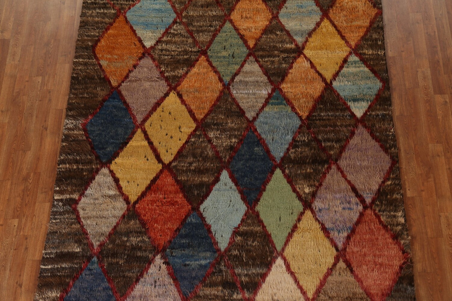 Dark Brown Trellis Moroccan Wool Area Rug 7x9