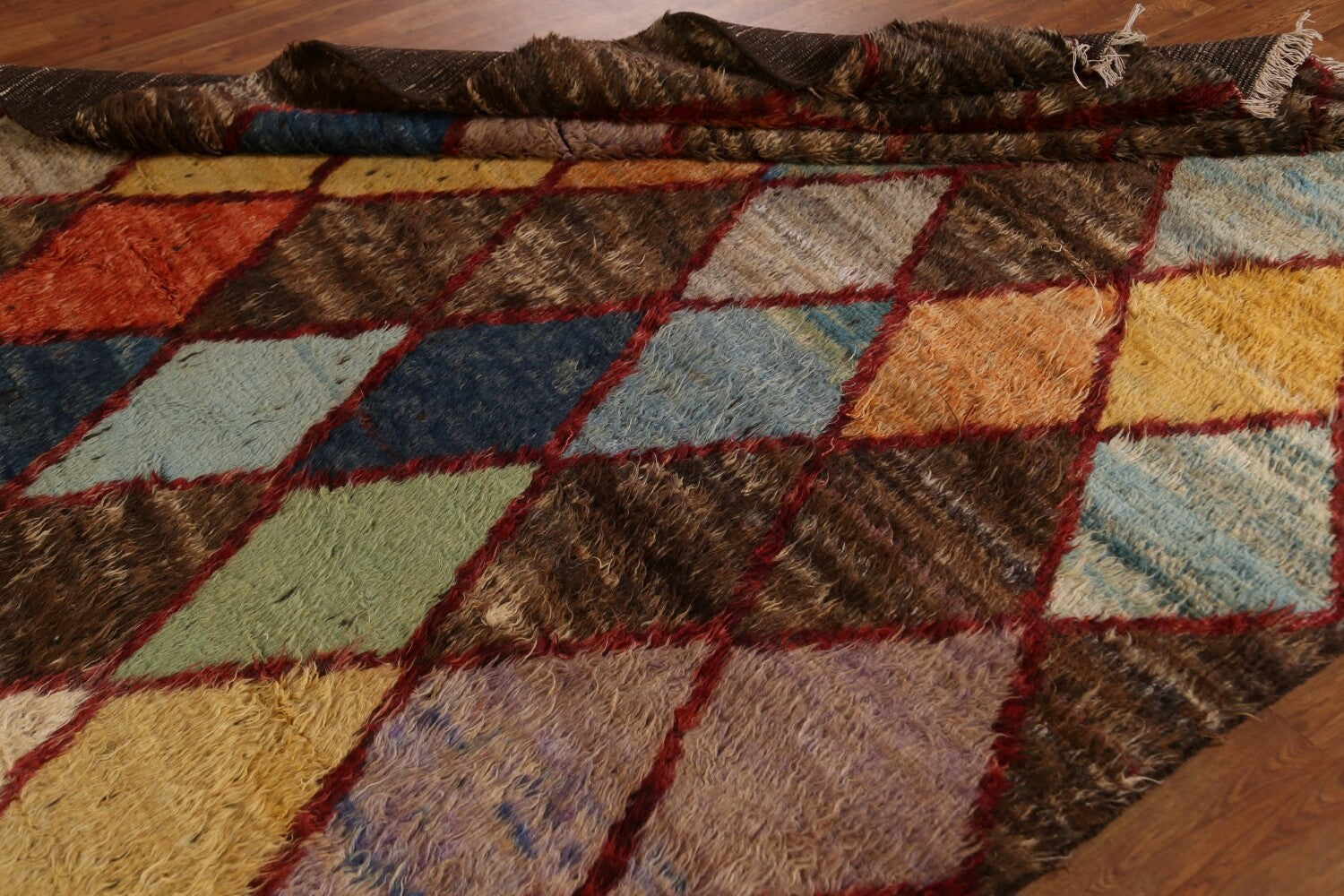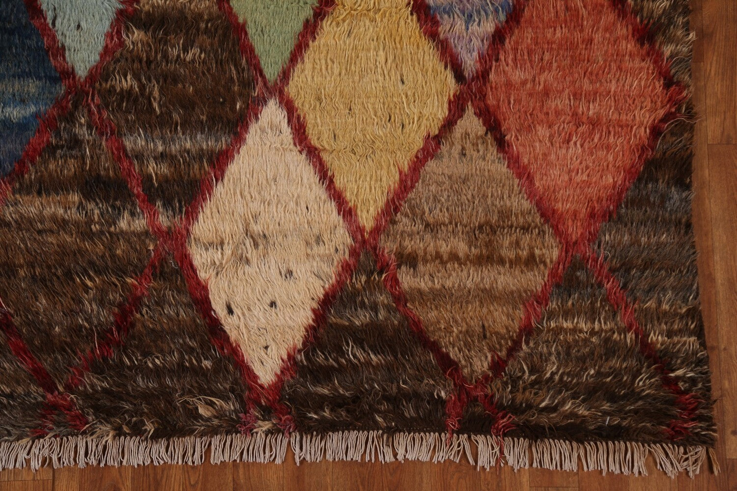 A Beautiful Genuine Pakistan Moroccan rug is Hand Knotted by skillful weavers in Pakistan with 100% Wool Material. This rug is in condition. dimensions are 9' 4'' X 6' 11'' in foot and 284 X 211 in centimeter. the primary color is Brown.