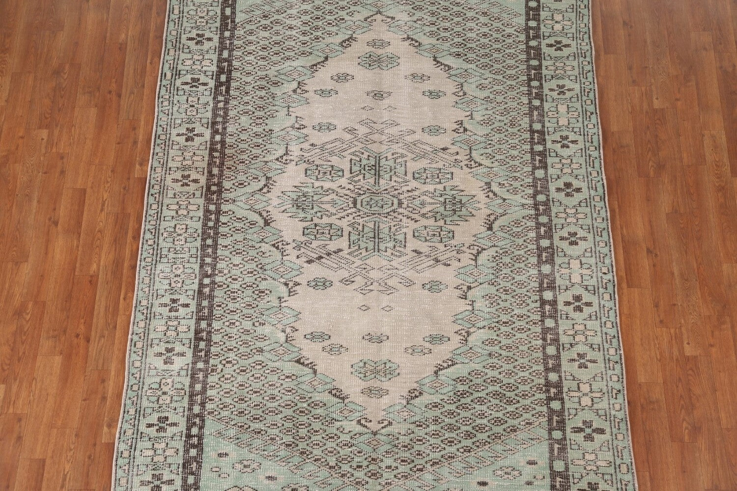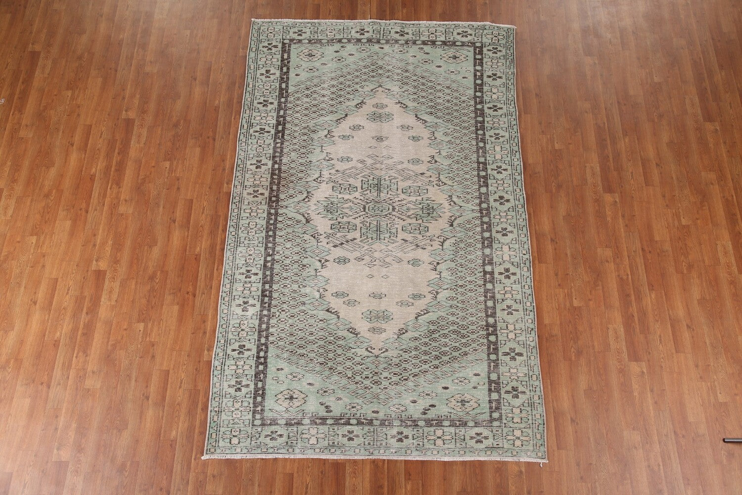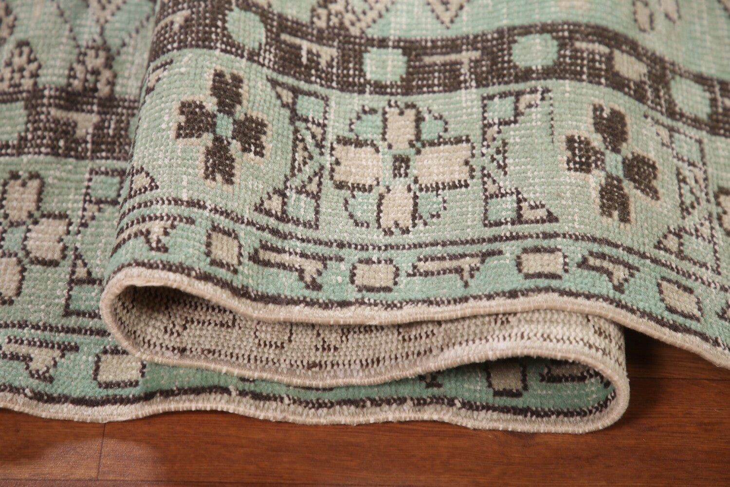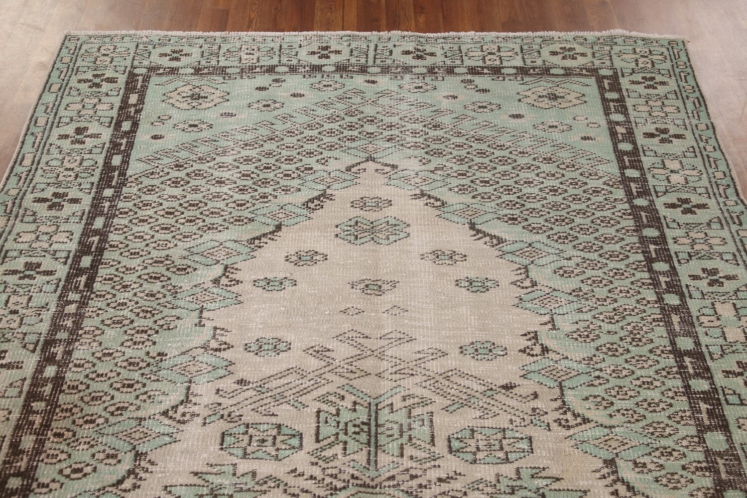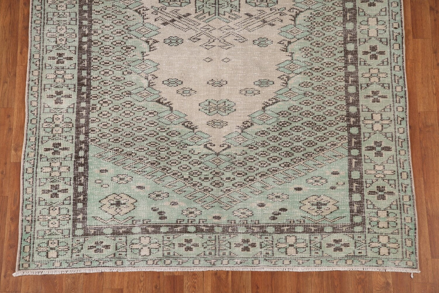 A Beautiful Genuine Turkey Anatolian rug is Hand Knotted by skillful weavers in Turkey with 100% Wool Material. This rug is in Very Good (Evenly Low Pile) condition. dimensions are 9' 1'' X 5' 7'' in foot and 277 X 170 in centimeter. the primary color is Green.