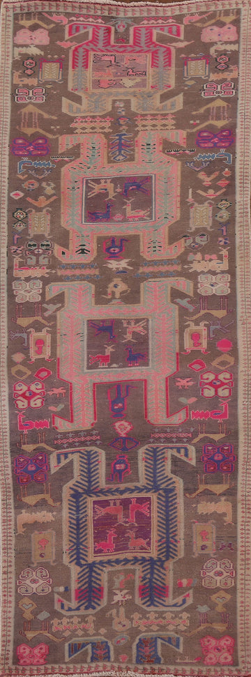 A Beautiful Genuine Persia ( Persia ) Ardebil rug is Hand Knotted by skillful weavers in Persia ( Persia ) with 100% Wool Material. This rug is in Very Good (Low Pile) condition. dimensions are 9' 2'' X 3' 2'' in foot and 279 X 97 in centimeter. the primary color is Brown.