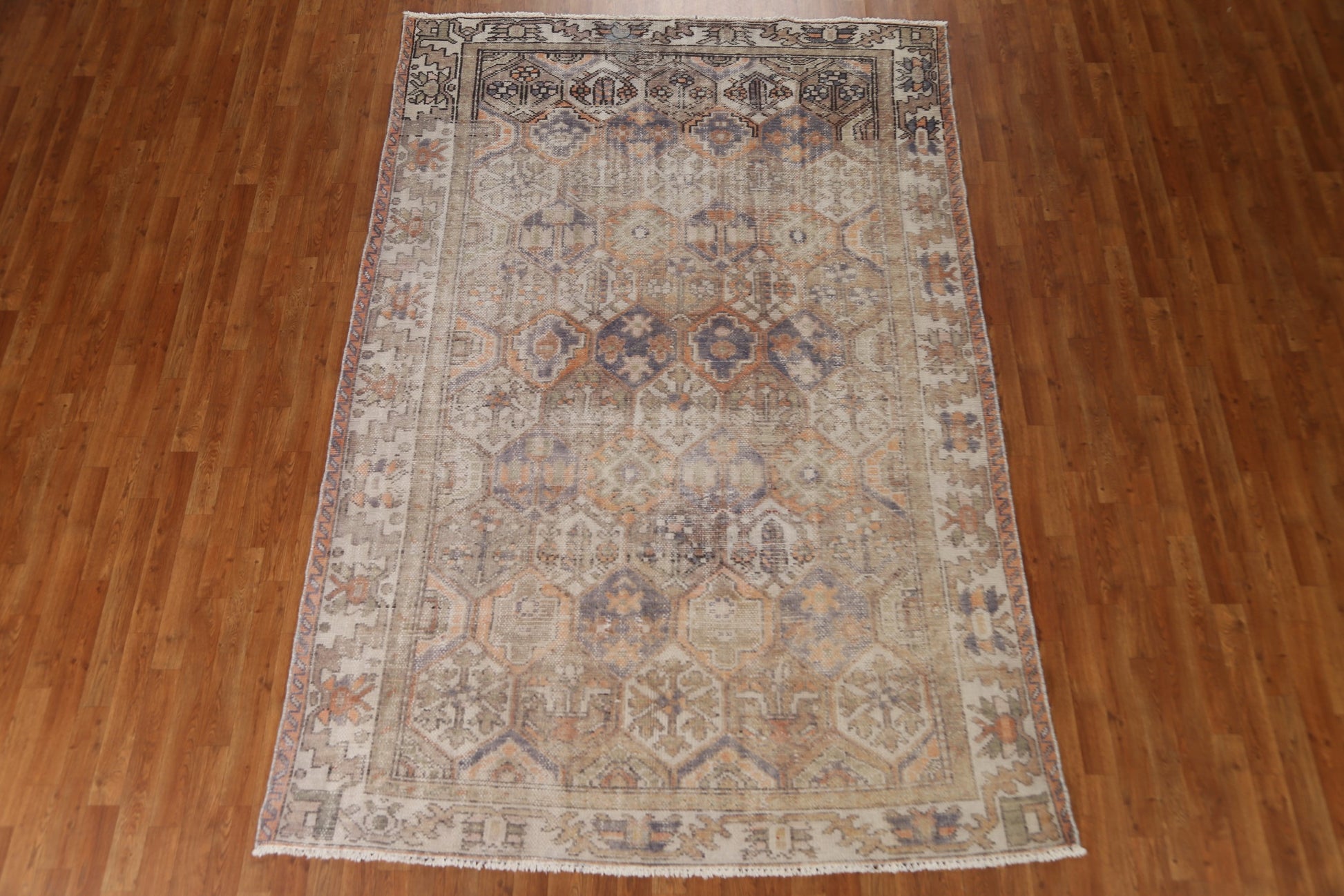 A Beautiful Genuine Persia ( Persia ) Bakhtiari rug is Hand Knotted by skillful weavers in Persia ( Persia ) with 100% Wool Material. This rug is in Good (Evenly Low Pile-Abrash-Repair) condition. dimensions are 9' 8'' X 6' 4'' in foot and 295 X 193 in centimeter. the primary color is Oranges & Rust.
