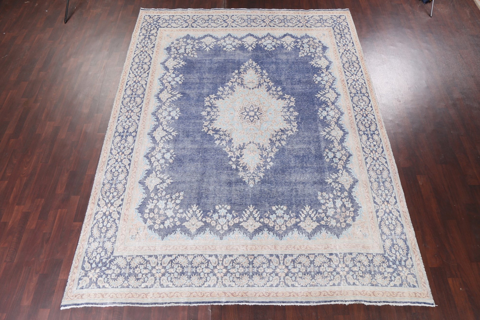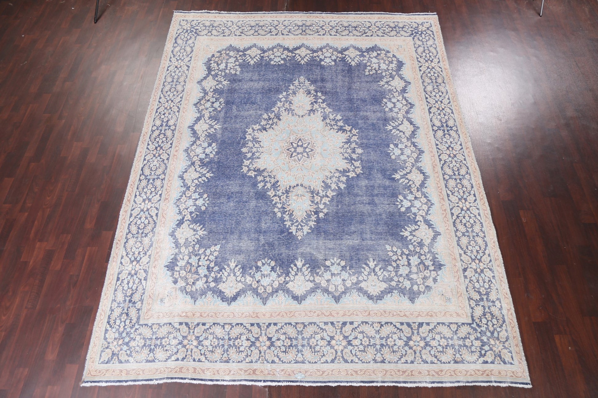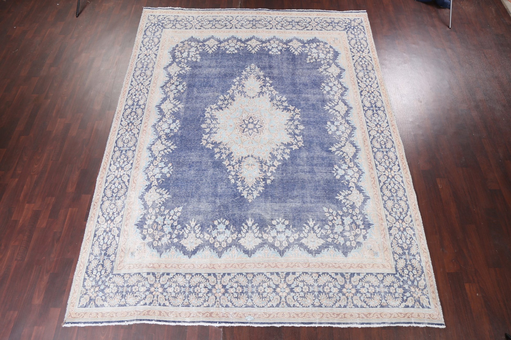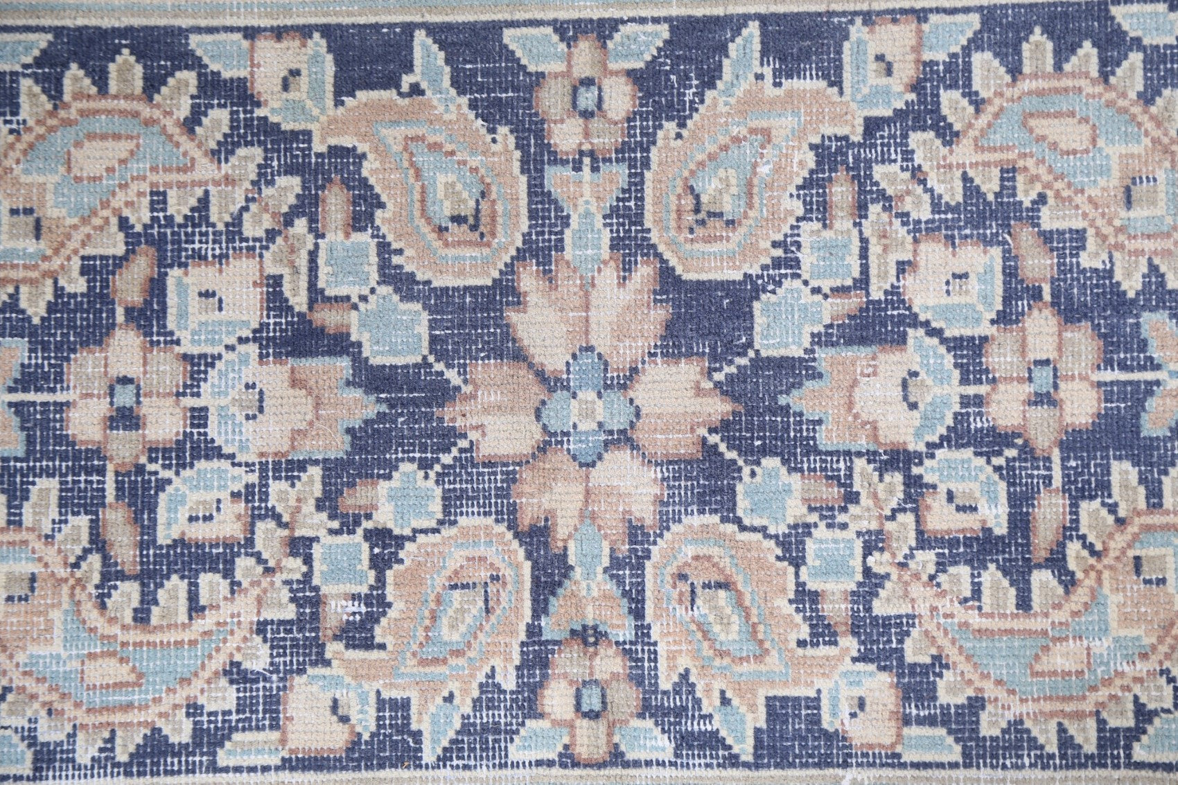 A Beautiful Genuine Persia ( Persia ) Kerman rug is Hand Knotted by skillful weavers in Persia ( Persia ) with 100% Wool Material. This rug is in Very Good (Evenly Low Pile) condition. dimensions are 12' 8'' X 9' 9'' in foot and 386 X 297 in centimeter. the primary color is Navy Blue & Blues.