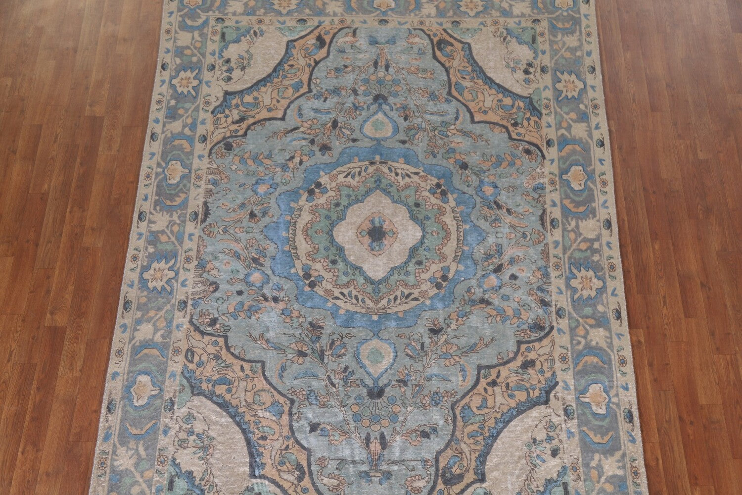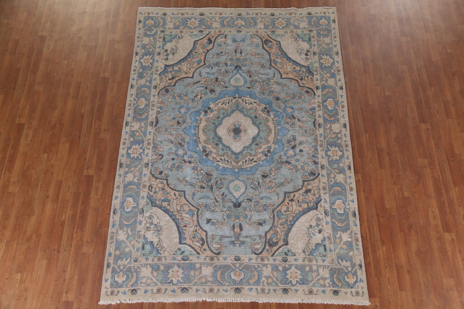 Distressed Blue Tabriz Persian Area Rug 6x9