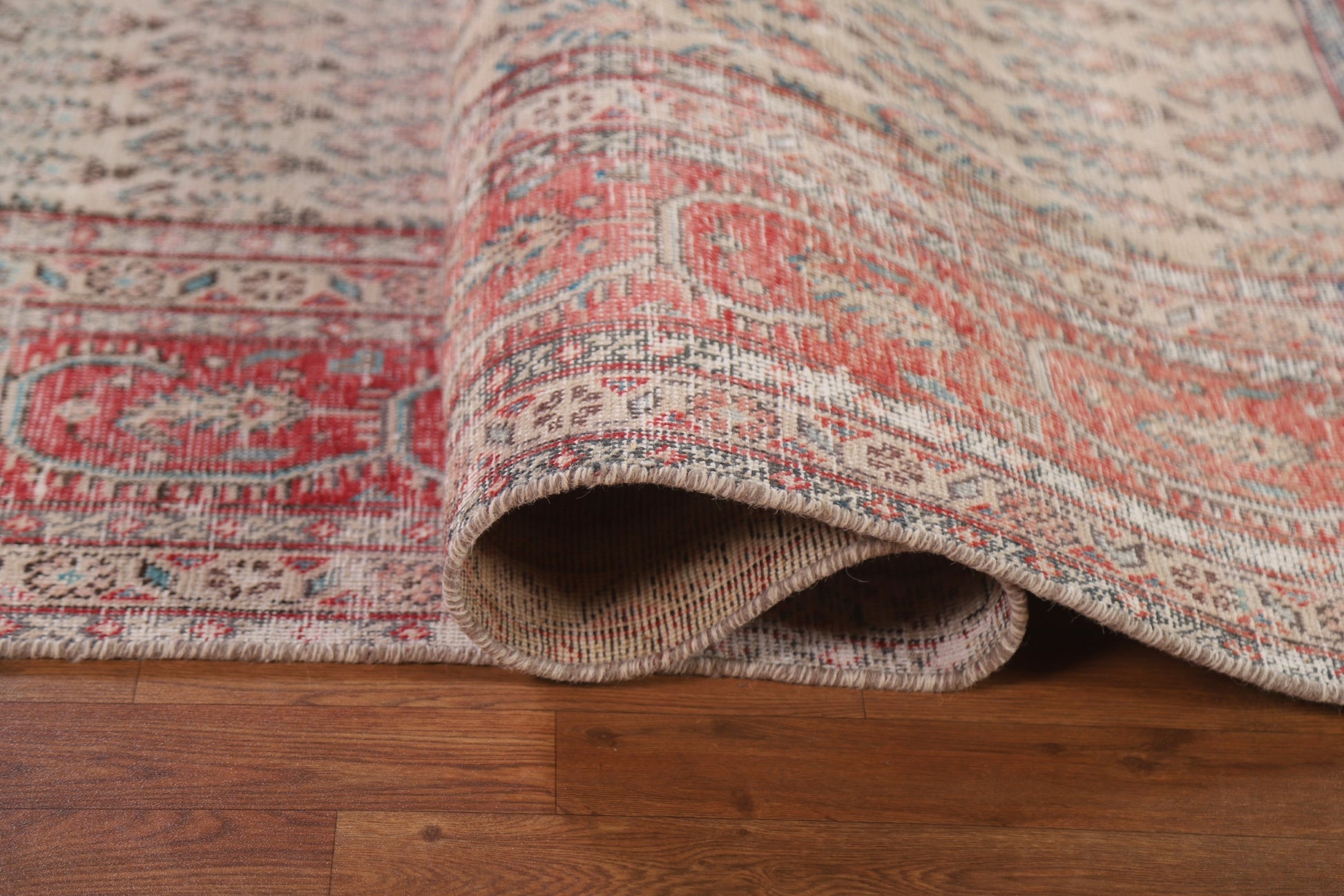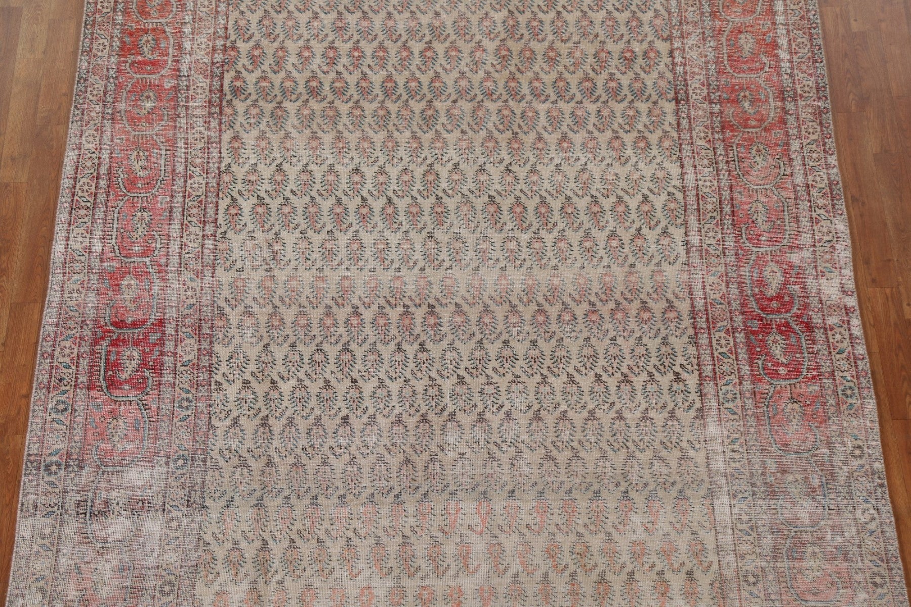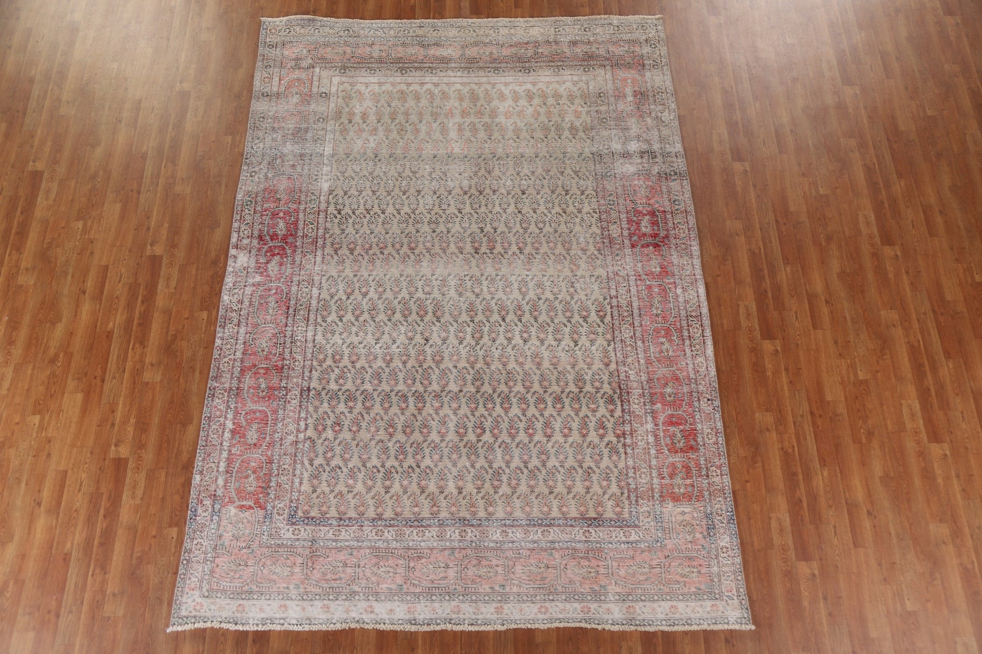 A Beautiful Genuine Persia ( Persia ) Botemir rug is Hand Knotted by skillful weavers in Persia ( Persia ) with 100% Wool Material. This rug is in Very Good (Evenly Low Pile) condition. dimensions are 10' 6'' X 7' 5'' in foot and 320 X 226 in centimeter. the primary color is Beige & Ivories.