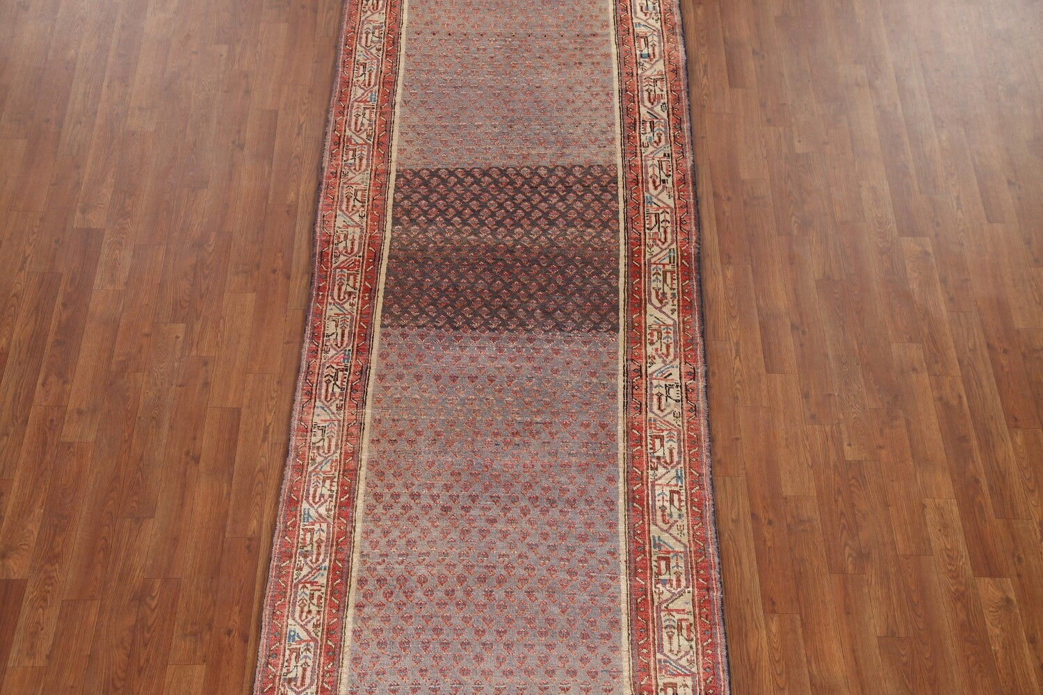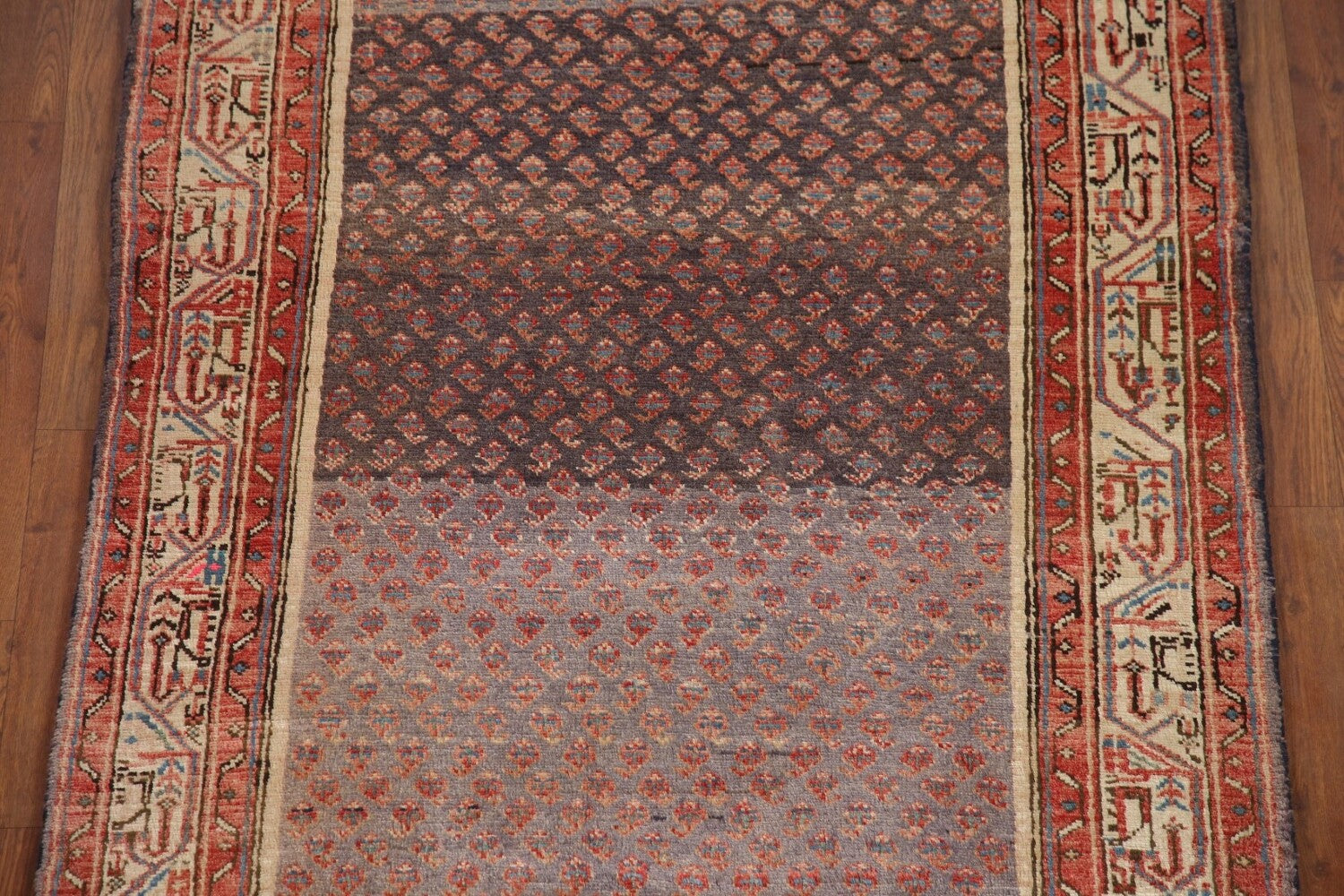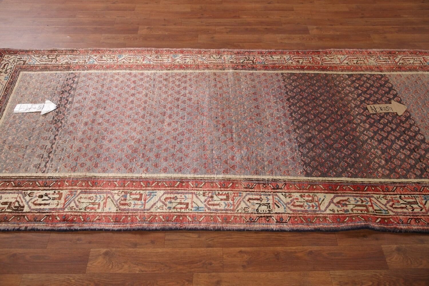A Beautiful Genuine Persia ( Persia ) Botemir rug is Hand Knotted by skillful weavers in Persia ( Persia ) with 100% Wool Material. This rug is in Very Good (Abrash) condition. dimensions are 9' 11'' X 3' 5'' in foot and 302 X 104 in centimeter. the primary color is Greys & Charcoal.