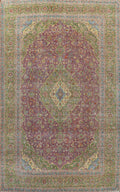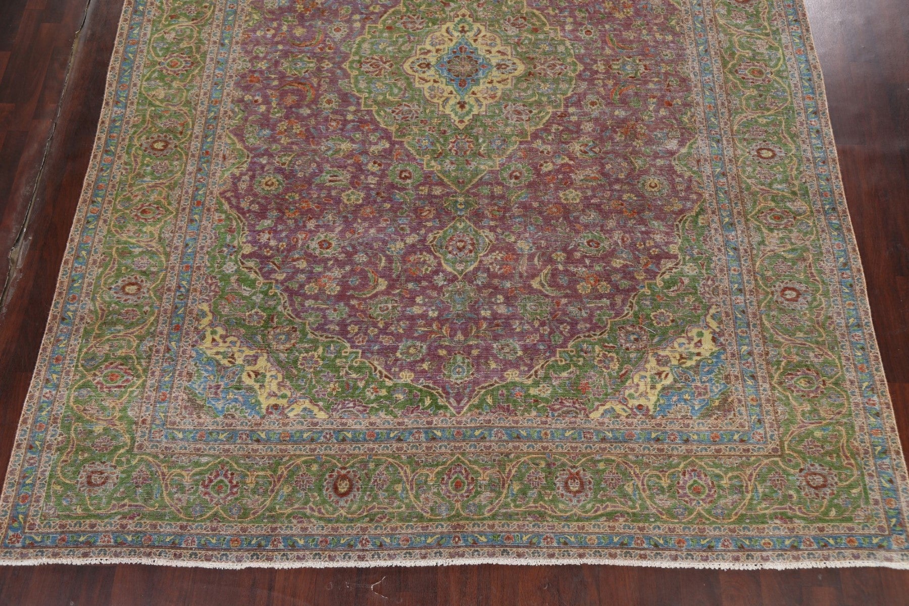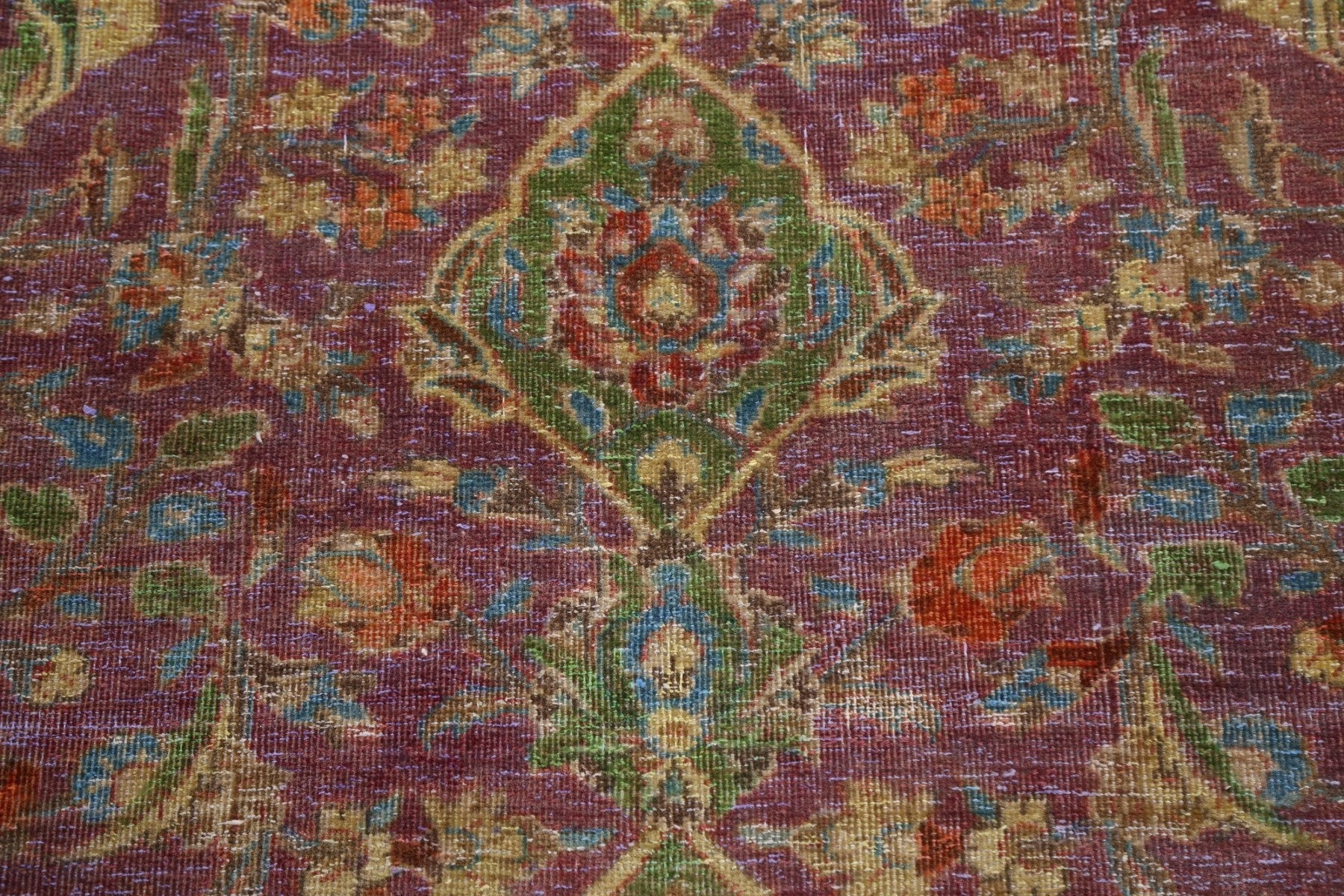 A Beautiful Genuine Persia ( Persia ) Kashan rug is Hand Knotted by skillful weavers in Persia ( Persia ) with 100% Wool Material. This rug is in Very Good (Evenly Low Pile) condition. dimensions are 12' 11'' X 9' 7'' in foot and 394 X 292 in centimeter. the primary color is Purples.