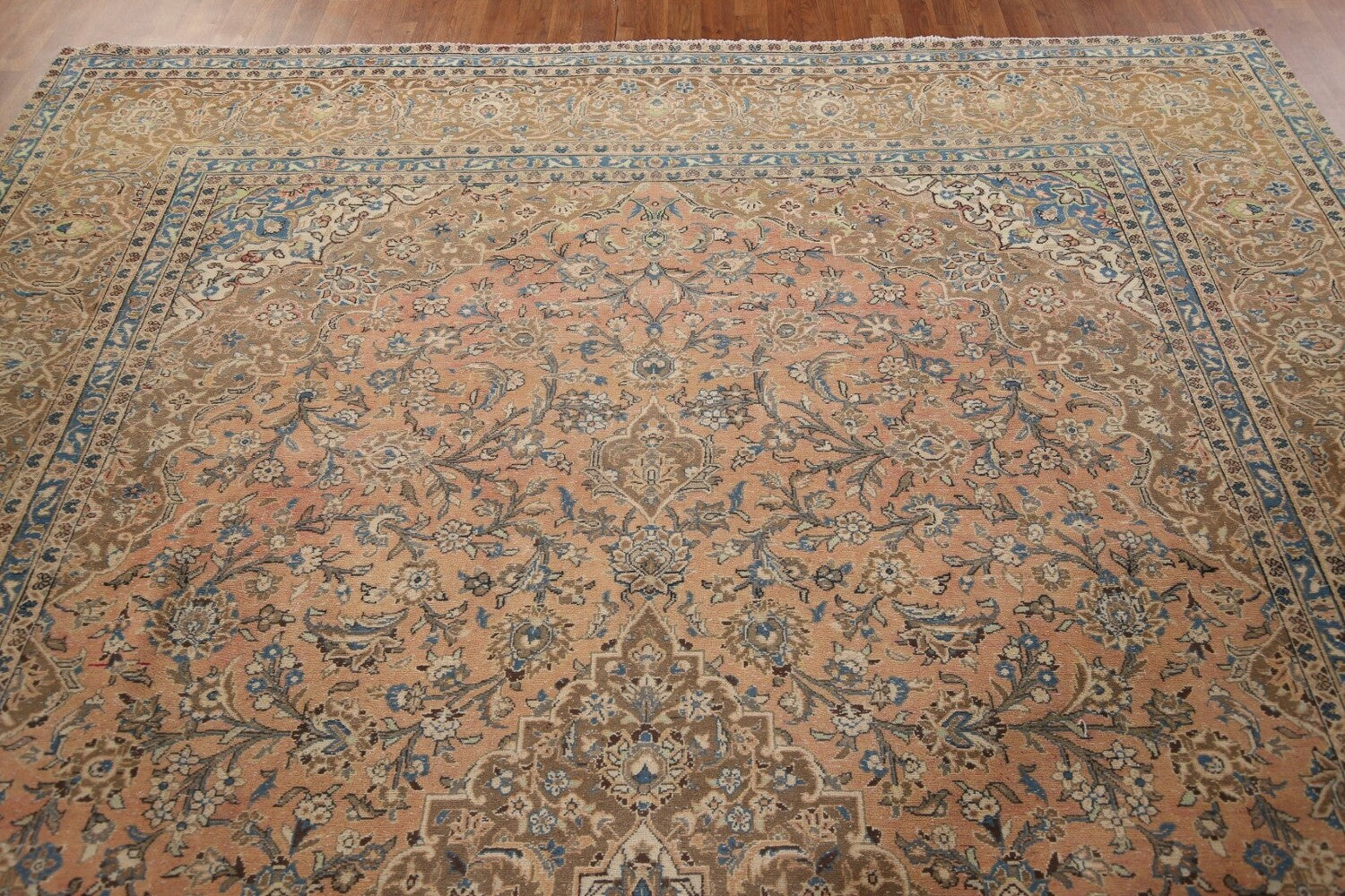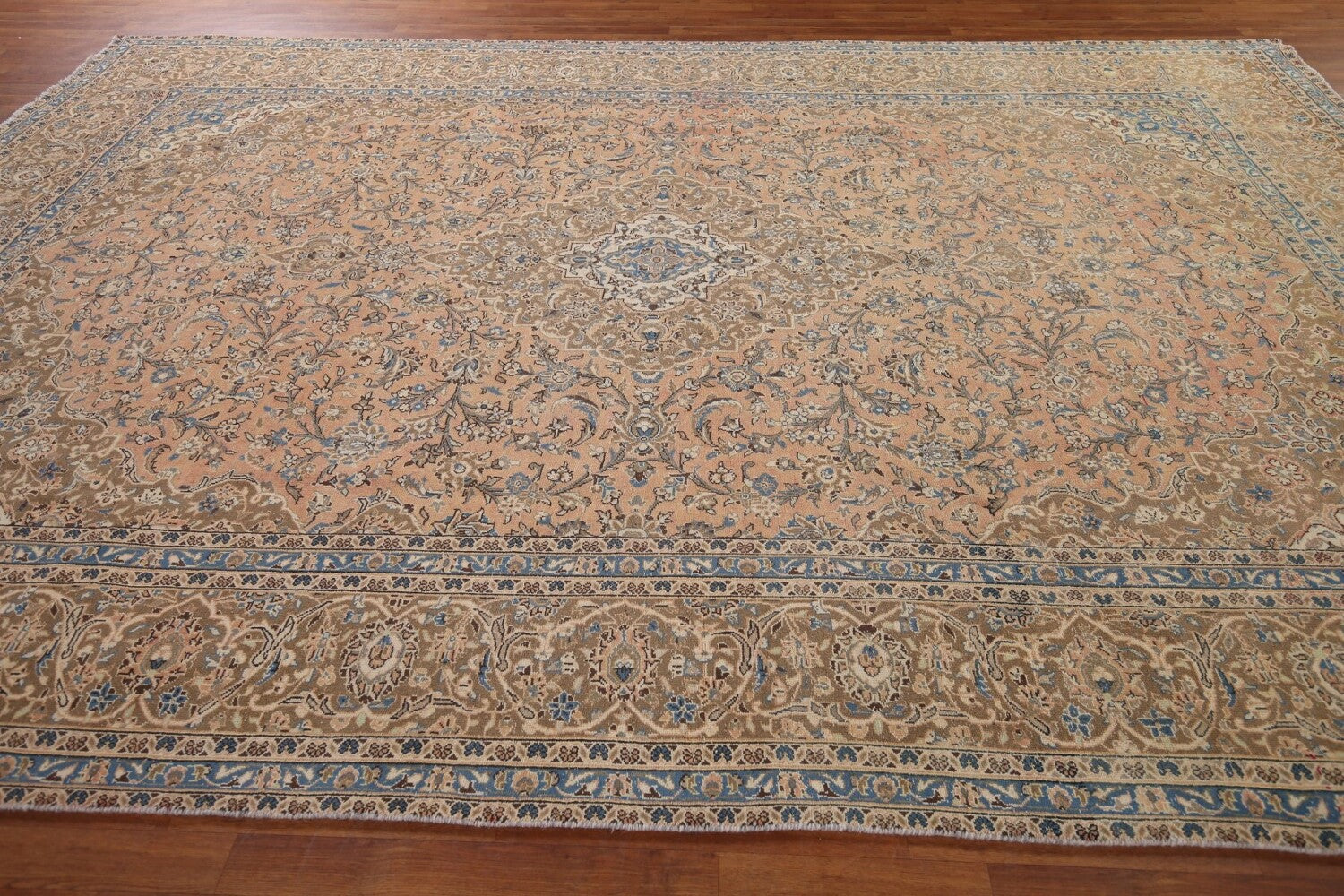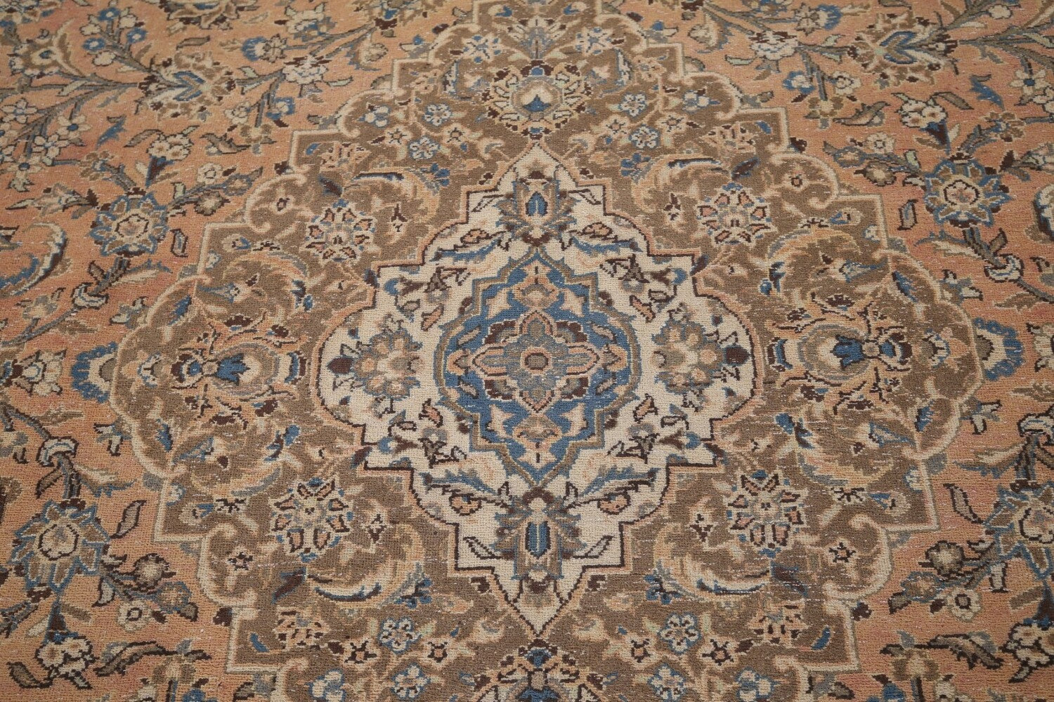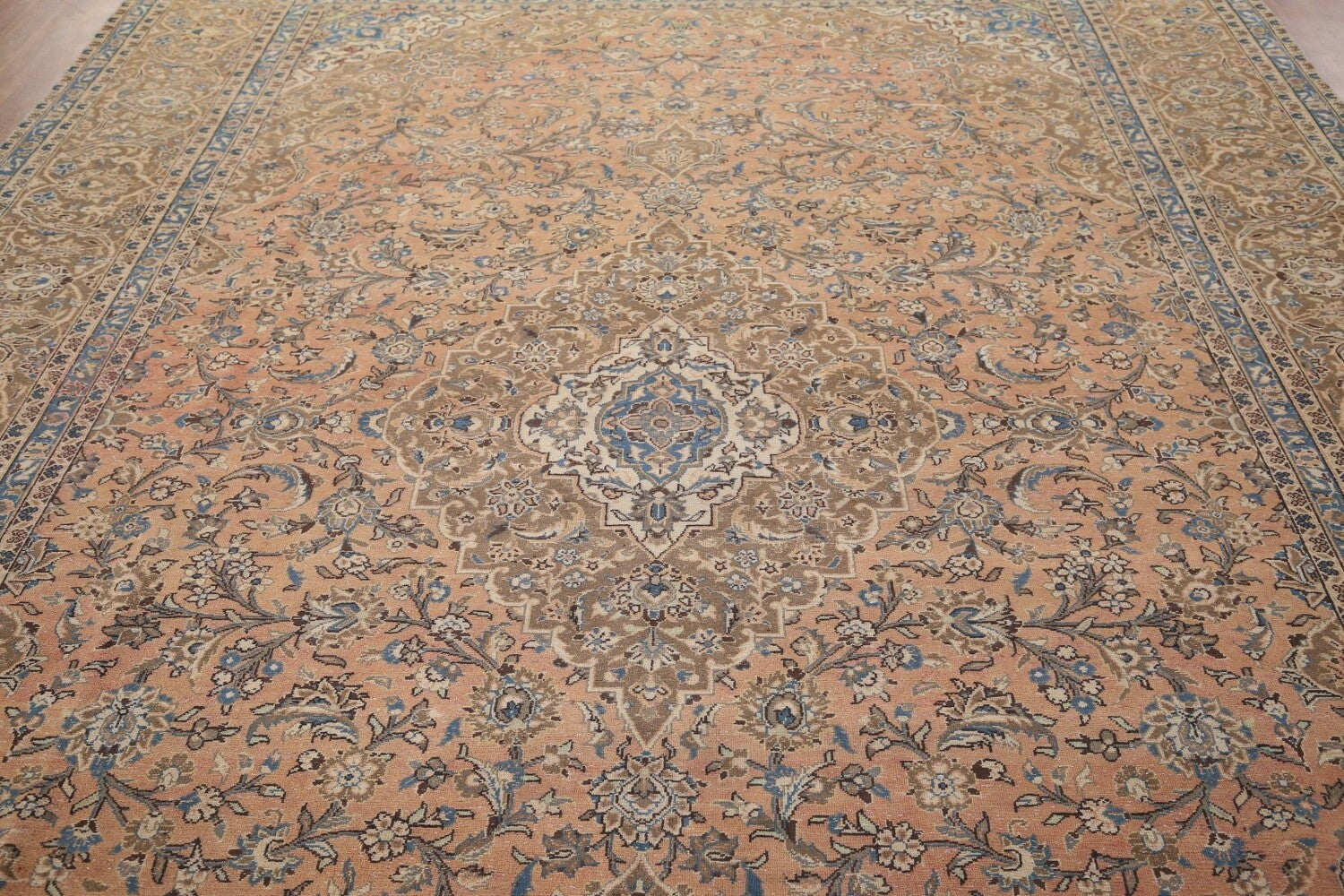 A Beautiful Genuine Persia ( Persia ) Kashan rug is Hand Knotted by skillful weavers in Persia ( Persia ) with 100% Wool Material. This rug is in Very Good (Evenly Low Pile) condition. dimensions are 13' 4'' X 9' 7'' in foot and 406 X 292 in centimeter. the primary color is Peach.