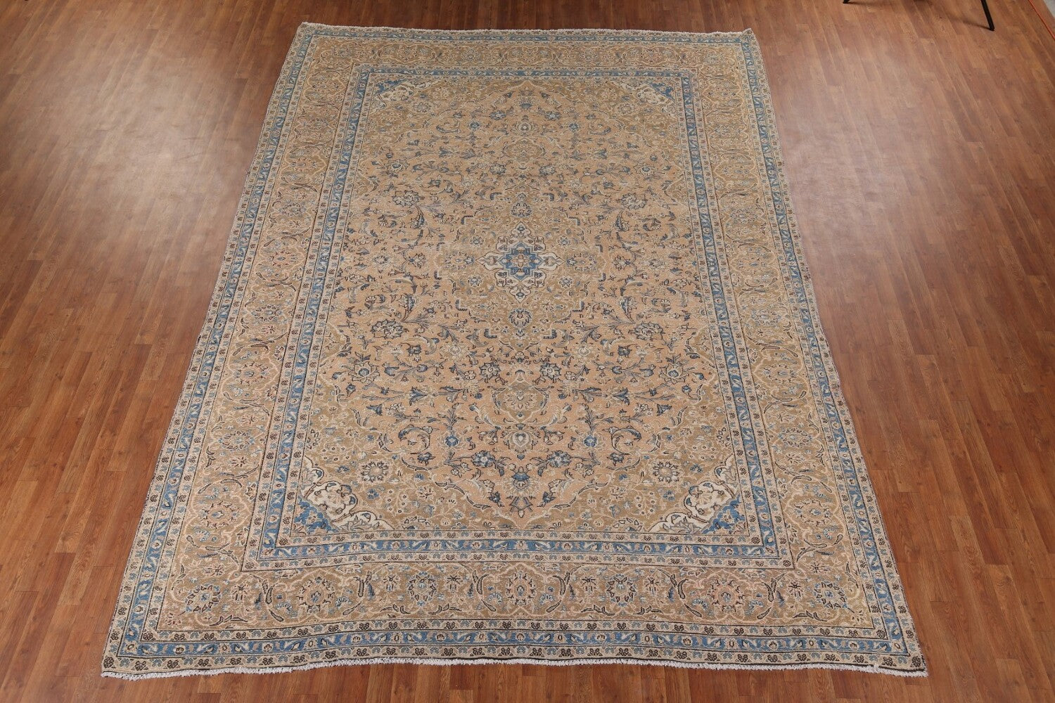 Distressed Floral Kashan Persian Area Rug 9x13