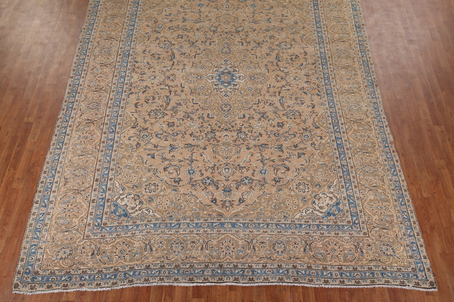 A Beautiful Genuine Persia ( Persia ) Kashan rug is Hand Knotted by skillful weavers in Persia ( Persia ) with 100% Wool Material. This rug is in Very Good (Evenly Low Pile) condition. dimensions are 12' 10'' X 9' 5'' in foot and 391 X 287 in centimeter. the primary color is Peach.