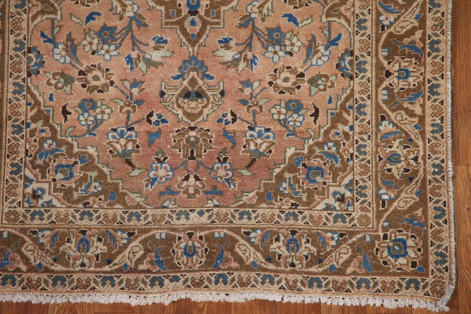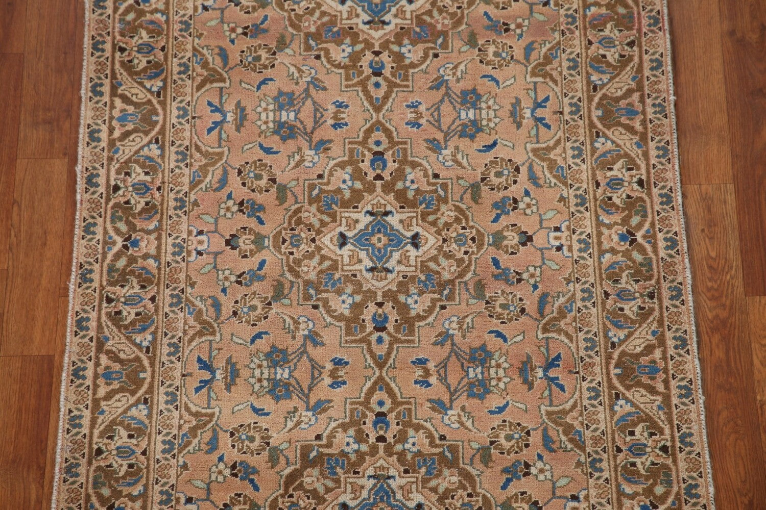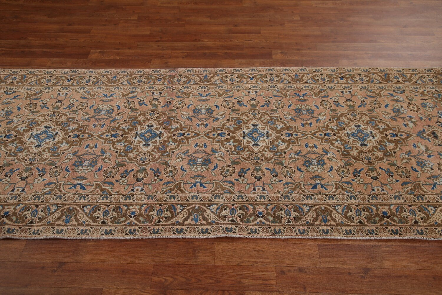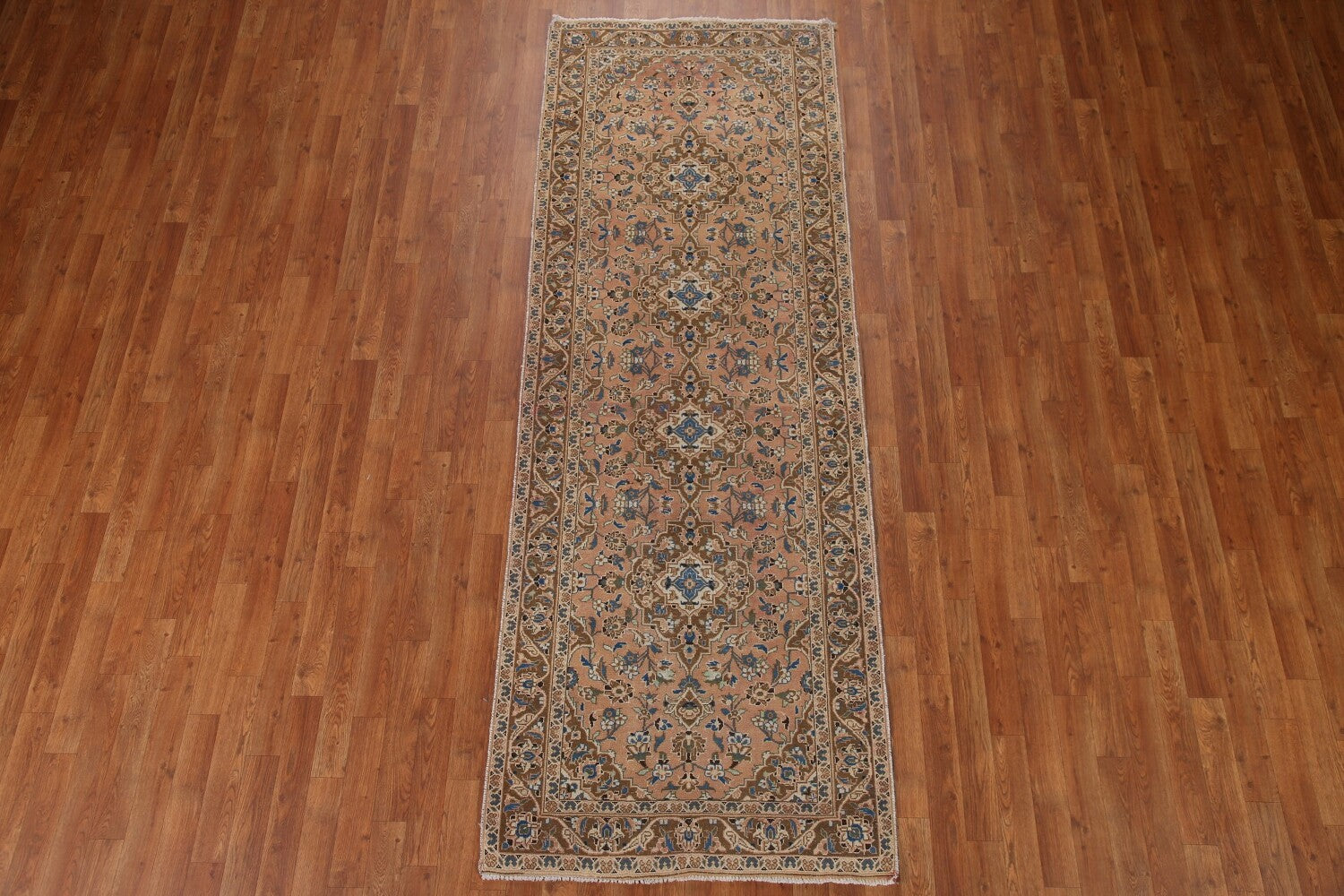 Distressed Floral Kashan Persian Runner Rug 3x9