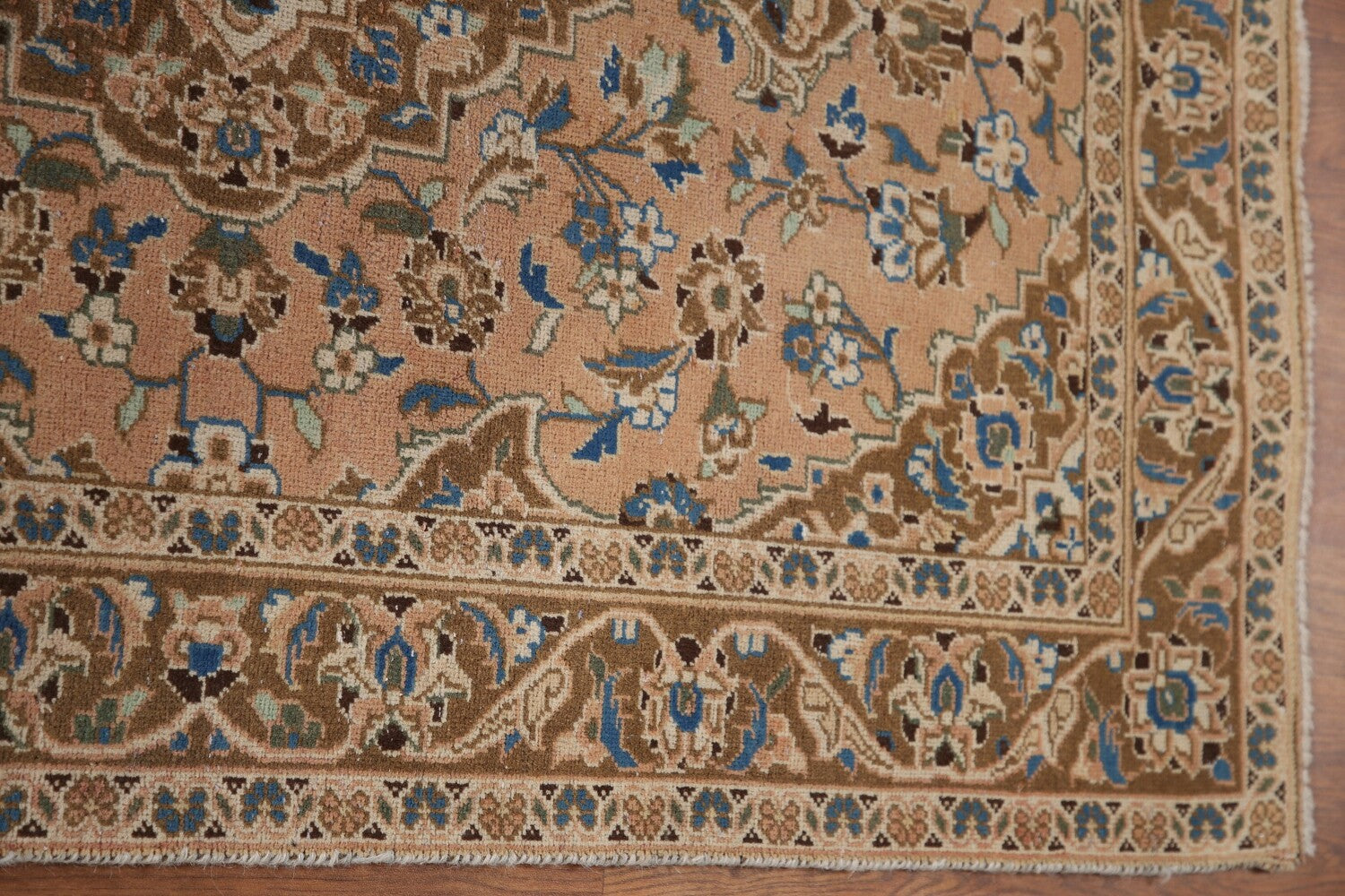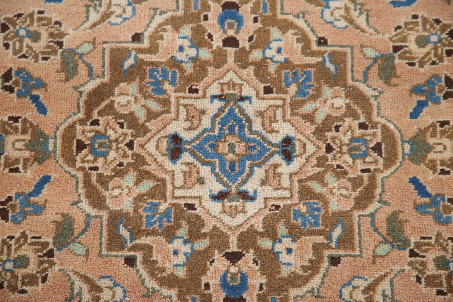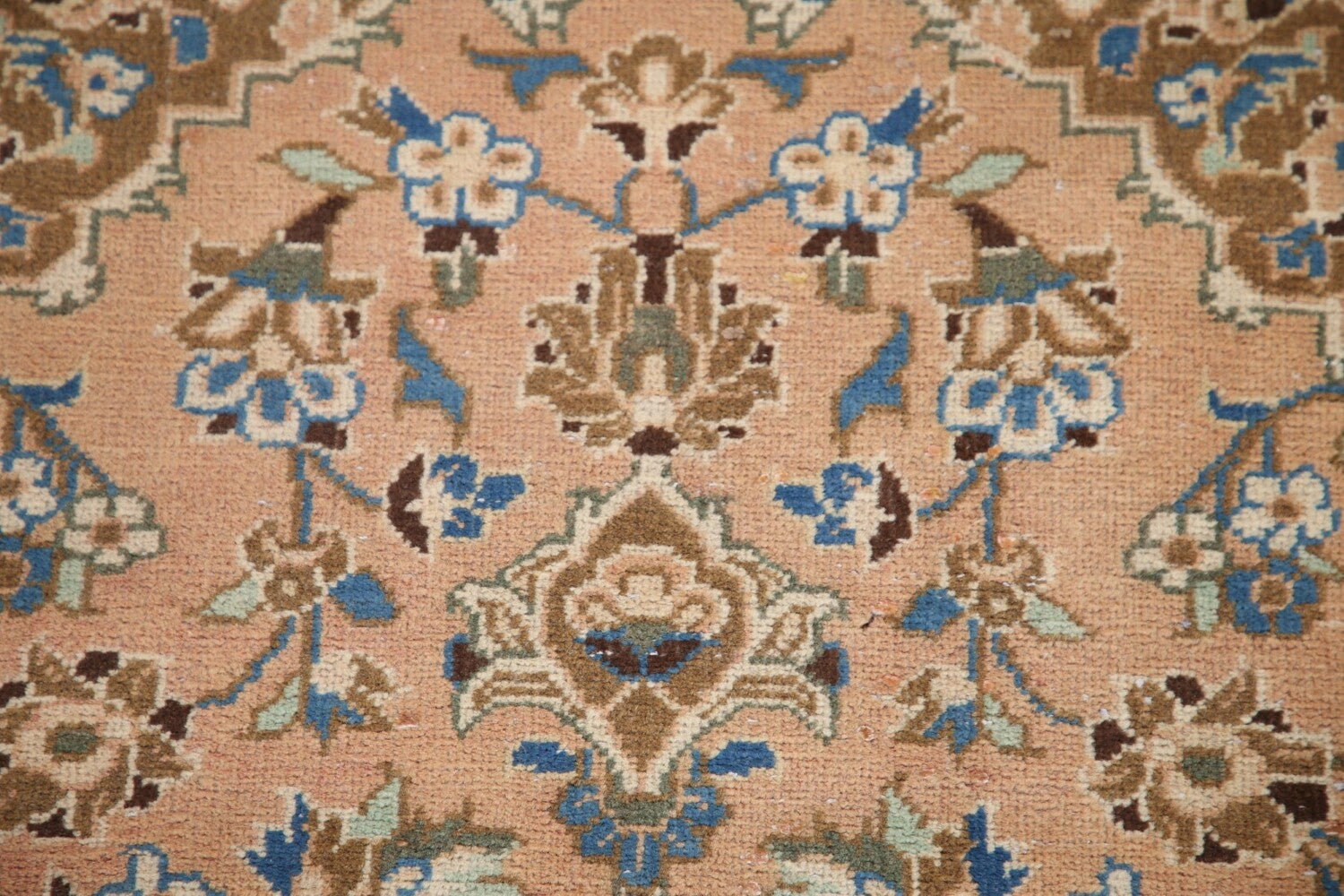 A Beautiful Genuine Persia ( Persia ) Kashan rug is Hand Knotted by skillful weavers in Persia ( Persia ) with 100% Wool Material. This rug is in Very Good condition. dimensions are 9' 3'' X 3' 3'' in foot and 282 X 99 in centimeter. the primary color is Peach.