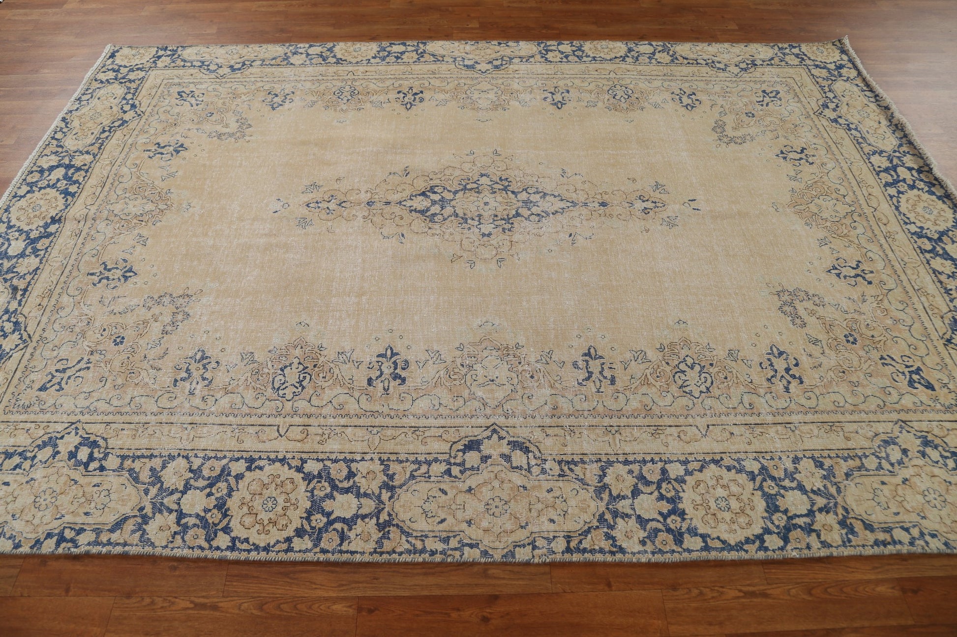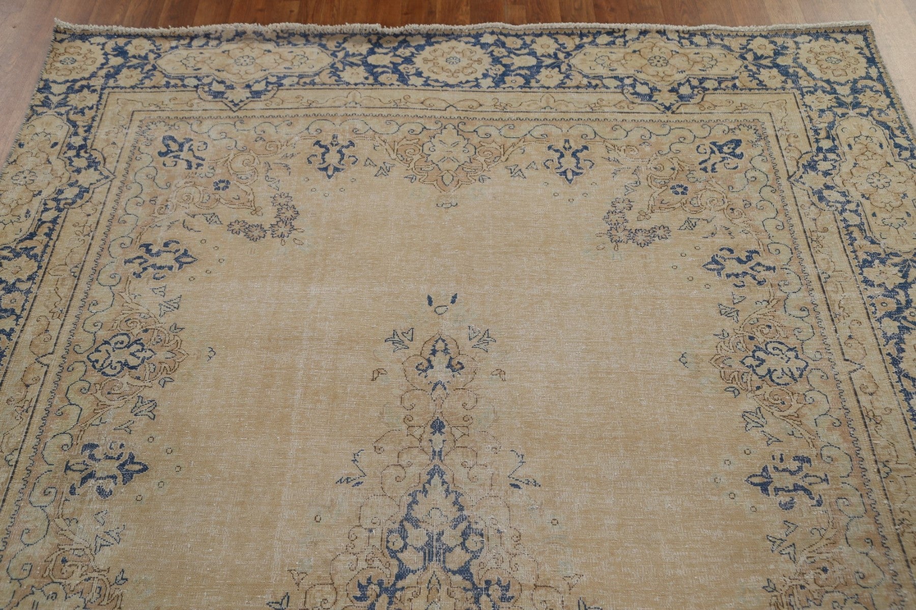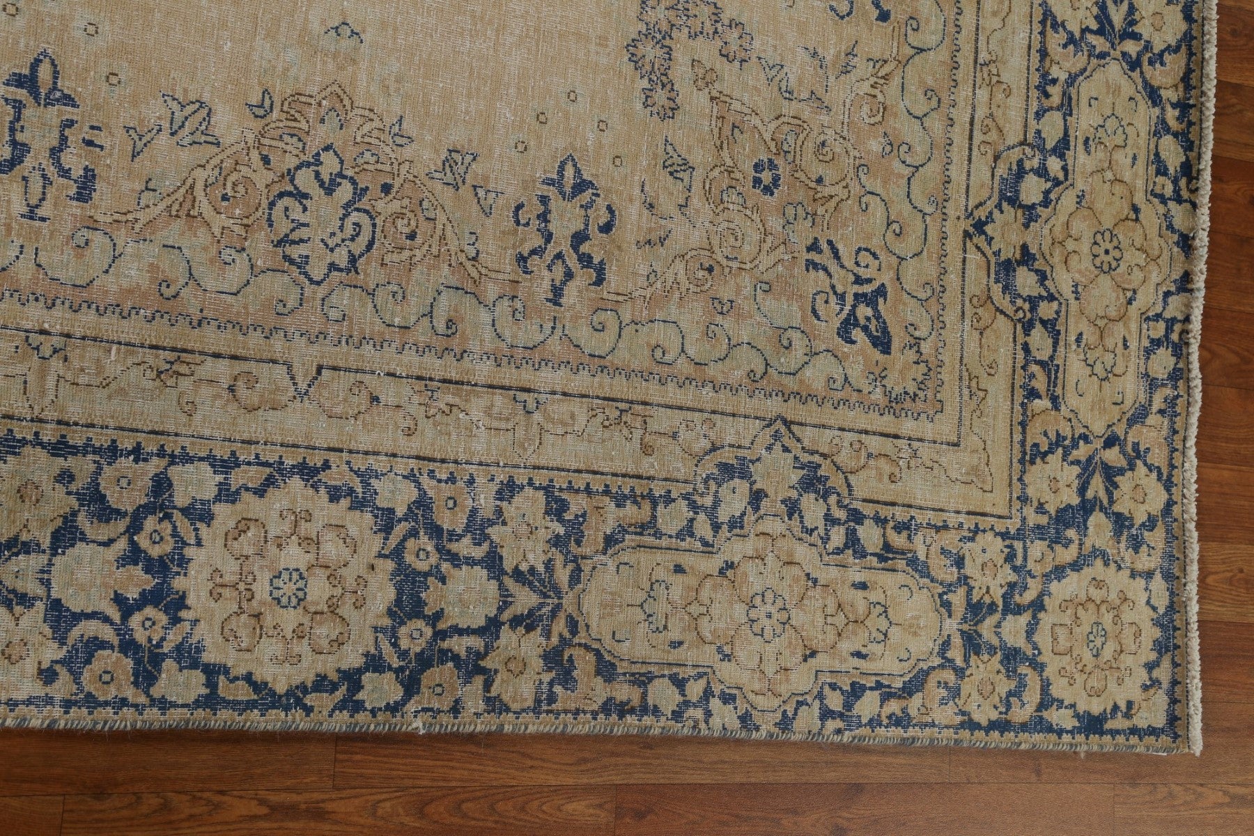 A Beautiful Genuine Persia ( Persia ) Kerman rug is Hand Knotted by skillful weavers in Persia ( Persia ) with 100% Wool Material. This rug is in Very Good (Evenly Low Pile) condition. dimensions are 9' 1'' X 6' 2'' in foot and 277 X 188 in centimeter. the primary color is Beige & Ivories.