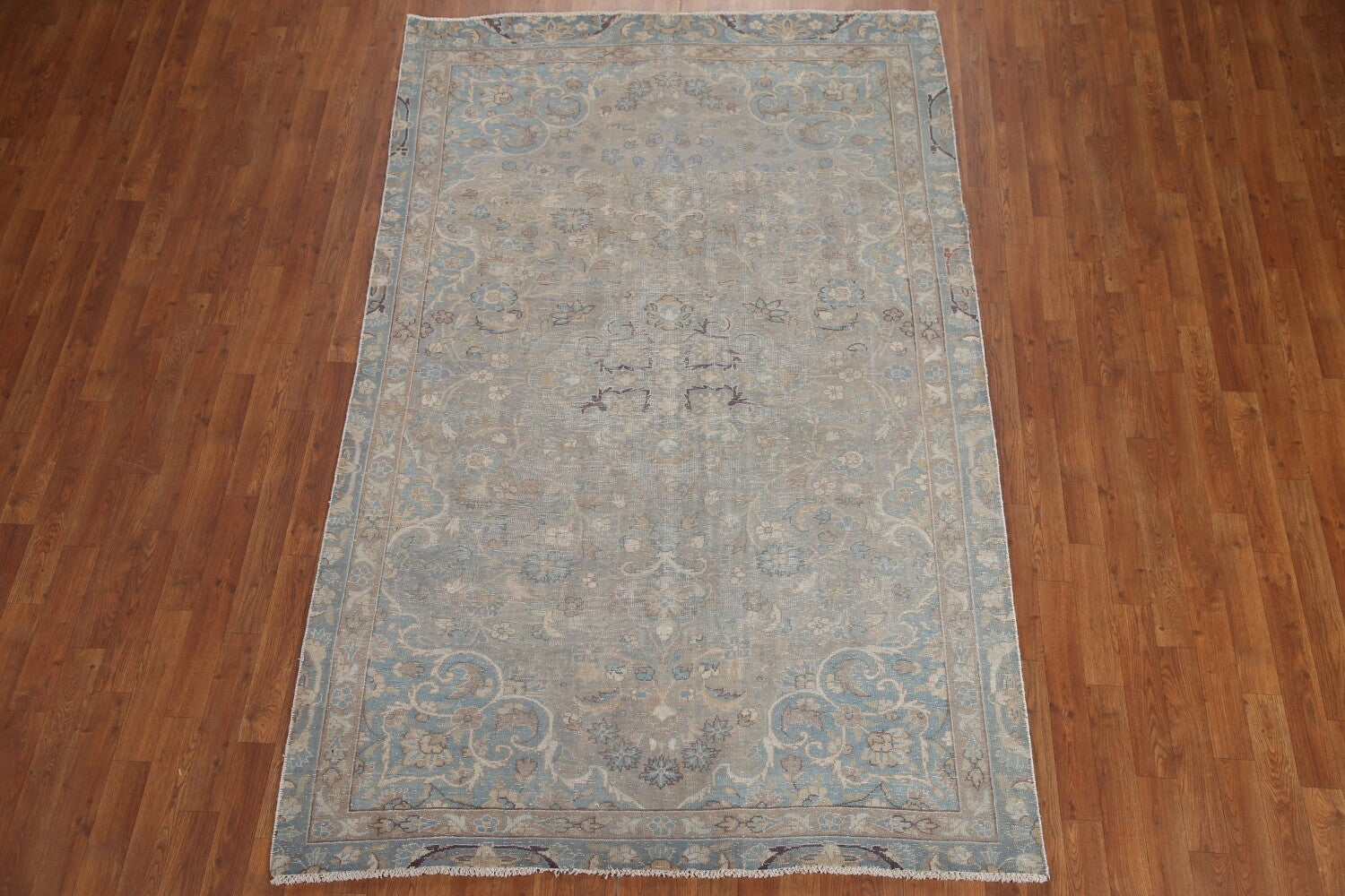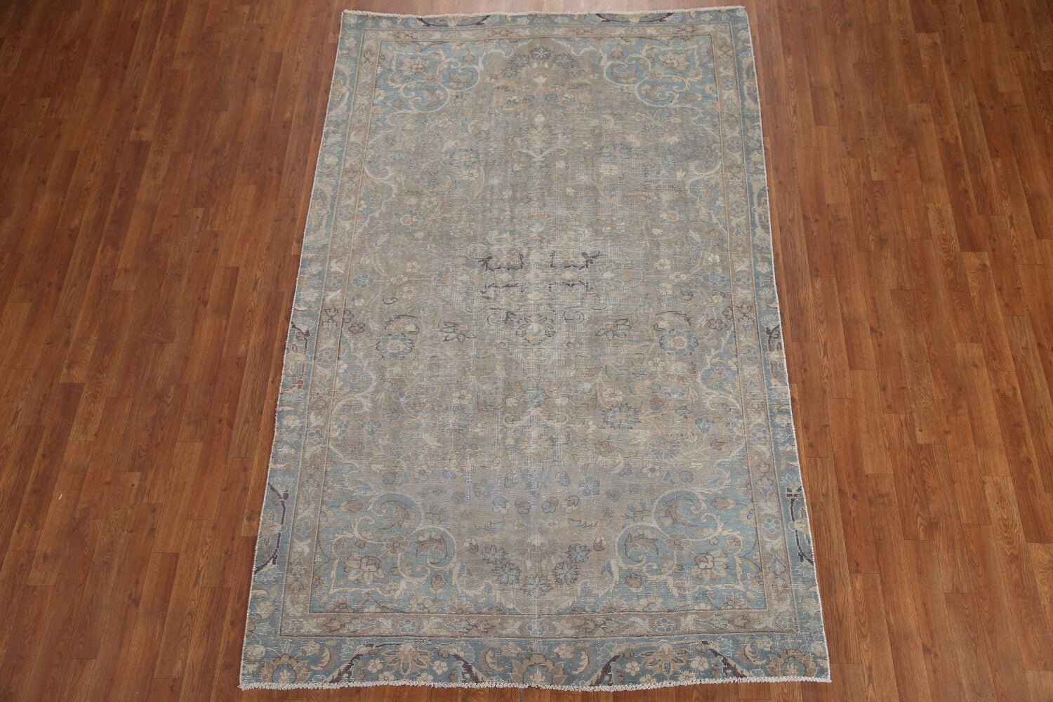 Distressed Floral Tabriz Persian Area Rug 5x8