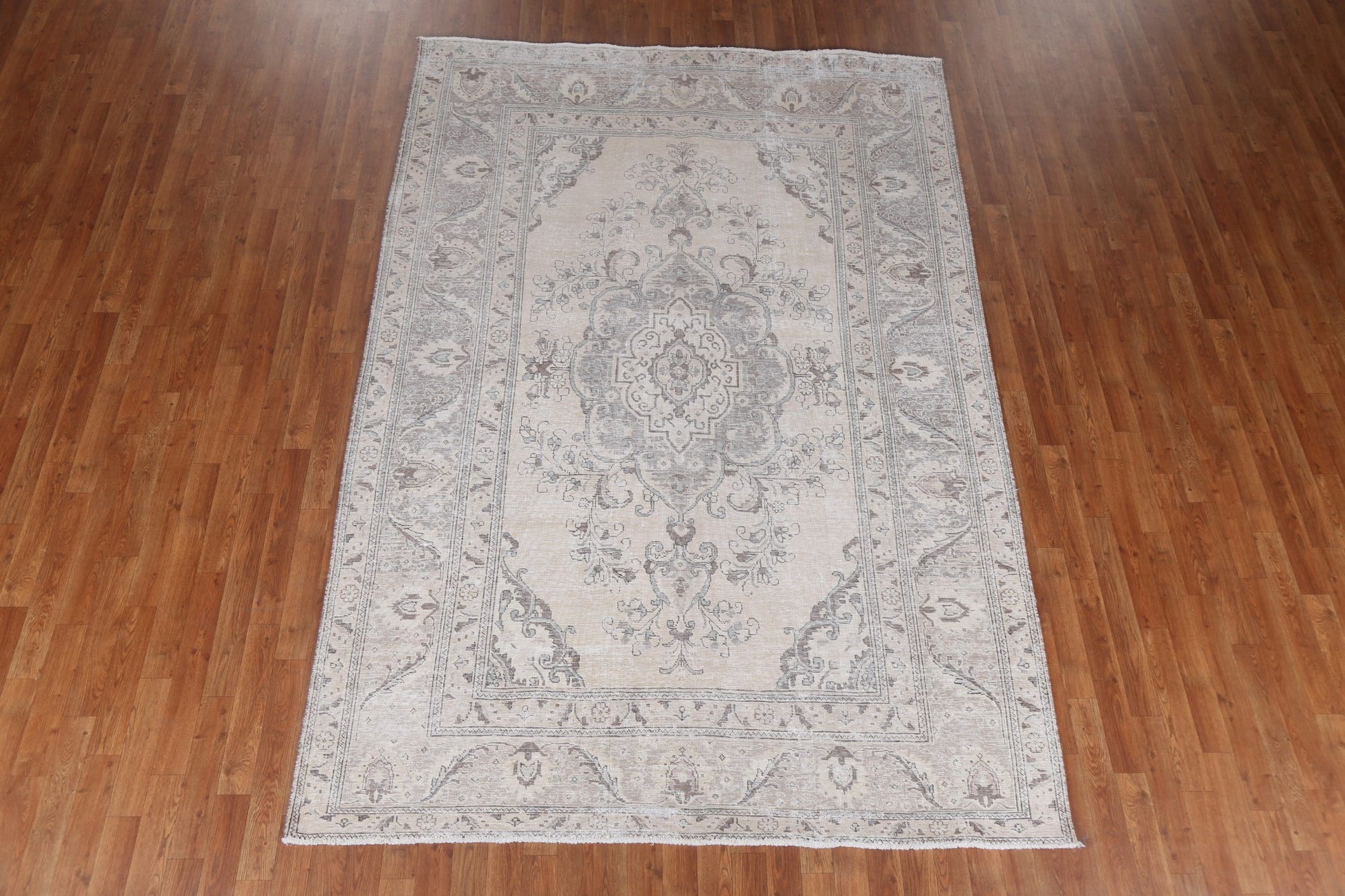 Distressed Floral Tabriz Persian Area Rug 6x10