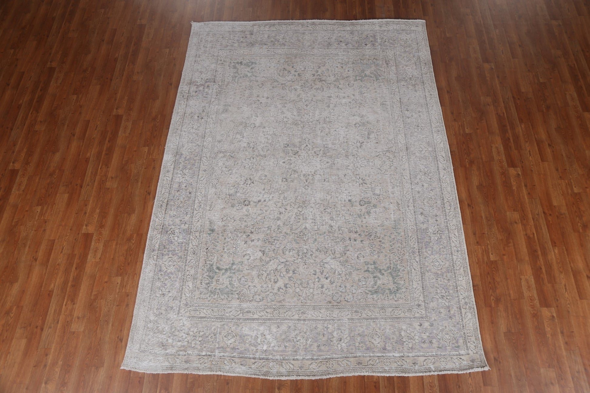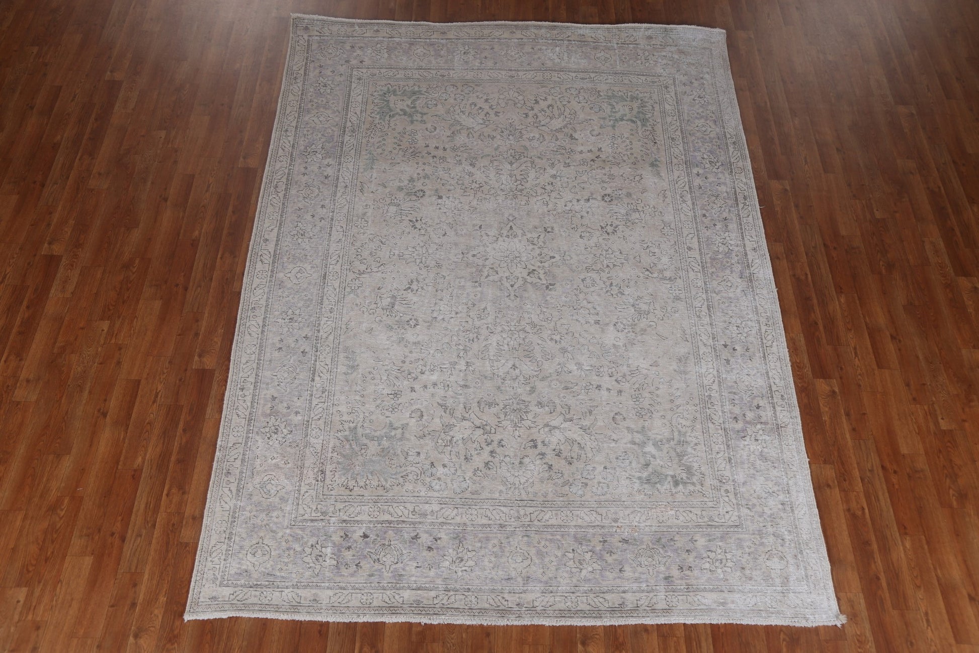 Distressed Floral Tabriz Persian Area Rug 7x10