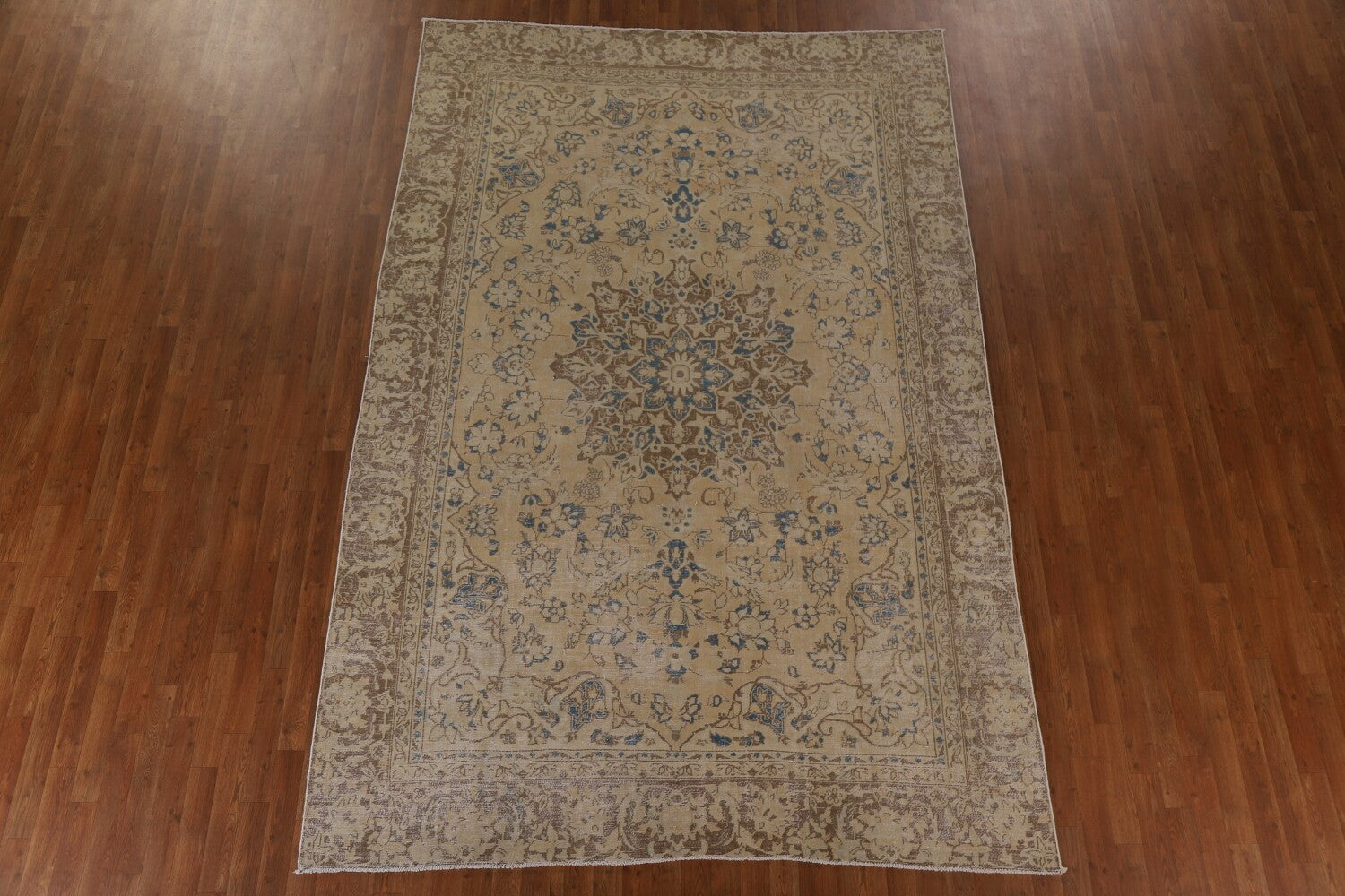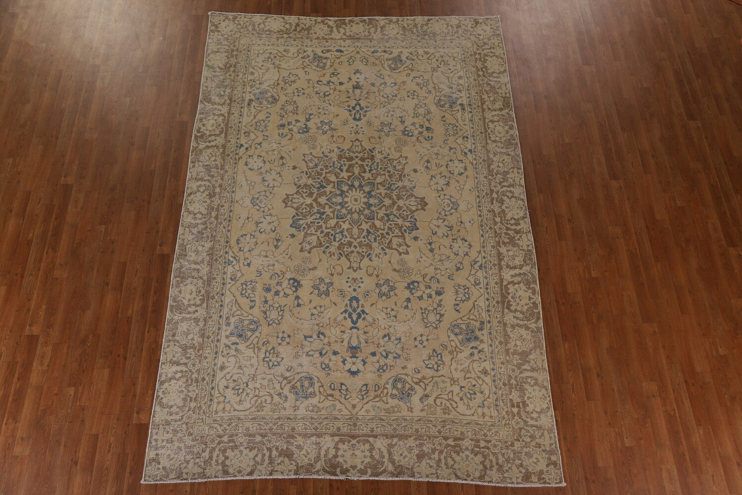 Distressed Floral Tabriz Persian Area Rug 7x11