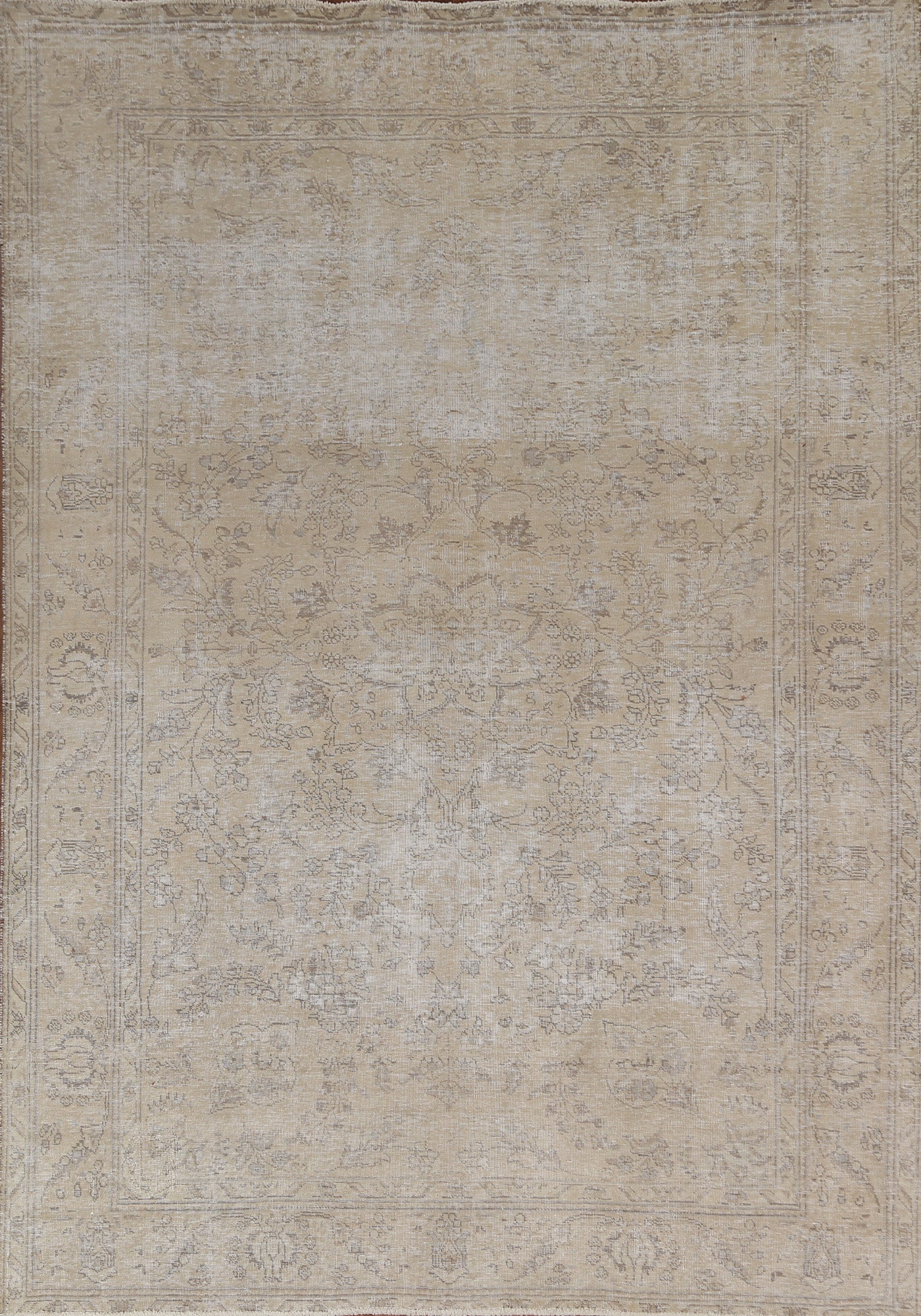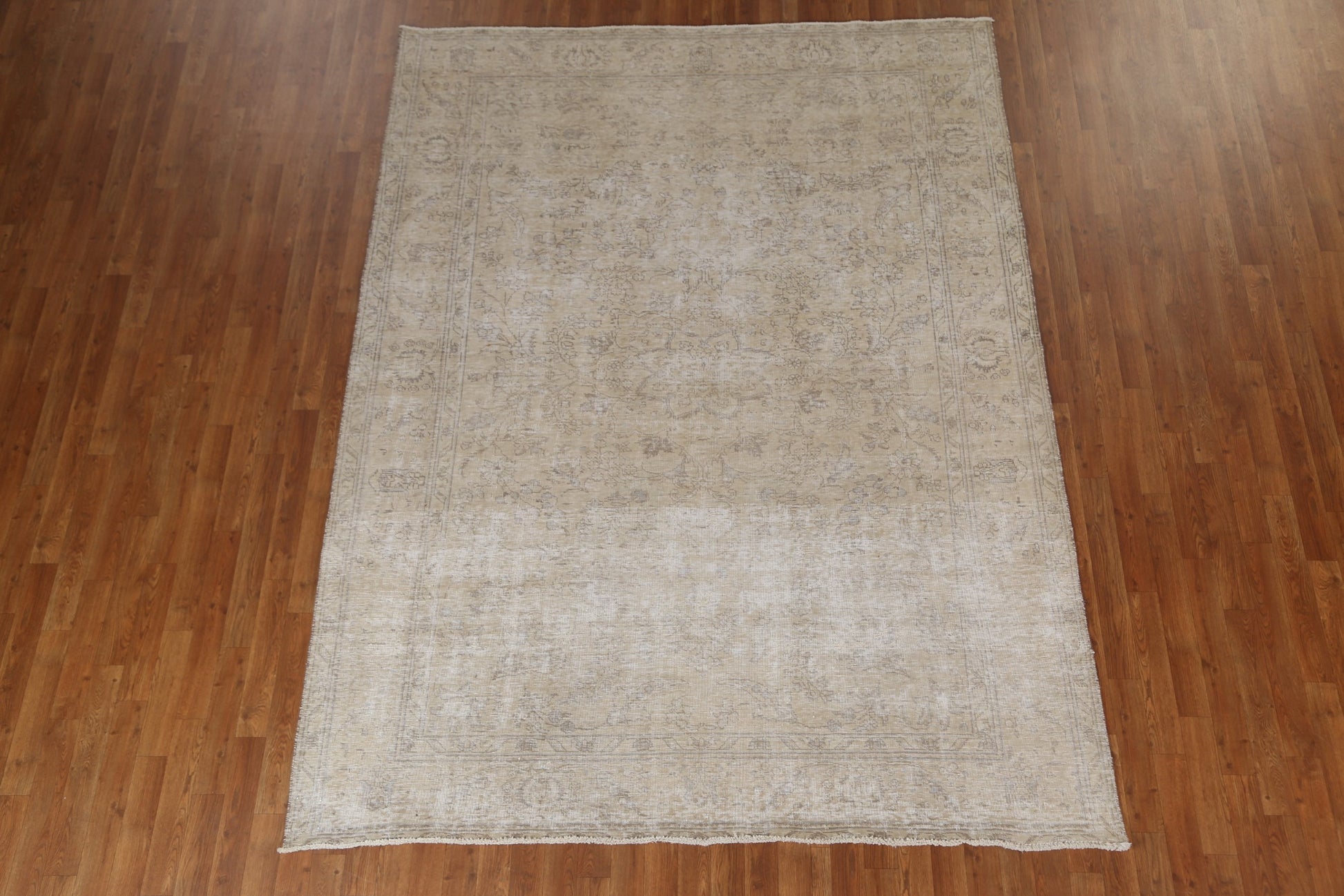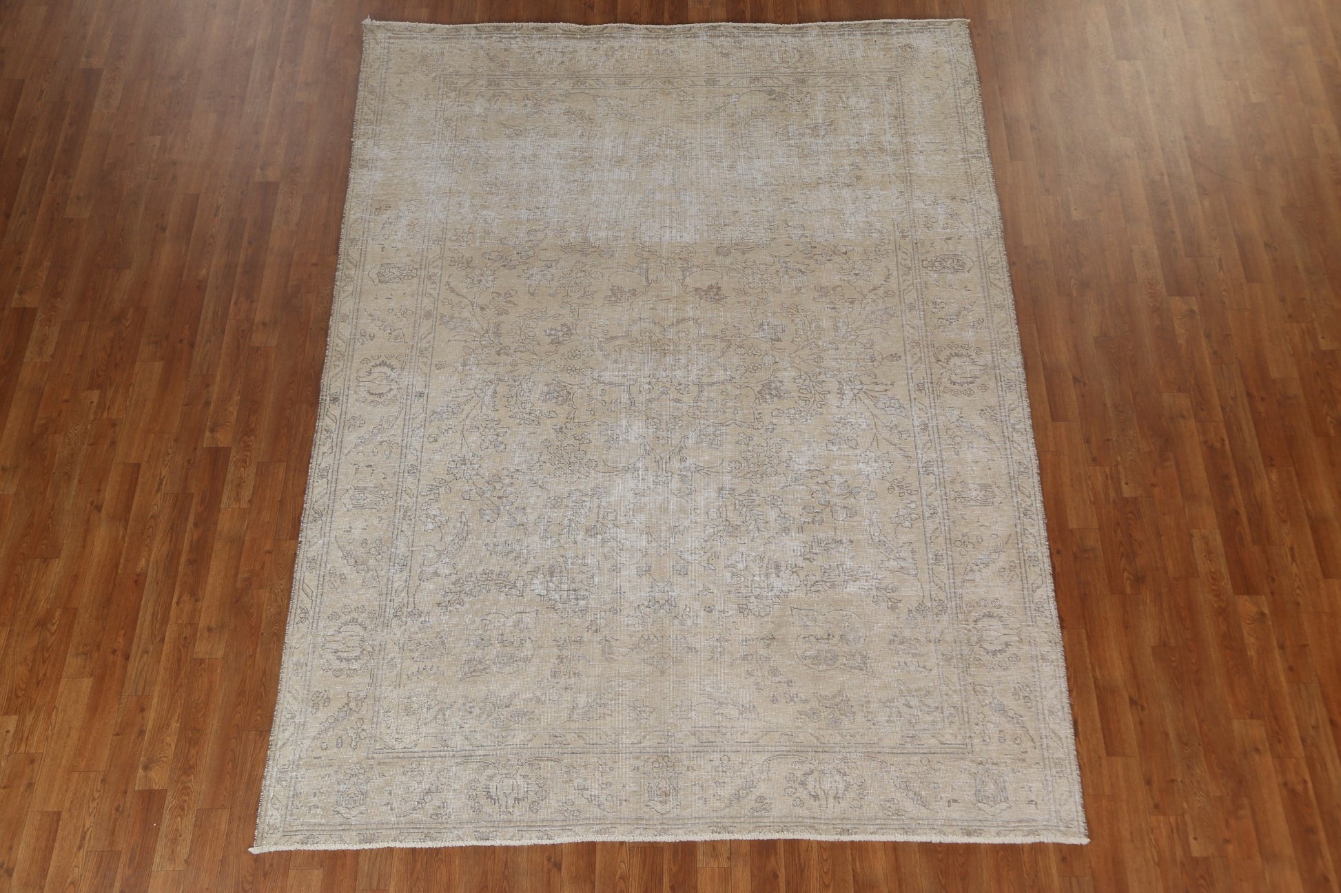 Distressed Floral Tabriz Persian Area Rug 7x9