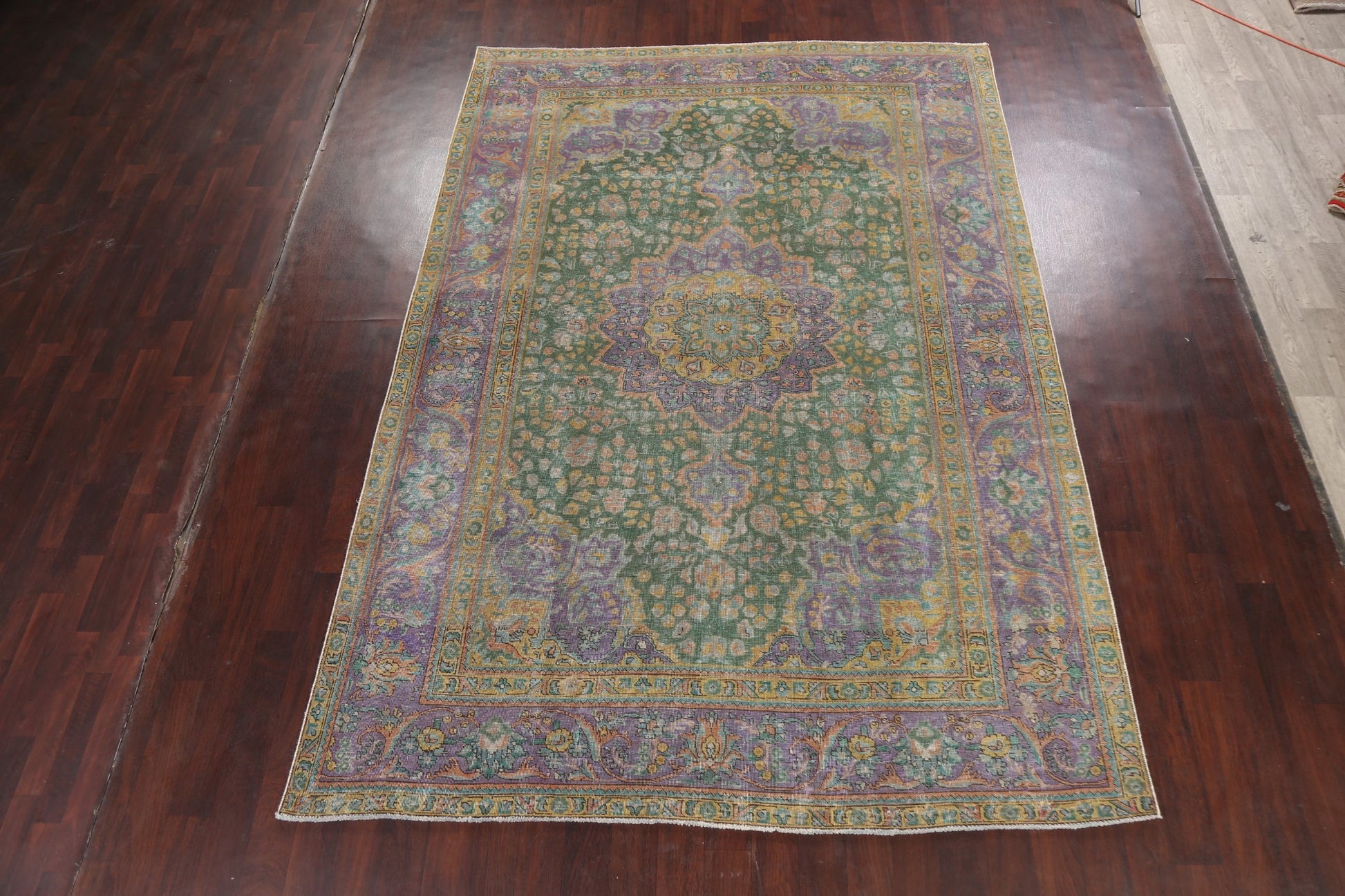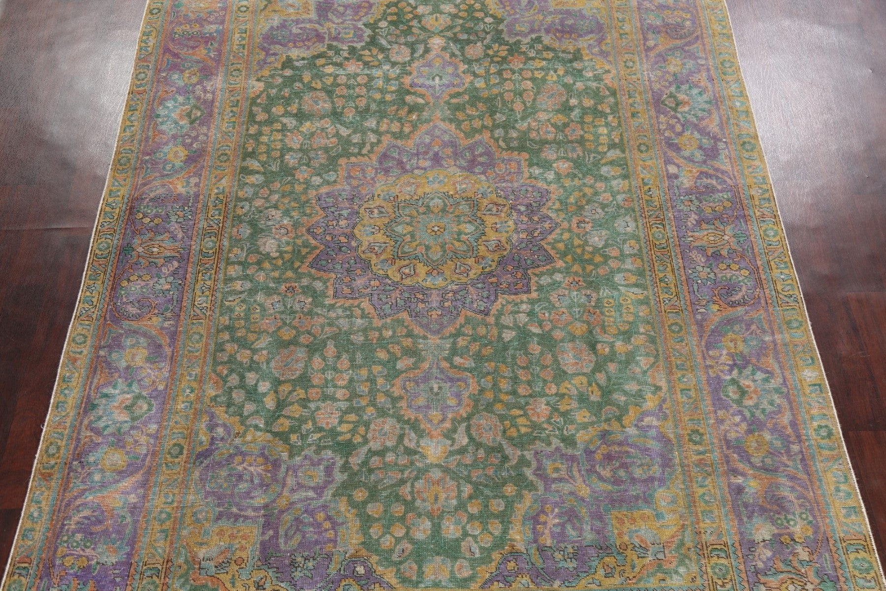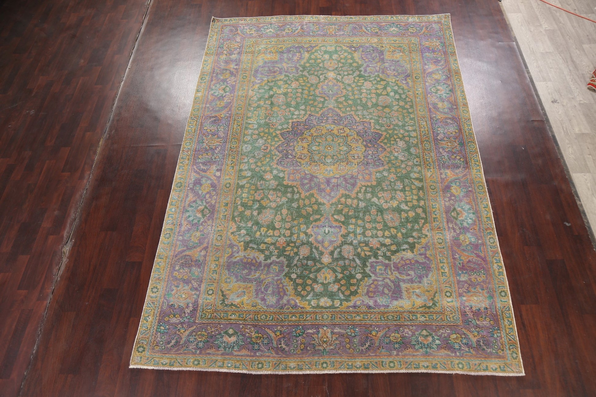 Distressed Floral Tabriz Persian Area Rug 8x11