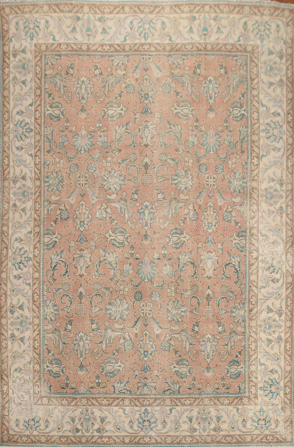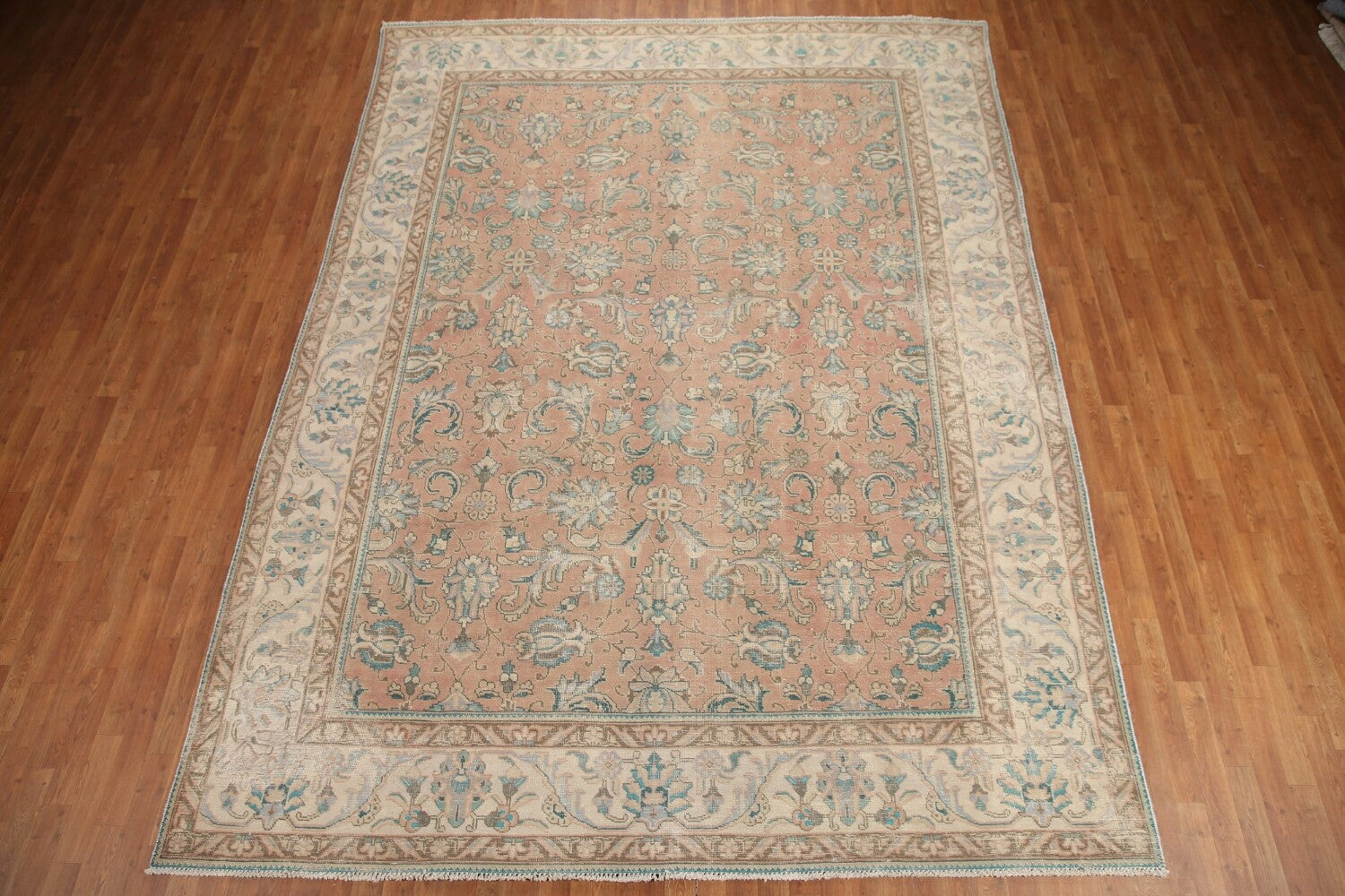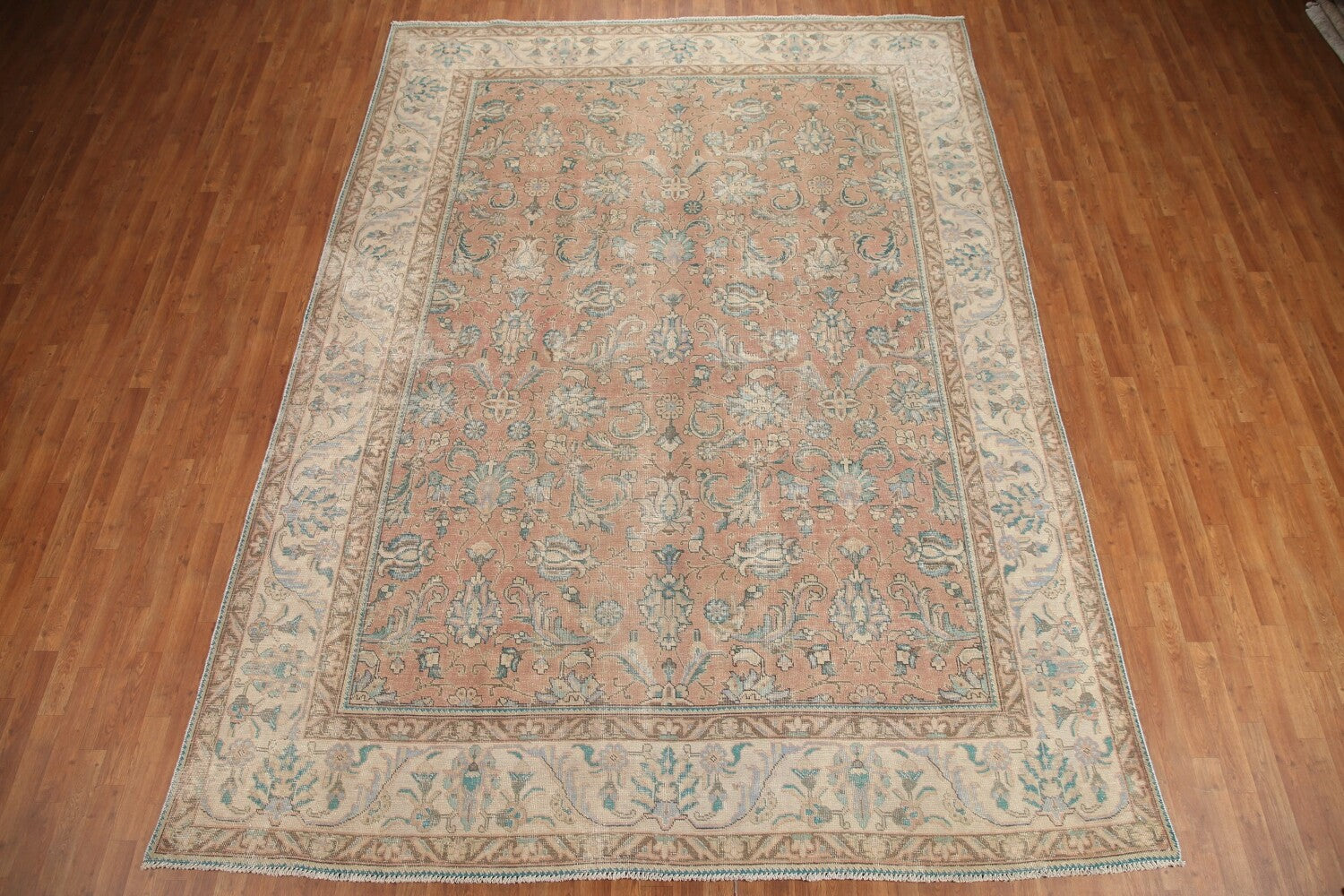 Distressed Floral Tabriz Persian Area Rug 9x12