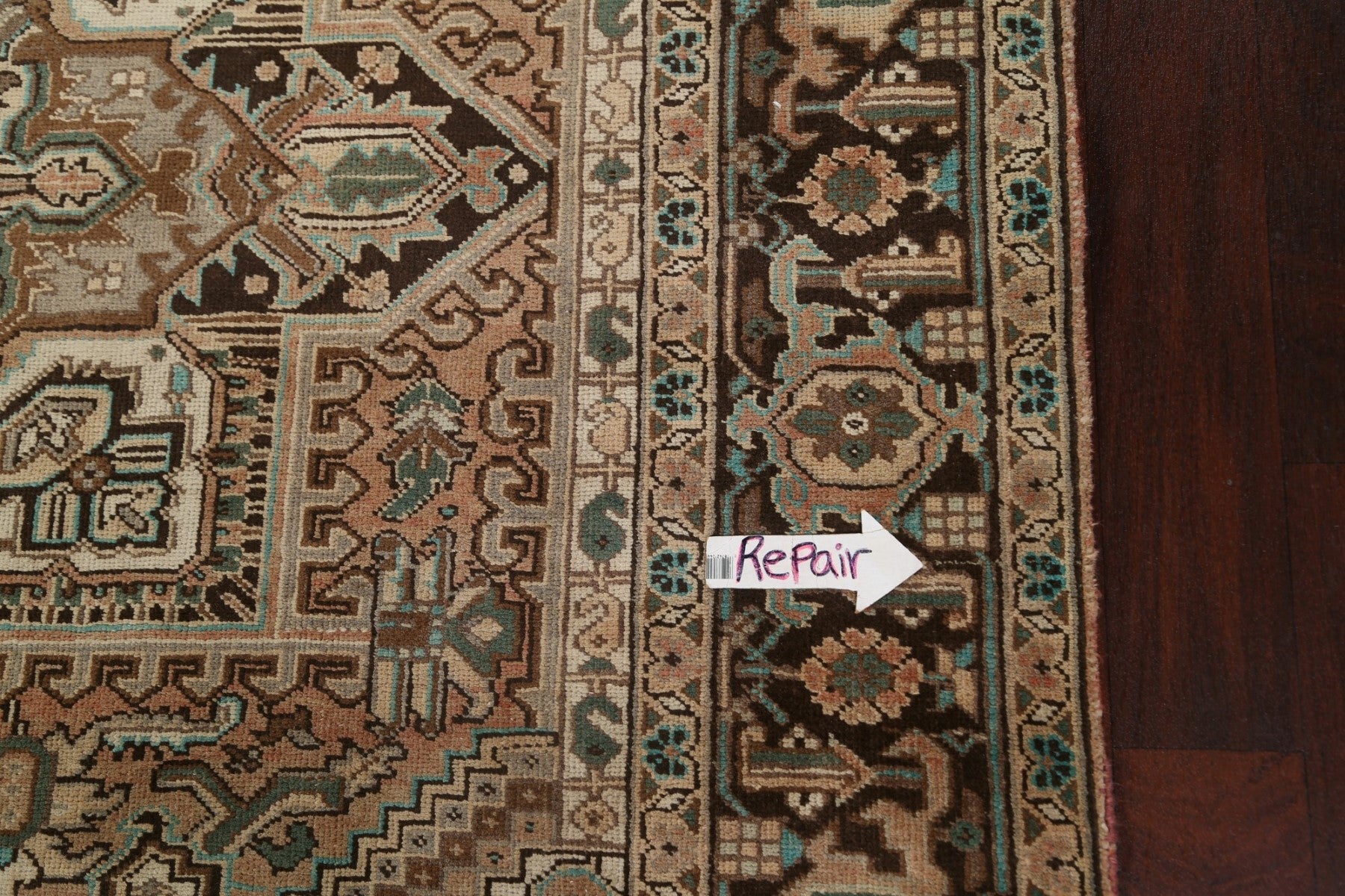 A Beautiful Genuine Persia ( Persia ) Heriz rug is Hand Knotted by skillful weavers in Persia ( Persia ) with 100% Wool Material. This rug is in Very Good (Low Pile-Small Repair) condition. dimensions are 9' 2'' X 6' 8'' in foot and 279 X 203 in centimeter. the primary color is Multi-Colored.